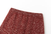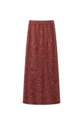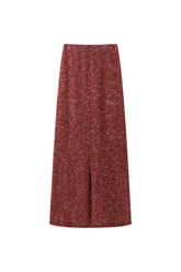 Matching marled knit skirt designed to complement the sweater, featuring a straight silhouette and a subtle back opening for ease of movement and a modern touch.