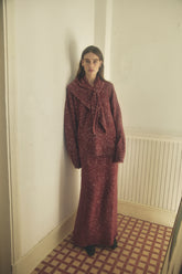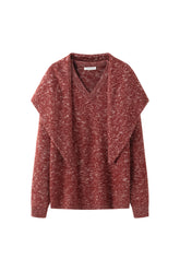 Marled knit sweater made of rabbit hair and sheep wool in two colors, with a V-neckline, thick hem, and a triangular scarf panel for a modern, structured look.