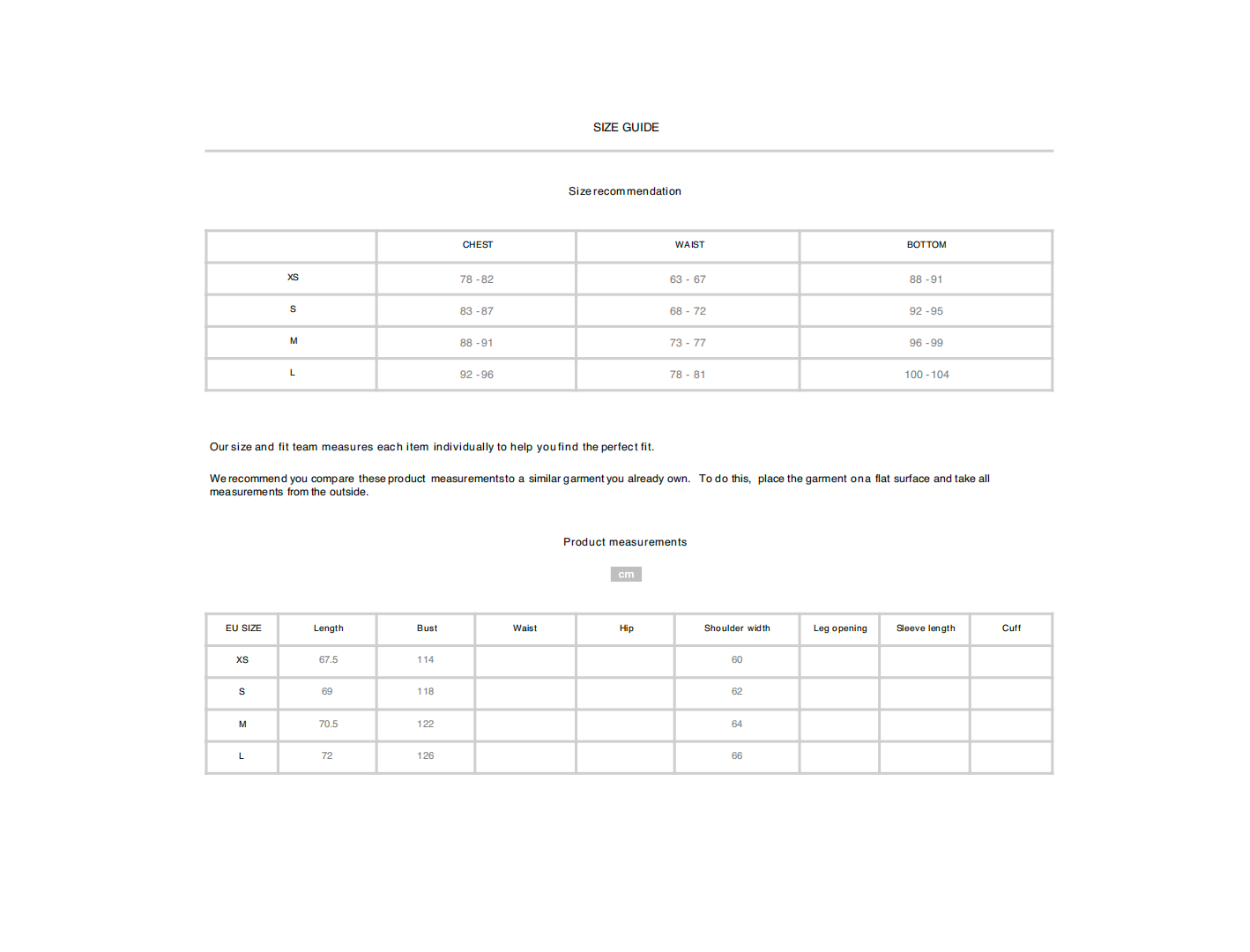 The model is 1.76 m tall and wears a size S. For more detailed sizing information, please consult our size charts.