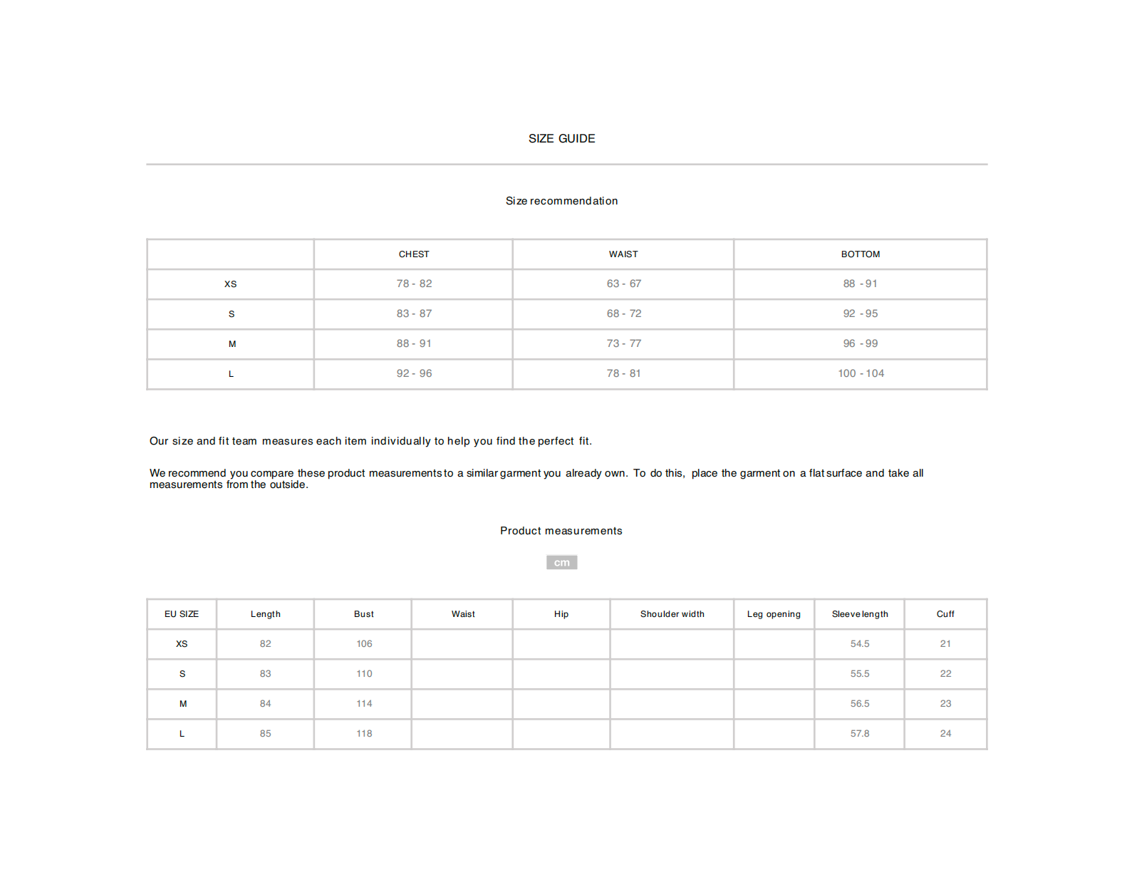 The model is 1.76 m tall and wears a size S. For more detailed sizing information, please consult our size charts.