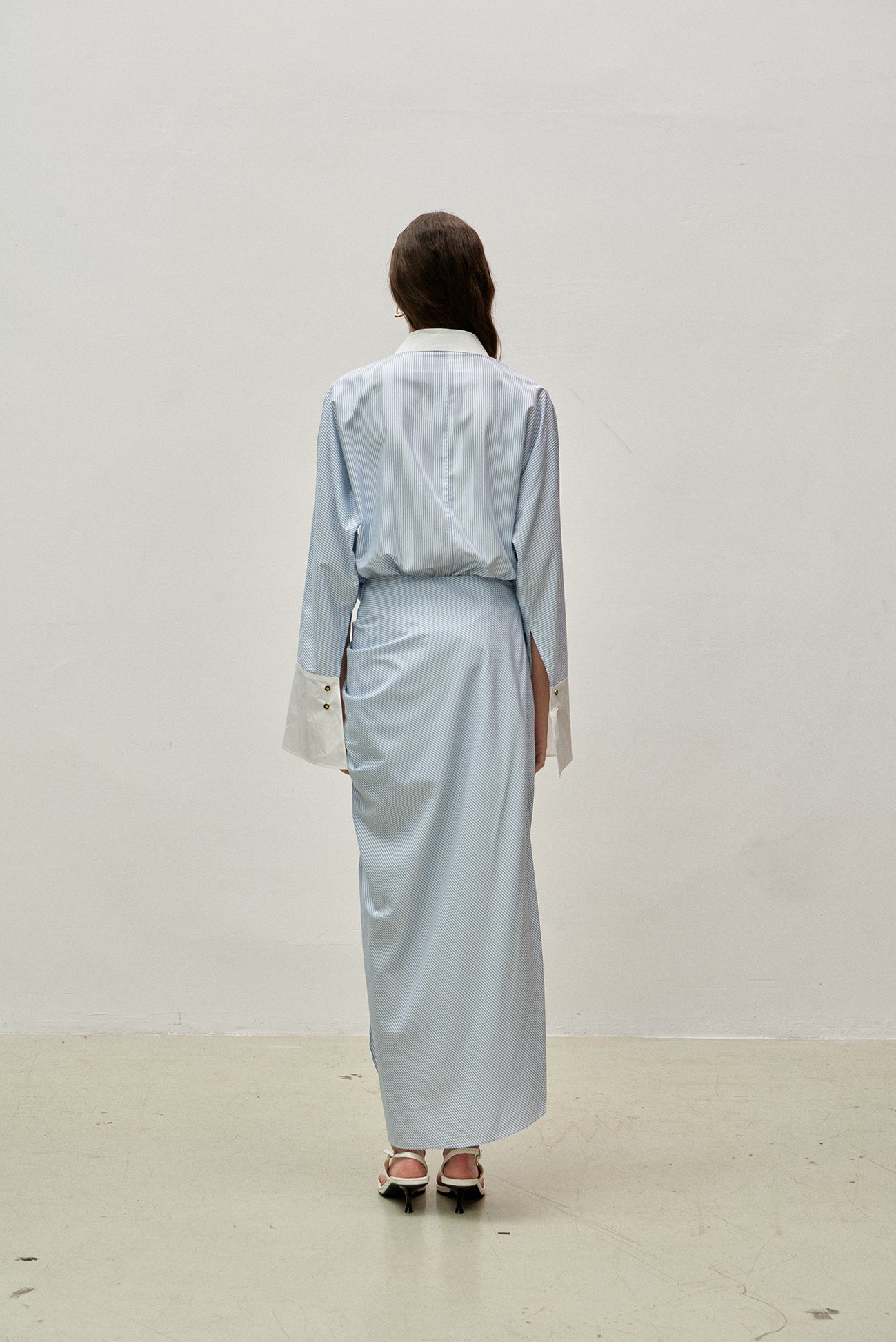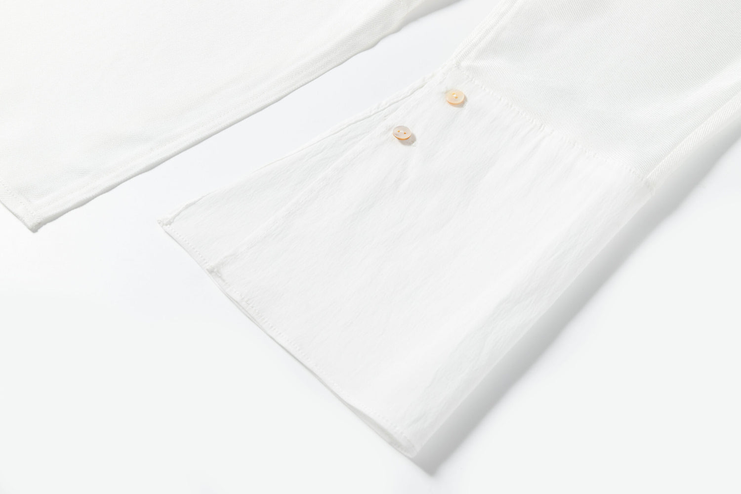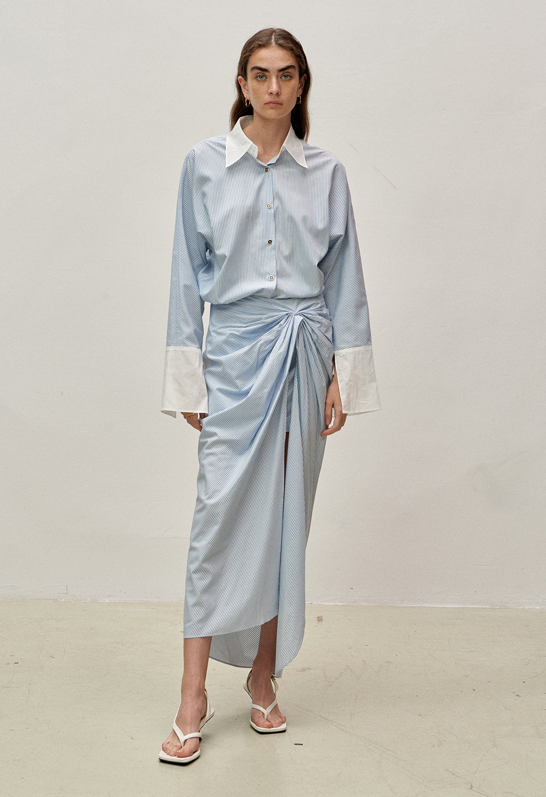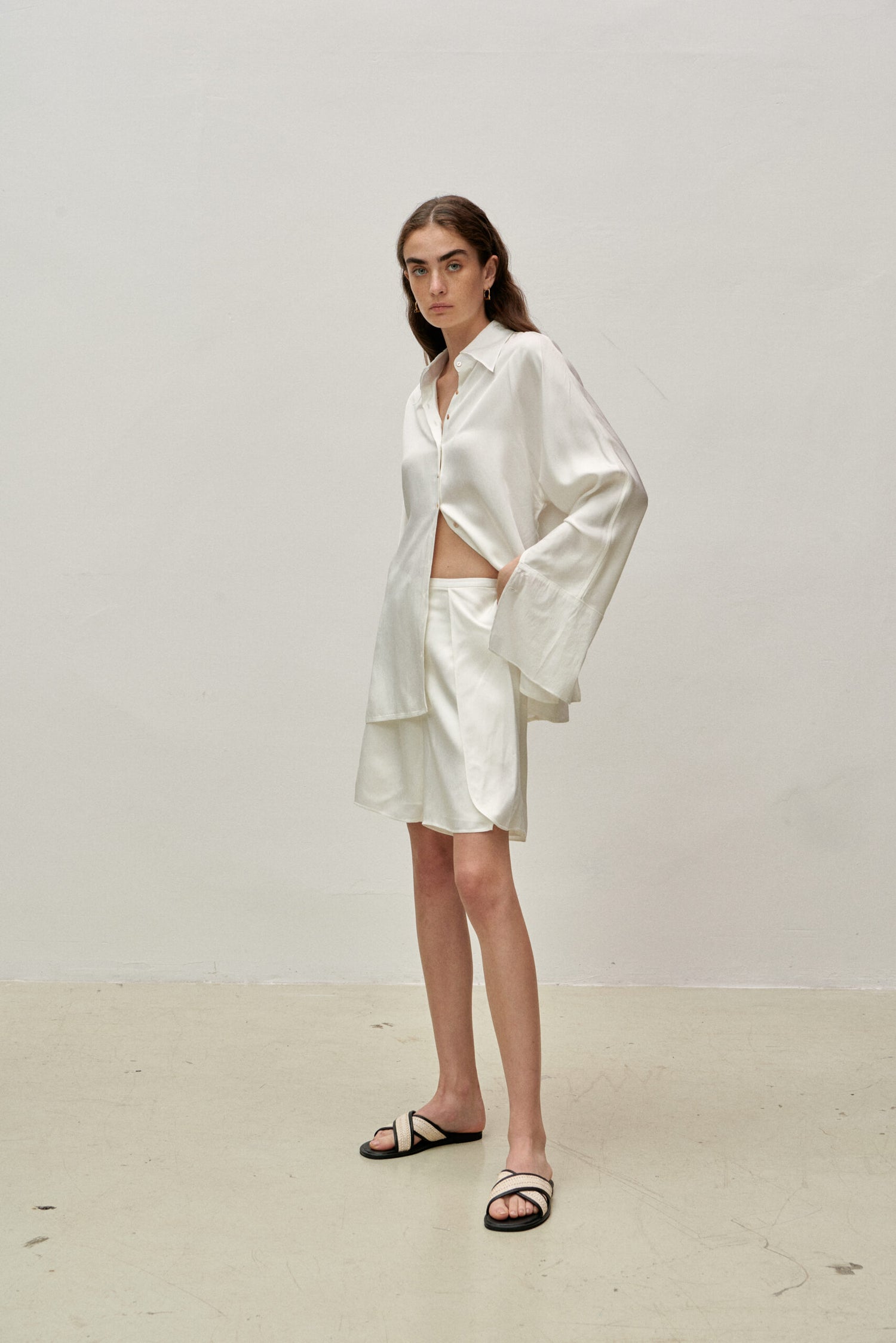 Flowy shirt with rounded cut cuffs. Poplin material in the cuff and collar that creates a great mix of effortless coolness. Small shell buttons and dropping shoulder in style. Oversized ...