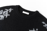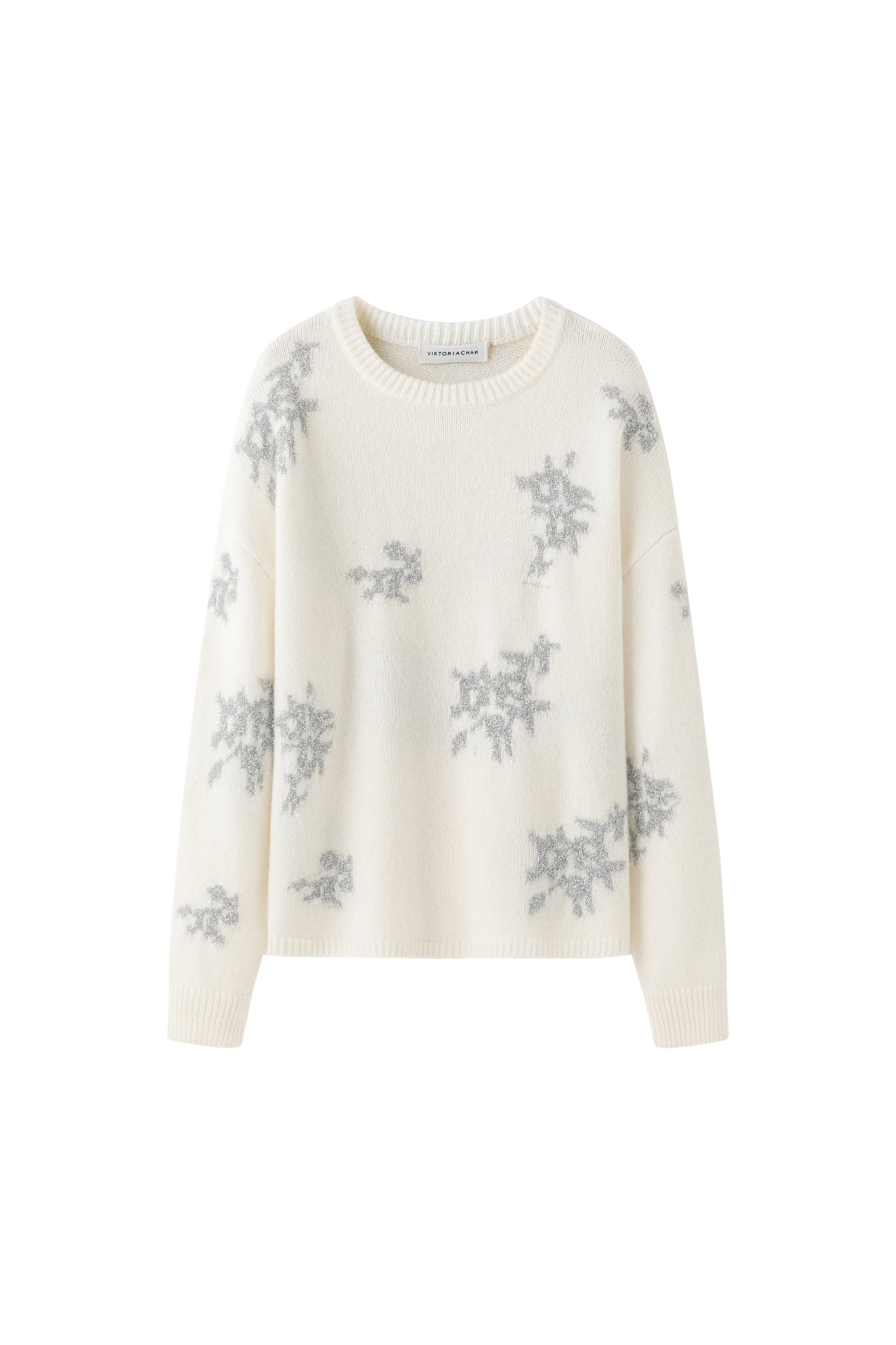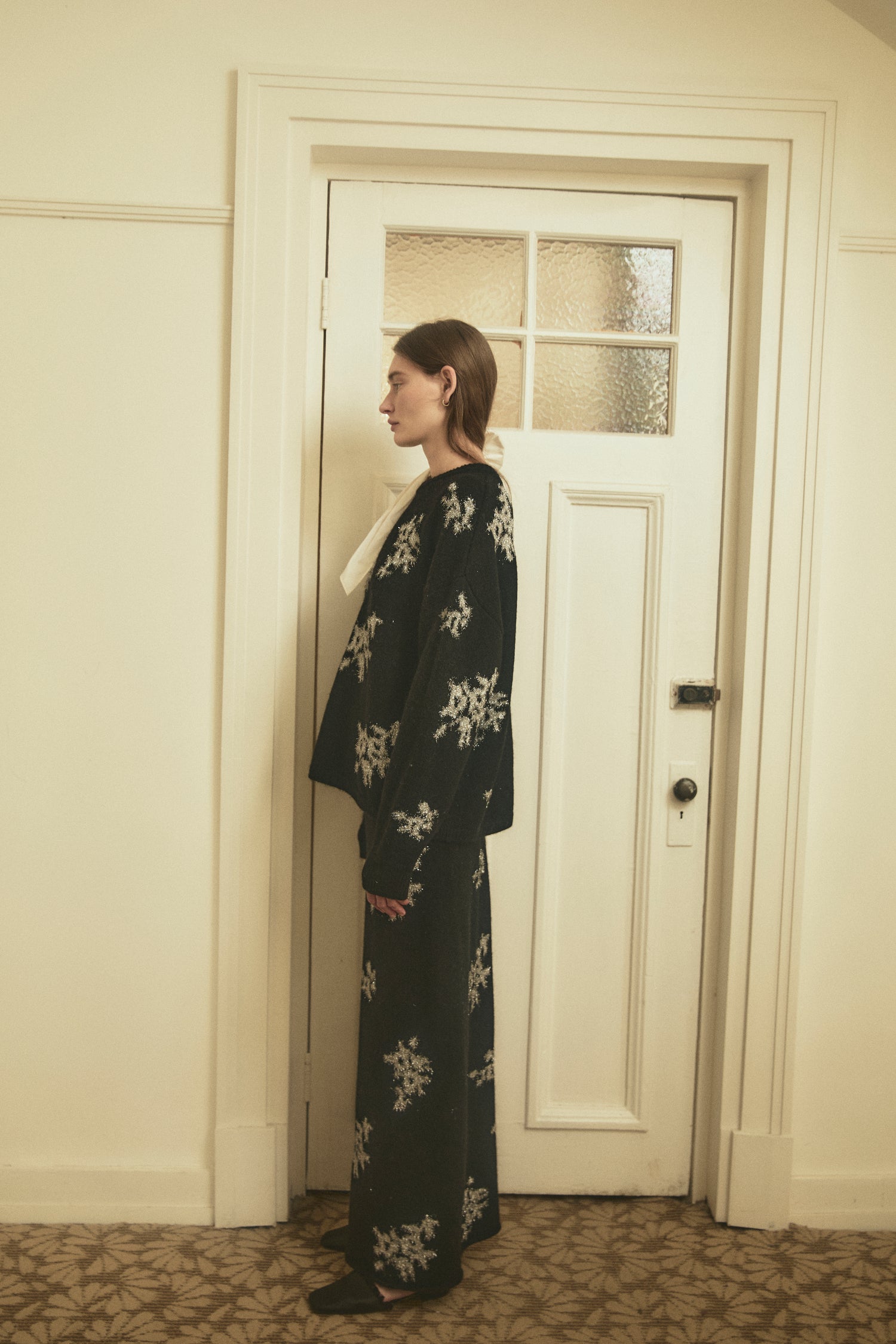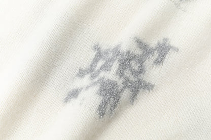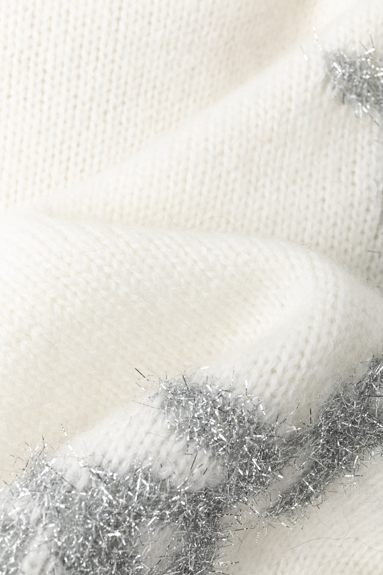 Oversized wool and cashmere sweater featuring a glittery snowflake pattern throughout. Part of a coordinated set for a complete festive look.