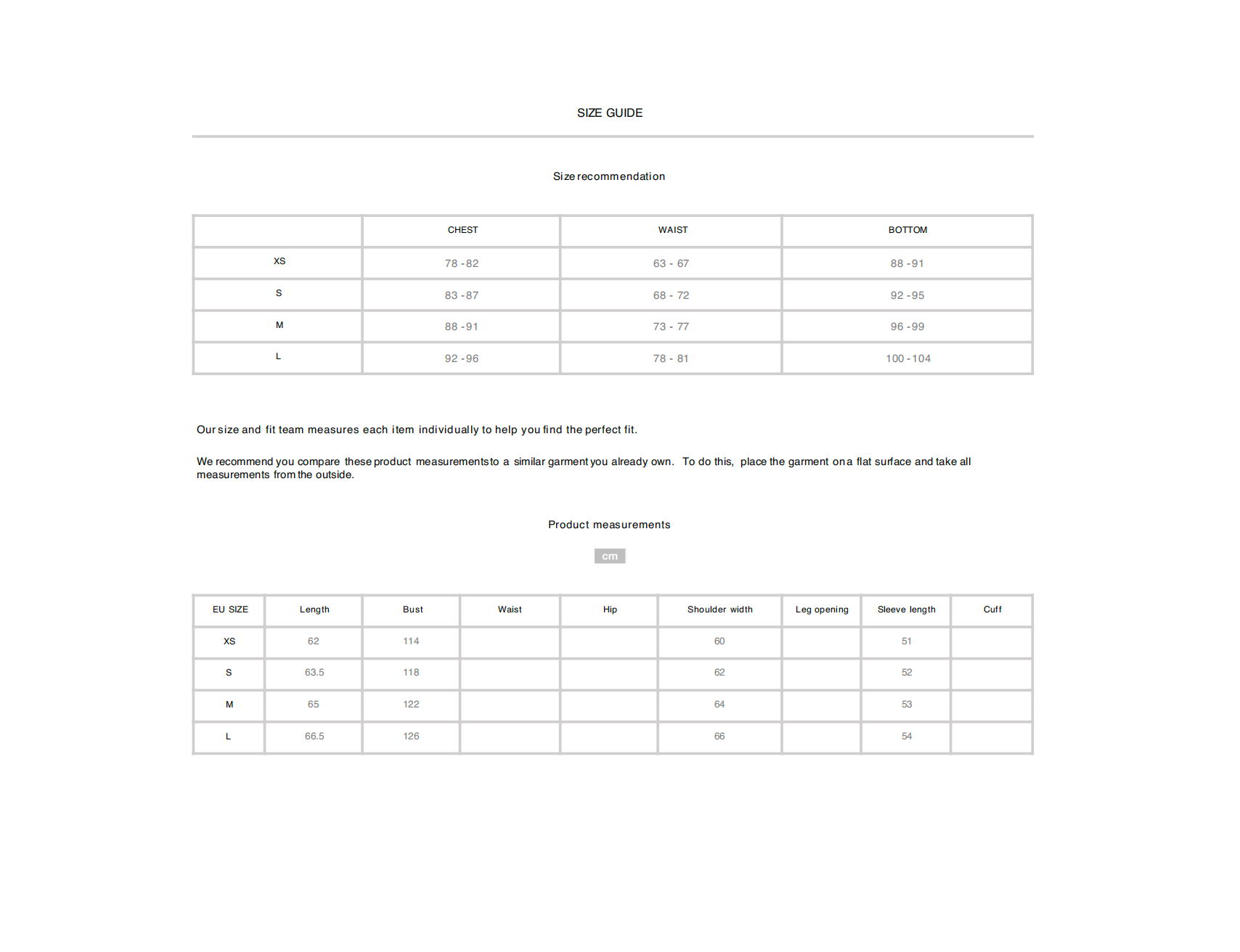 The model is 1.76 m tall and wears a size S. For more detailed sizing information, please consult our size charts.