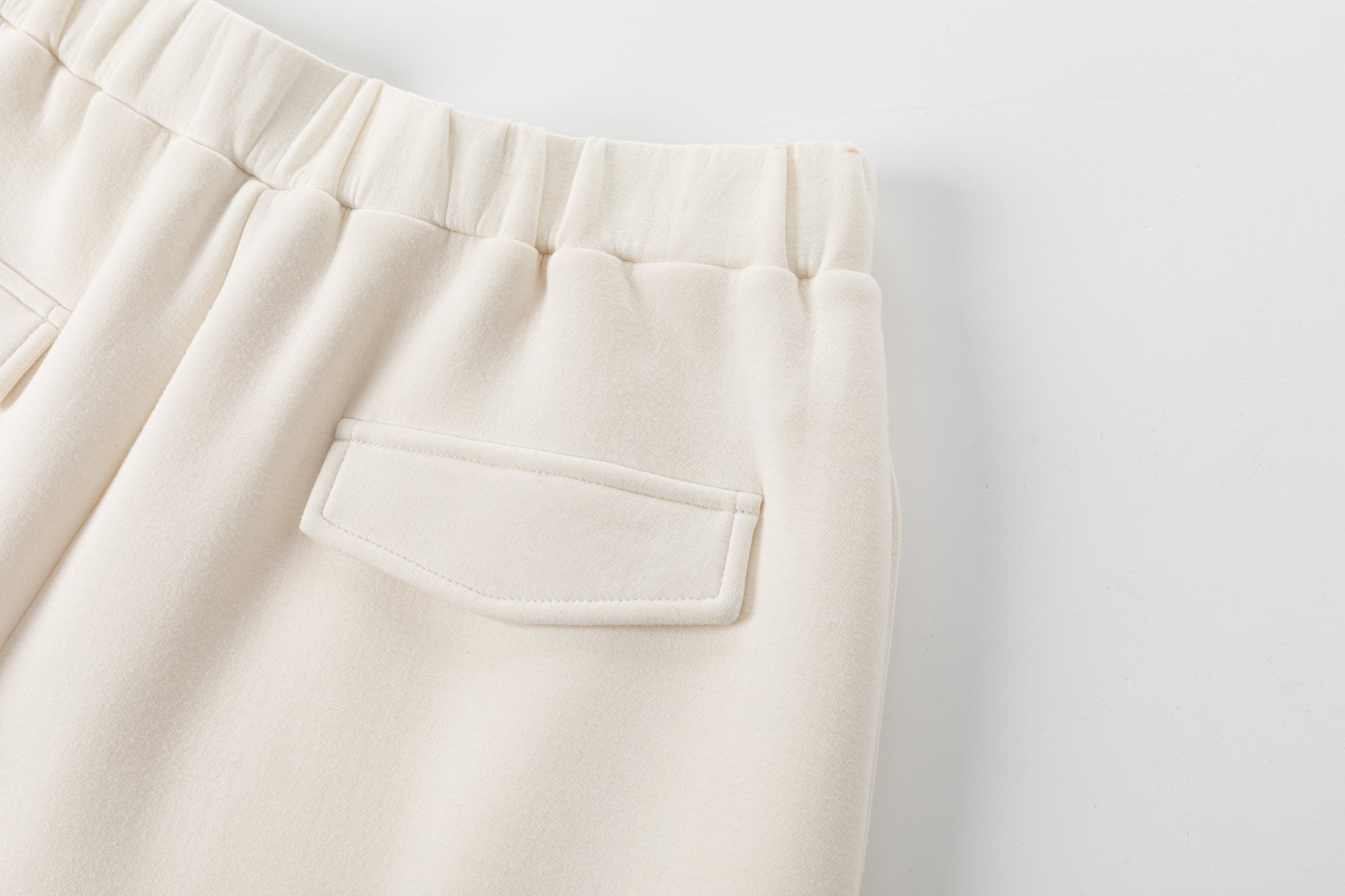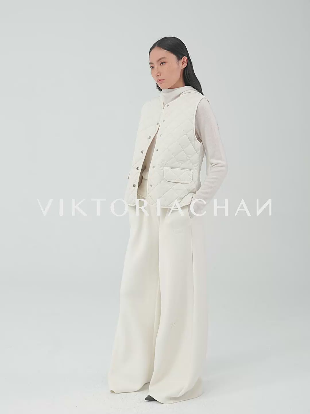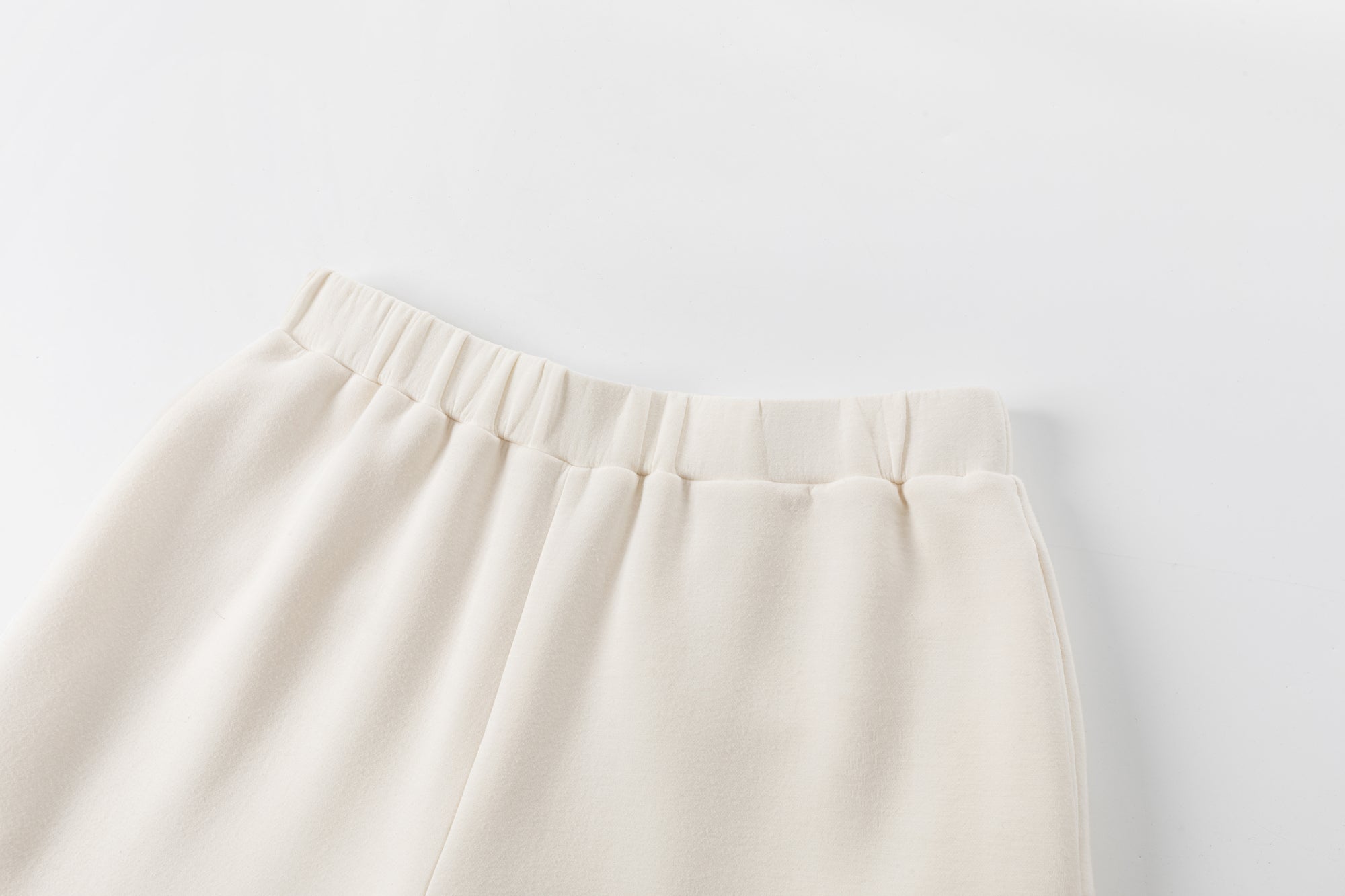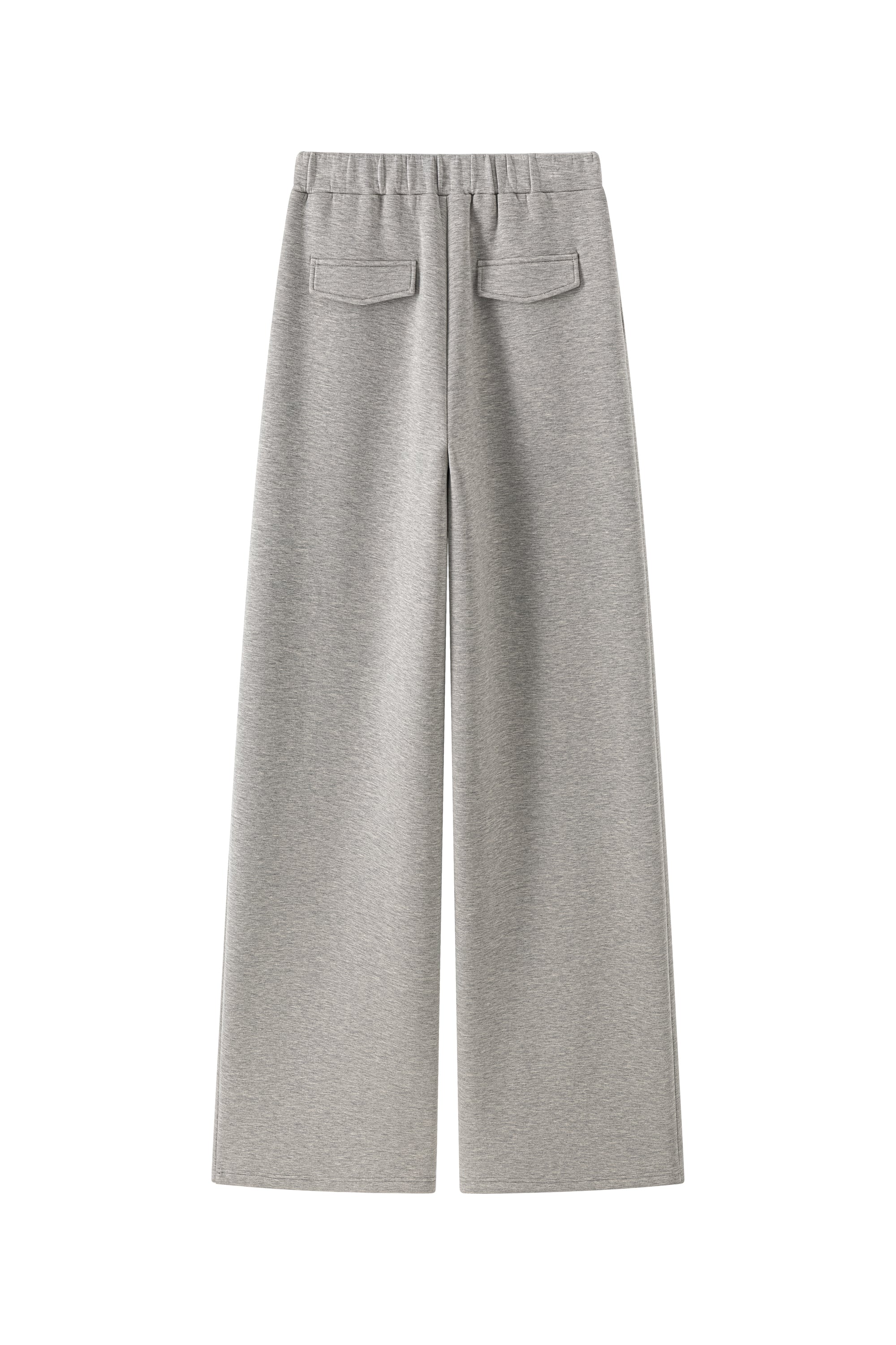 Wide trousers with elastic waistband, side seam pockets. Wide fluid fit.