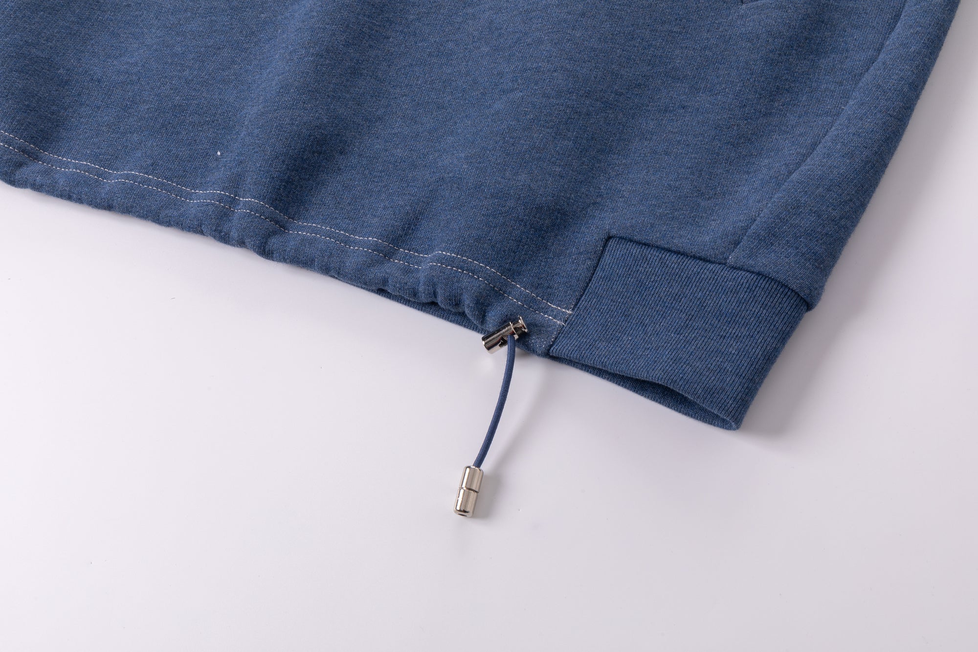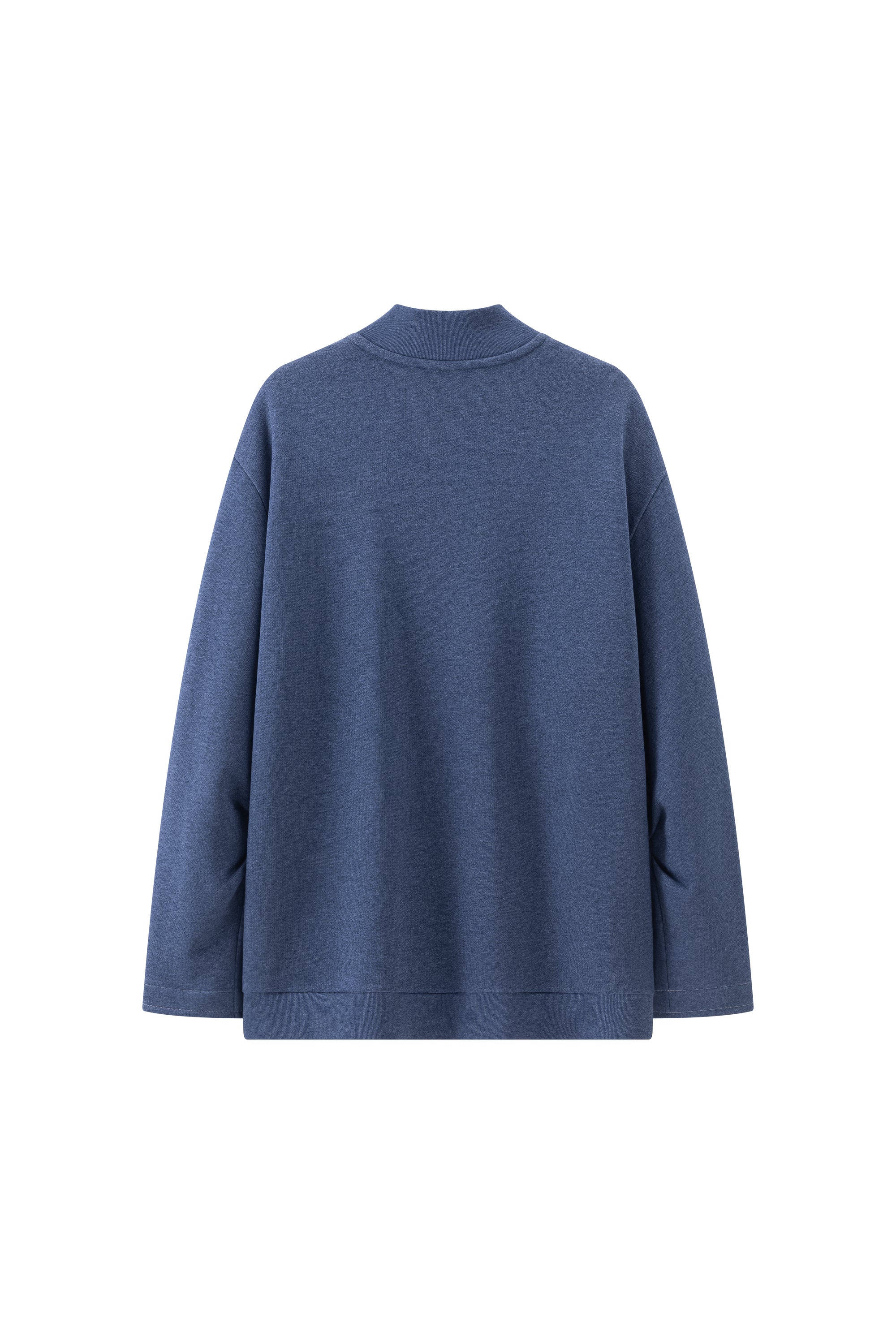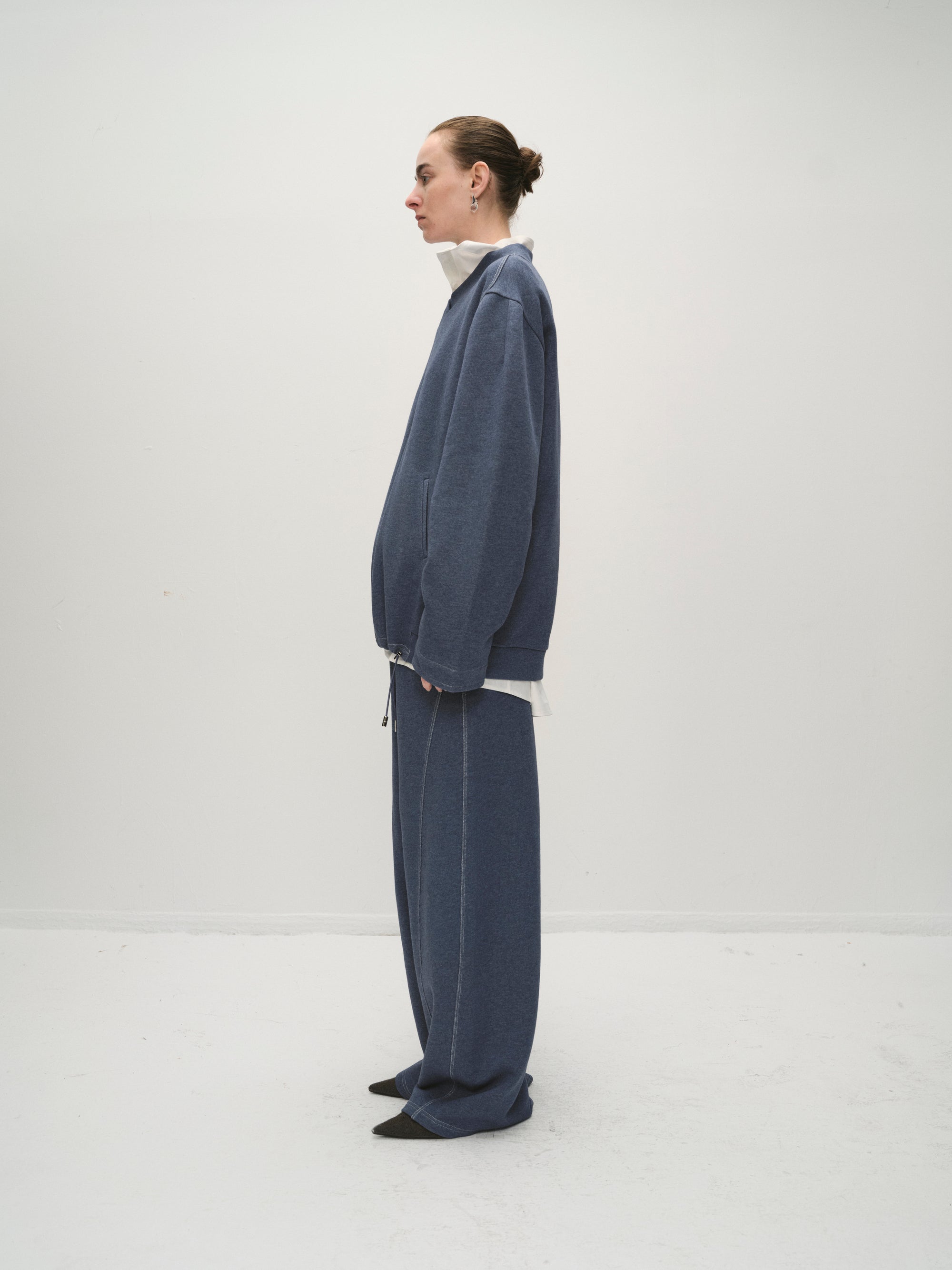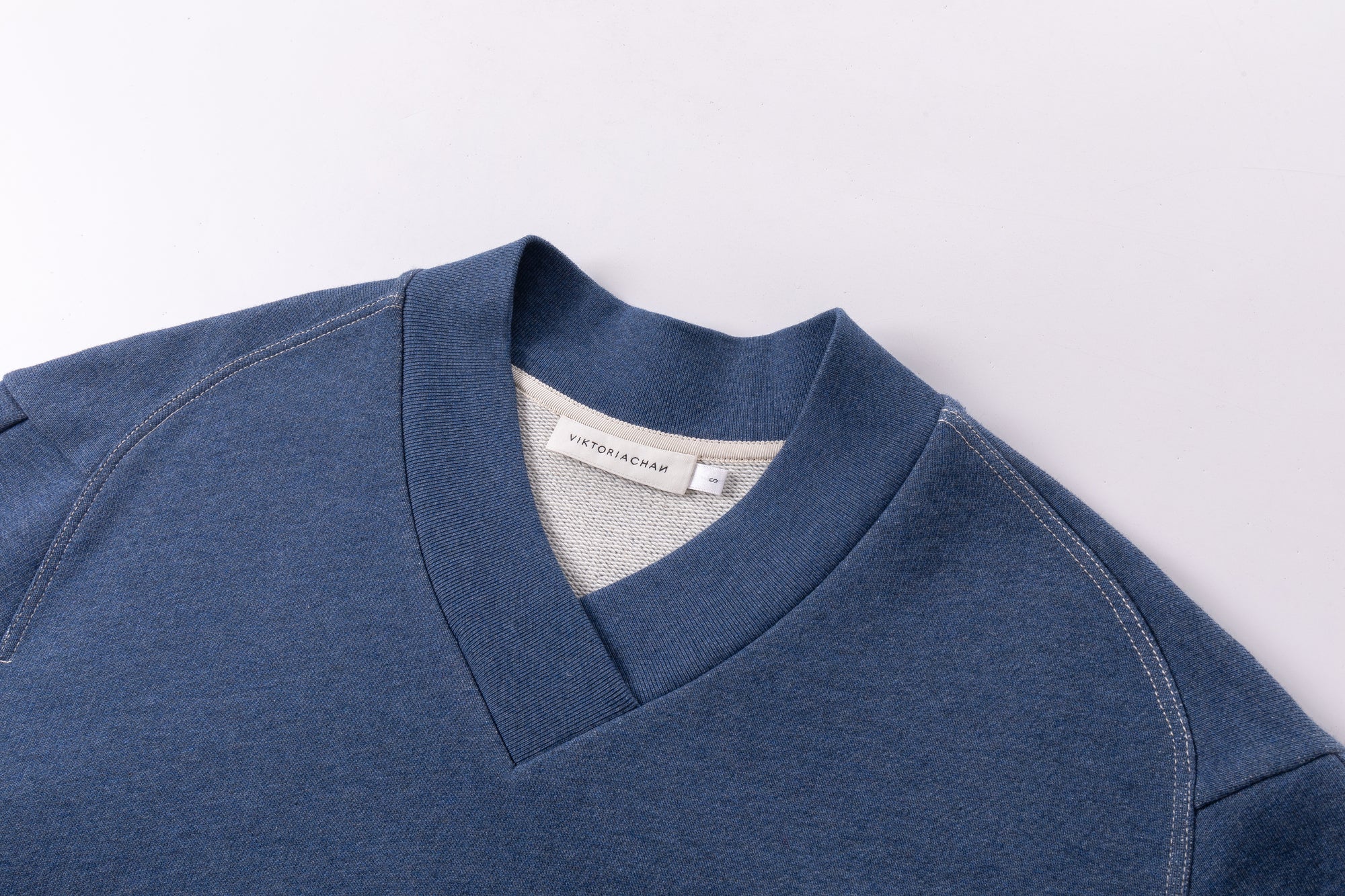 Oversized high V neck collar sweater. Pockets in the front and gathered sleeve details. Drawstring in the front part.
