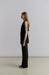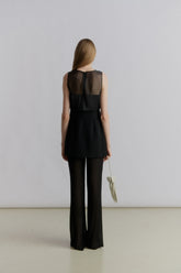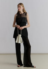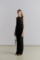 Tank with satin and organza upper part and sculptured body effect. Longer in style that falls below the hips. Style with the sheer trousers for stylish summer look. Model is 176cm tall a...