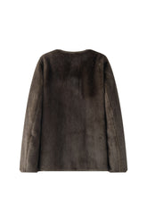 Midi faux fur jacket slightly slim. Trimmed edges in genuine leather. pockets in the front and inner lining with chest pocket.