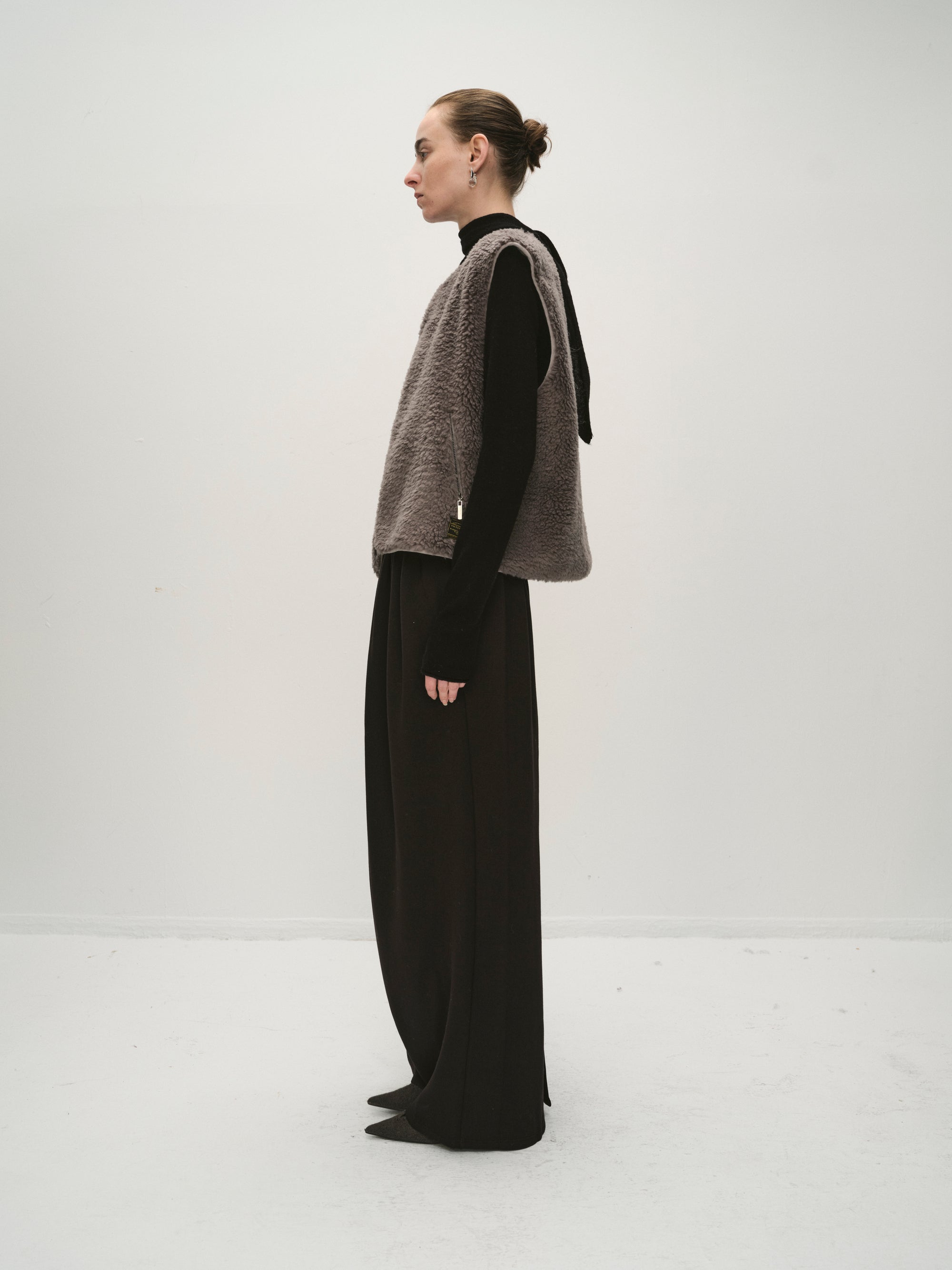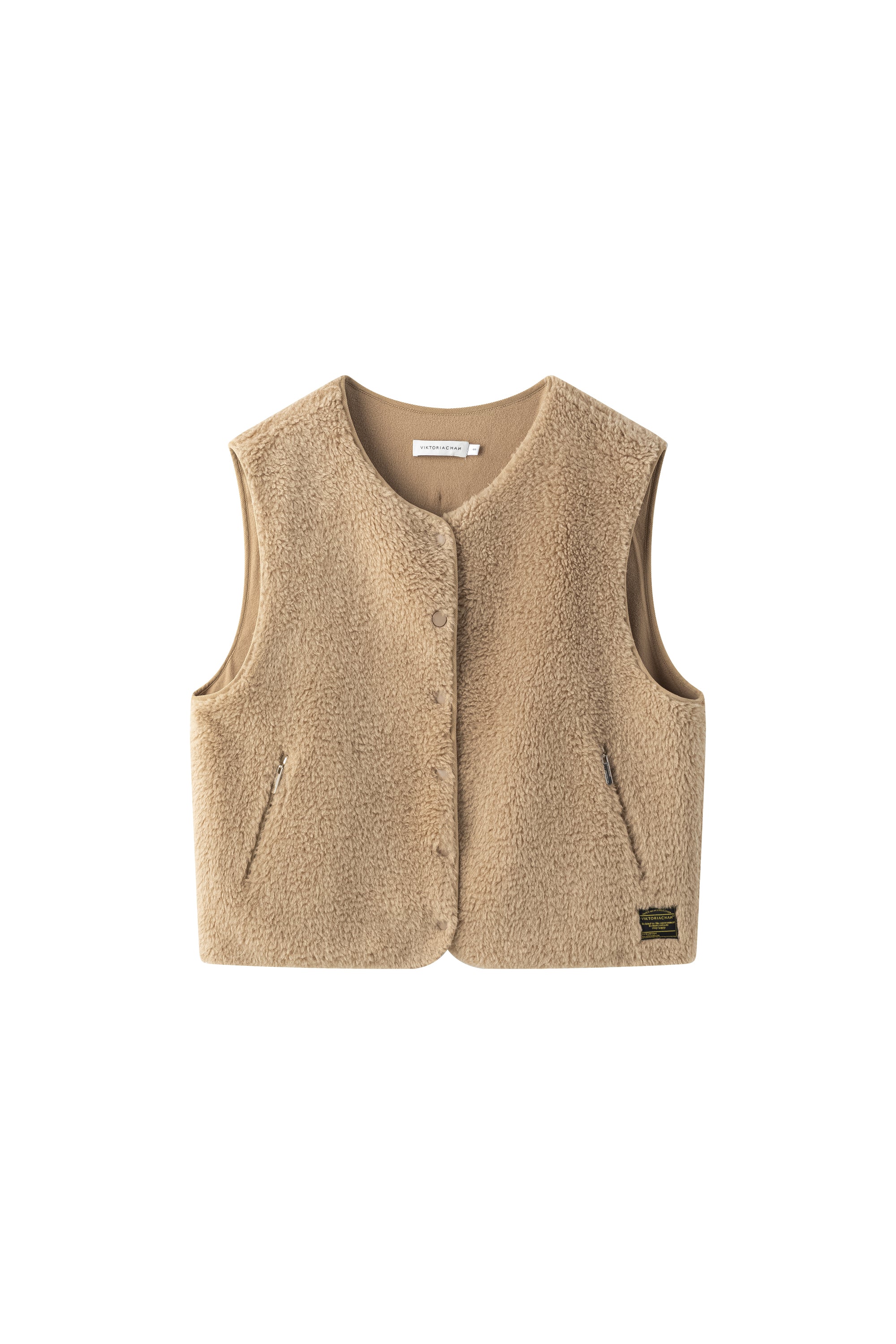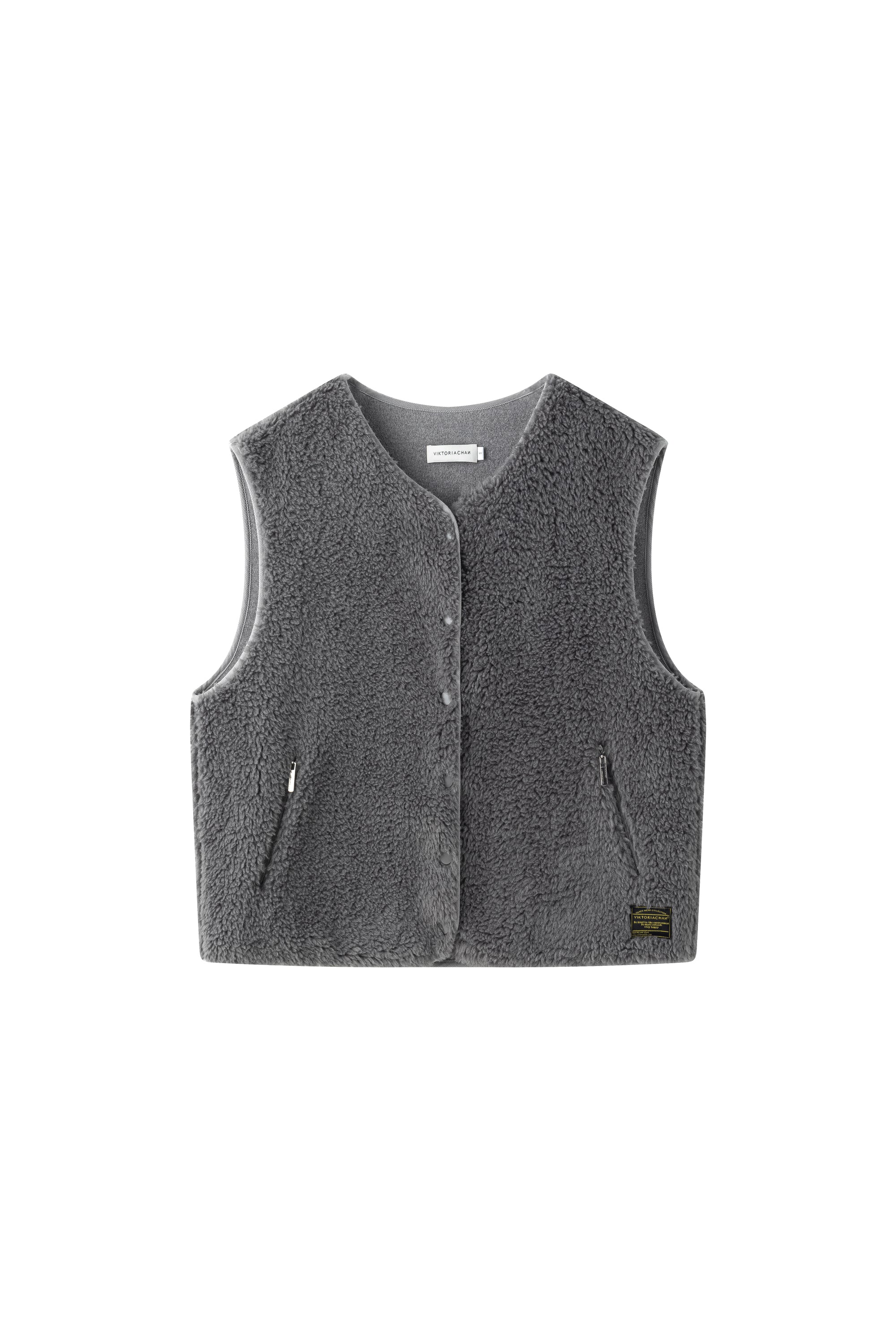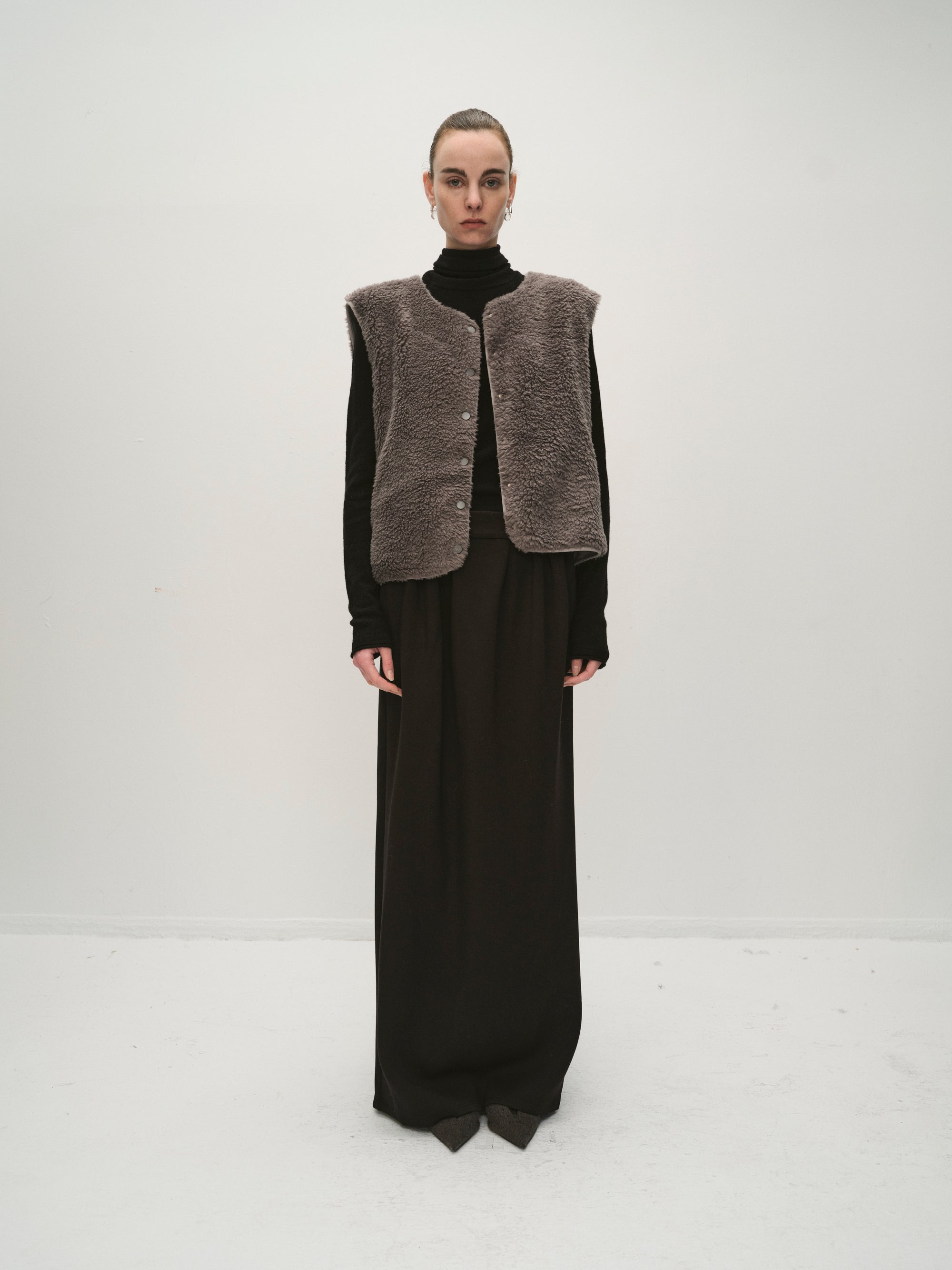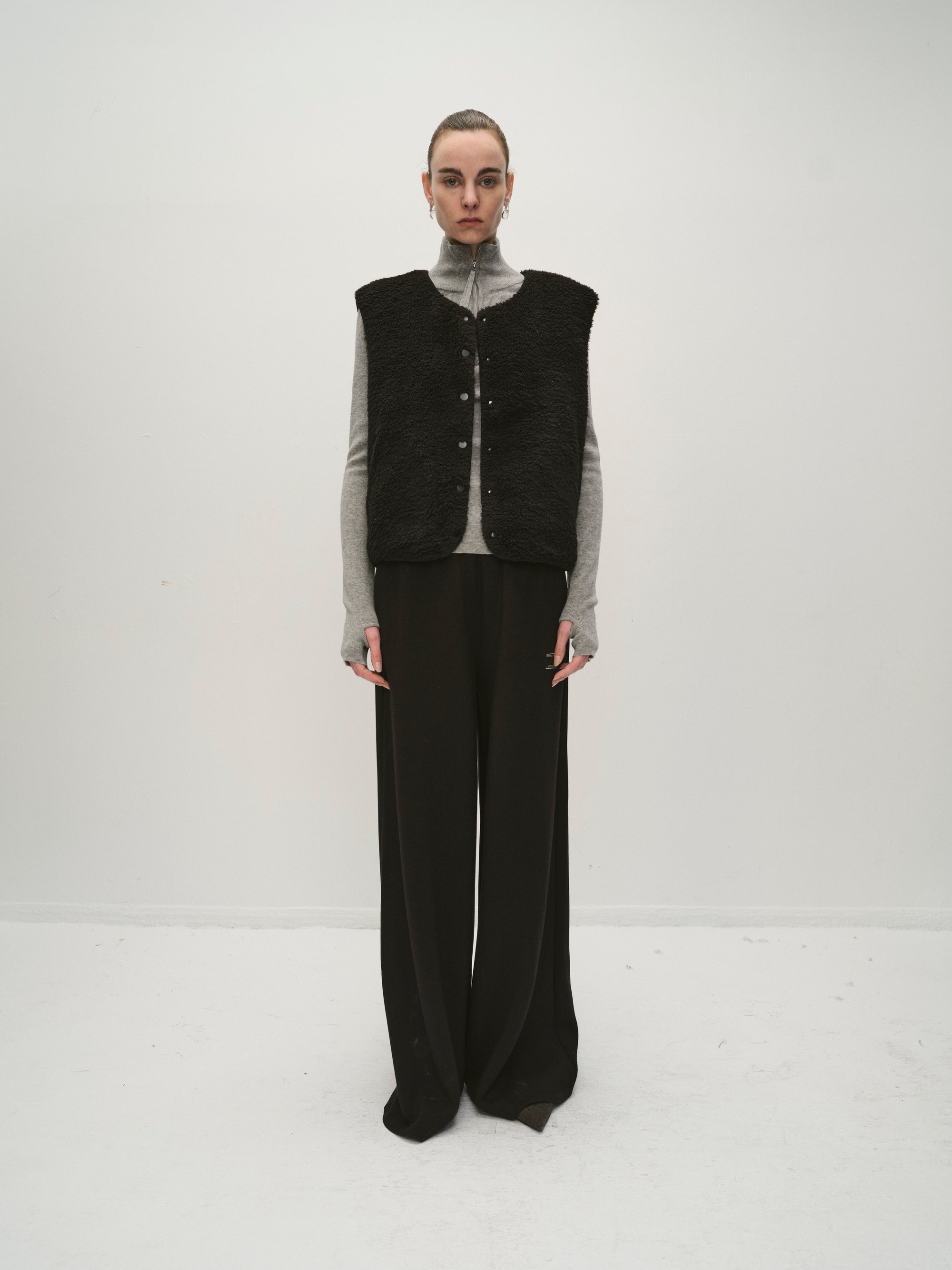 A short-sleeve vest crafted in a soft, textured fabric with a modern minimal cut. Designed with snap-button closures at the front, it layers effortlessly over knits or shirts, adding bot...