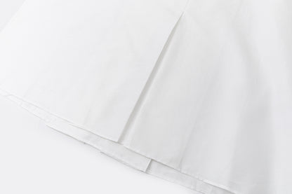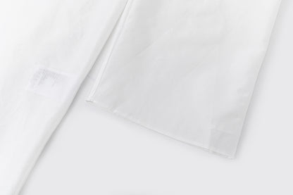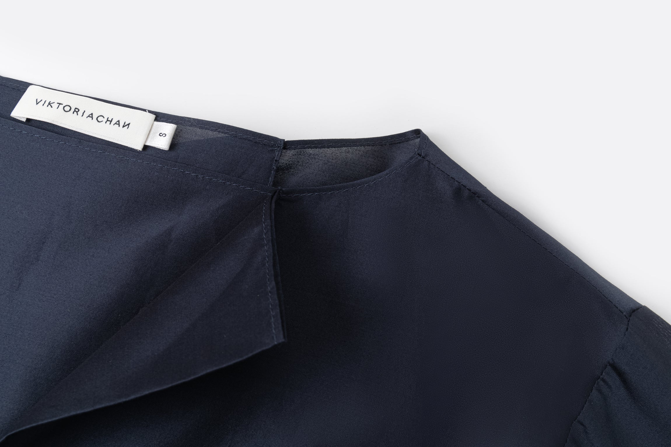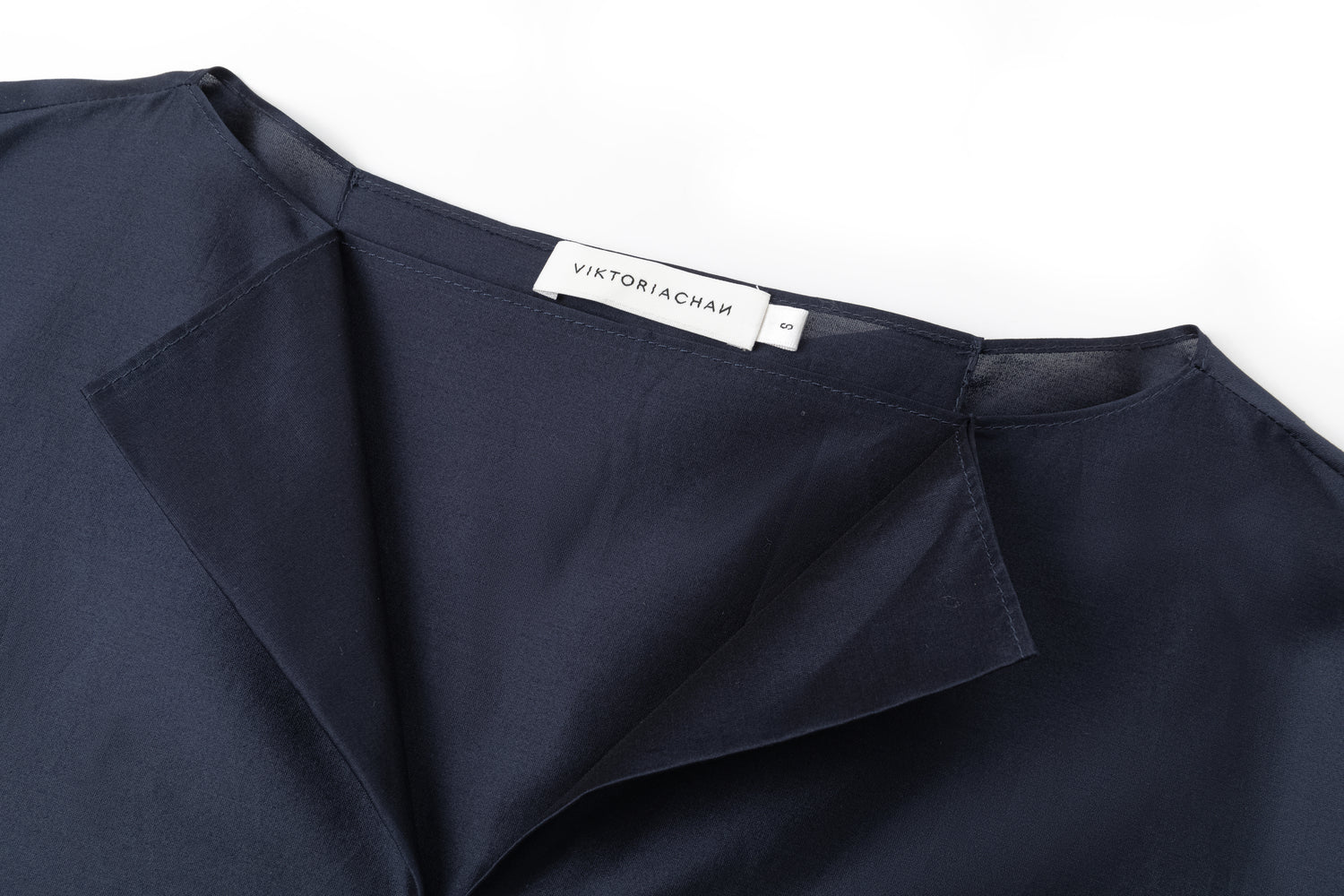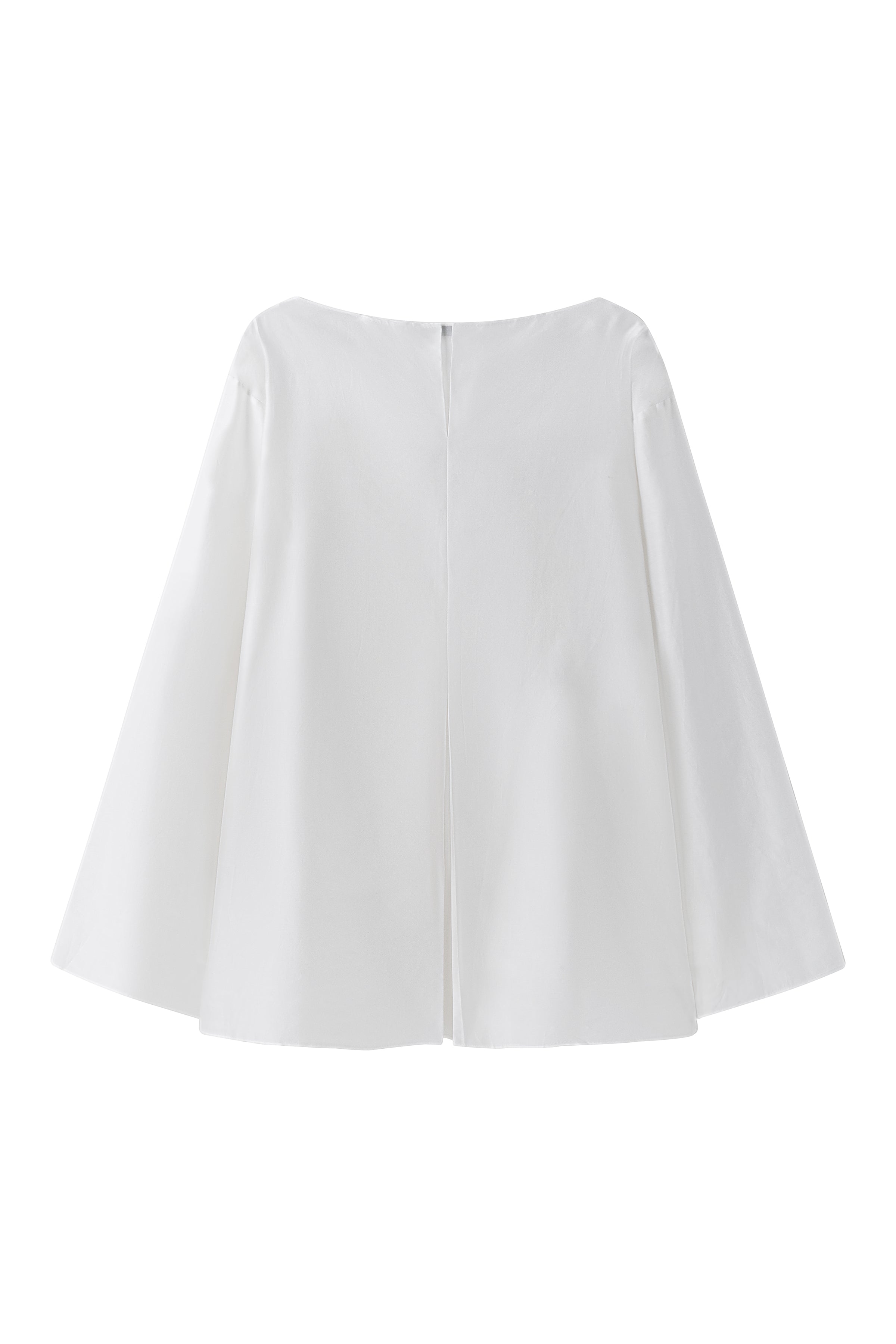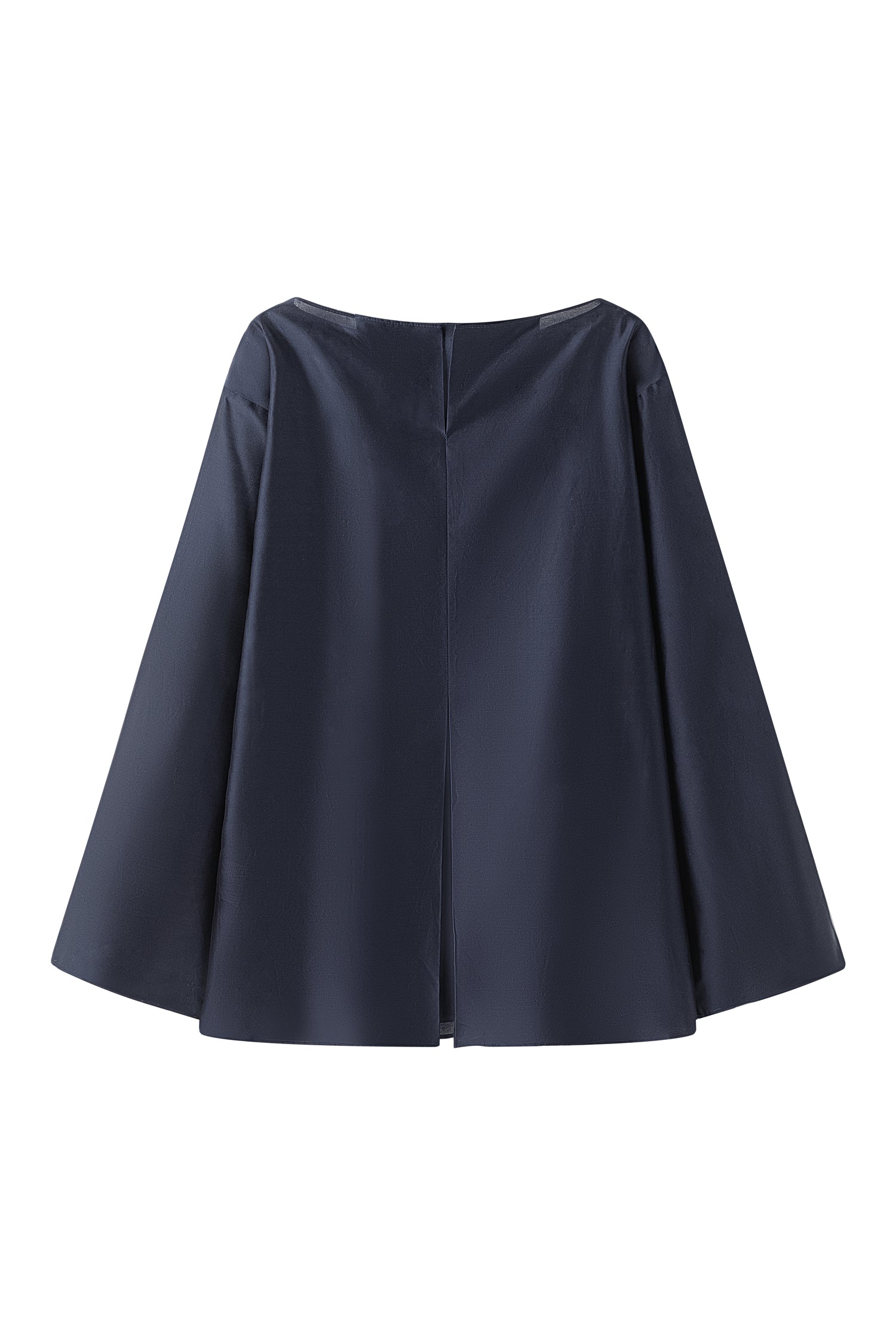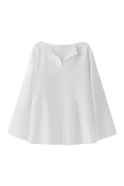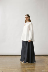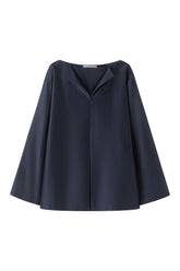 An oversized shirt with a thick, textured silk and cotton blend and a structured silhouette. The neckline shows an opening from the front revealing an inner layer of still fabric. A matc...