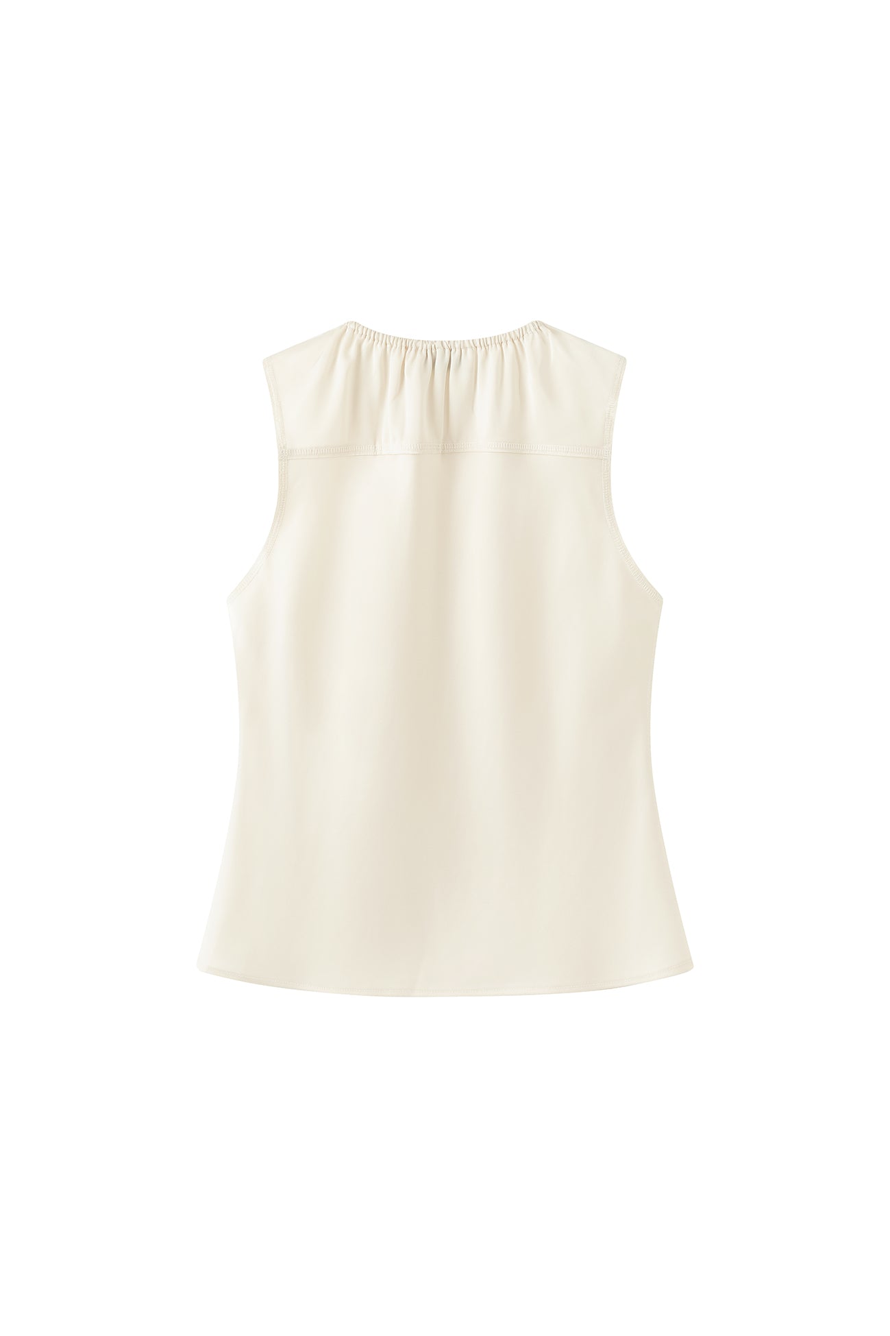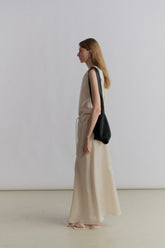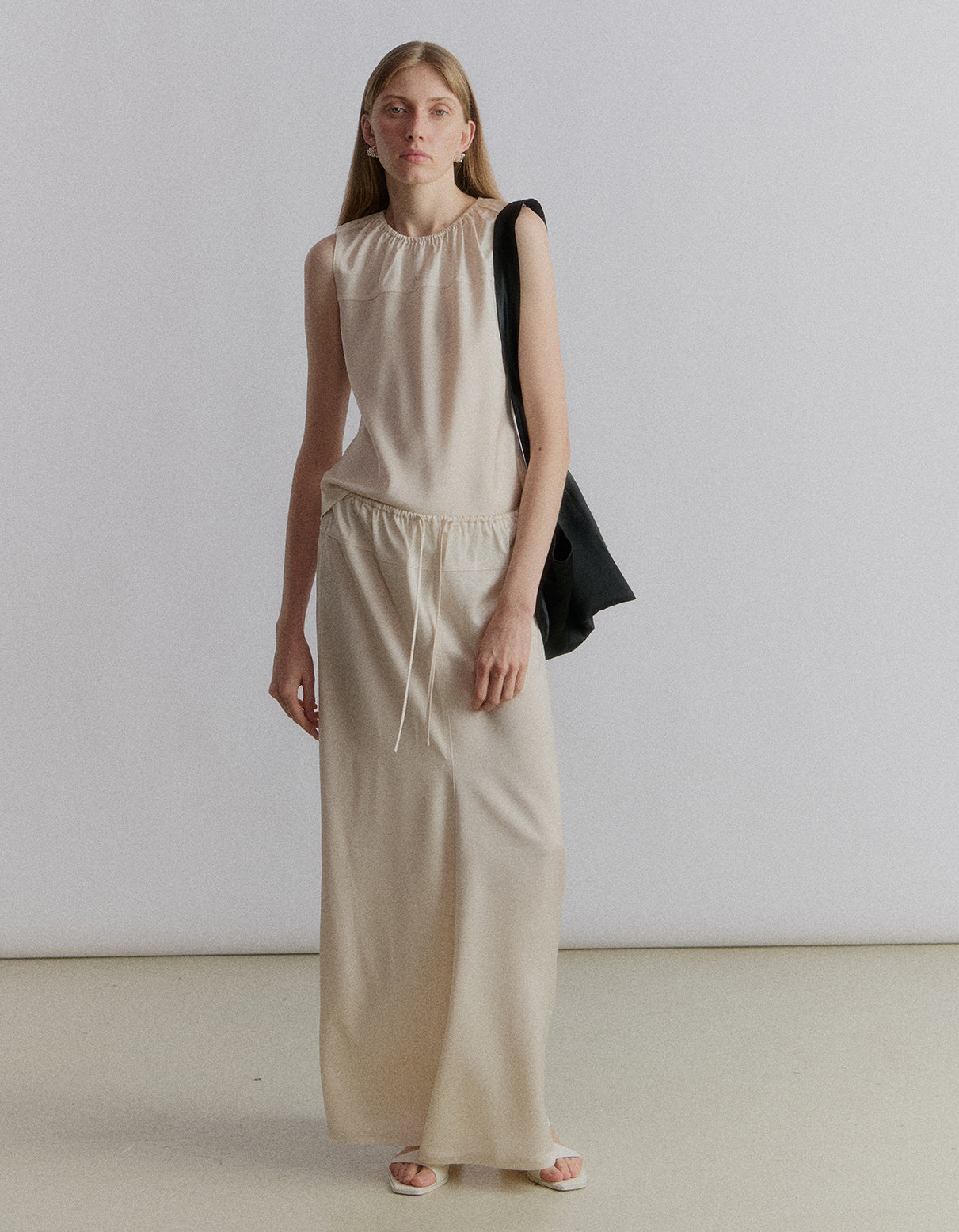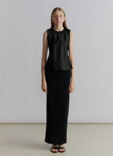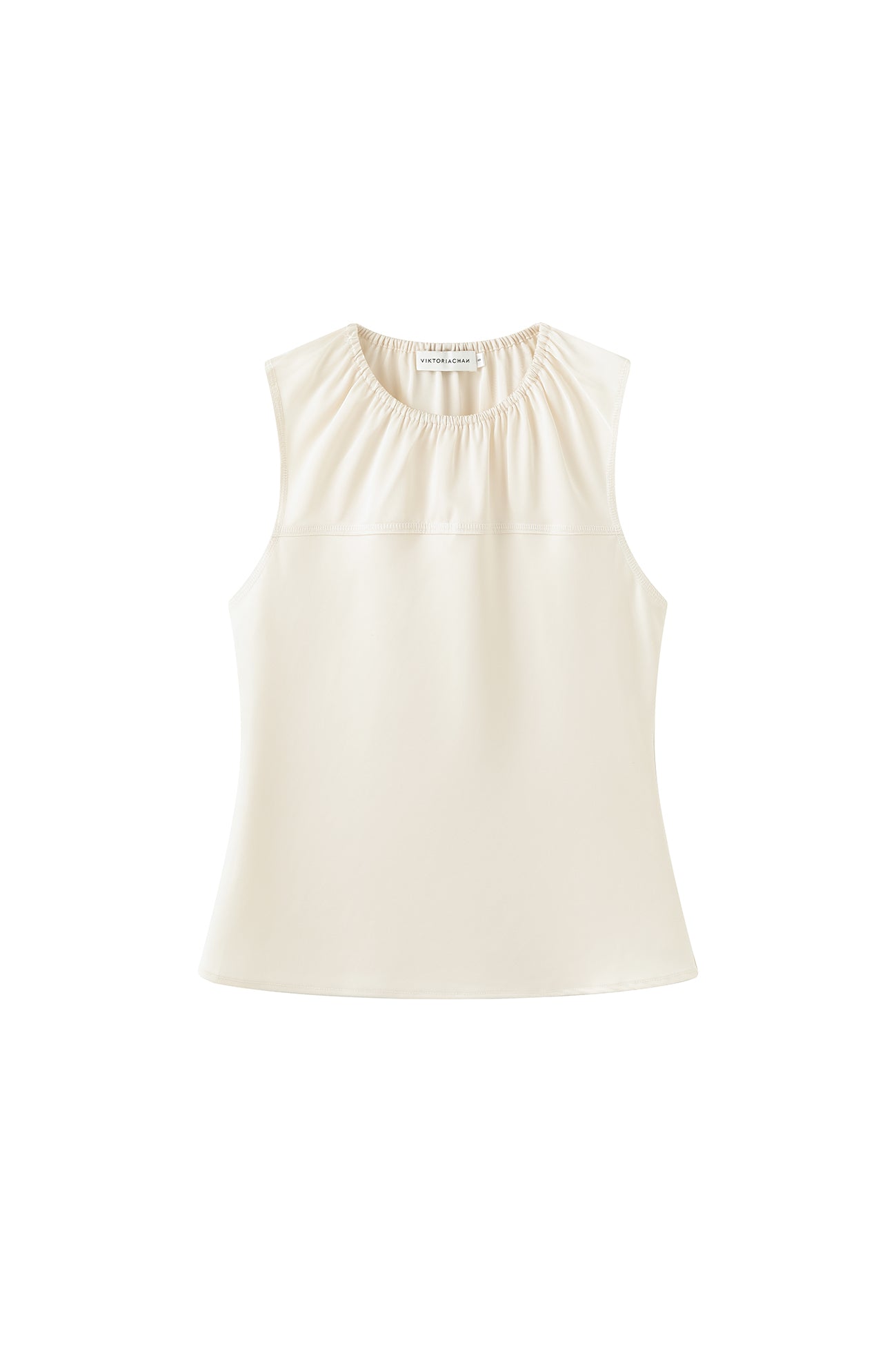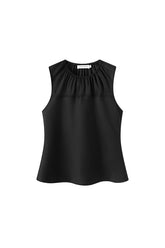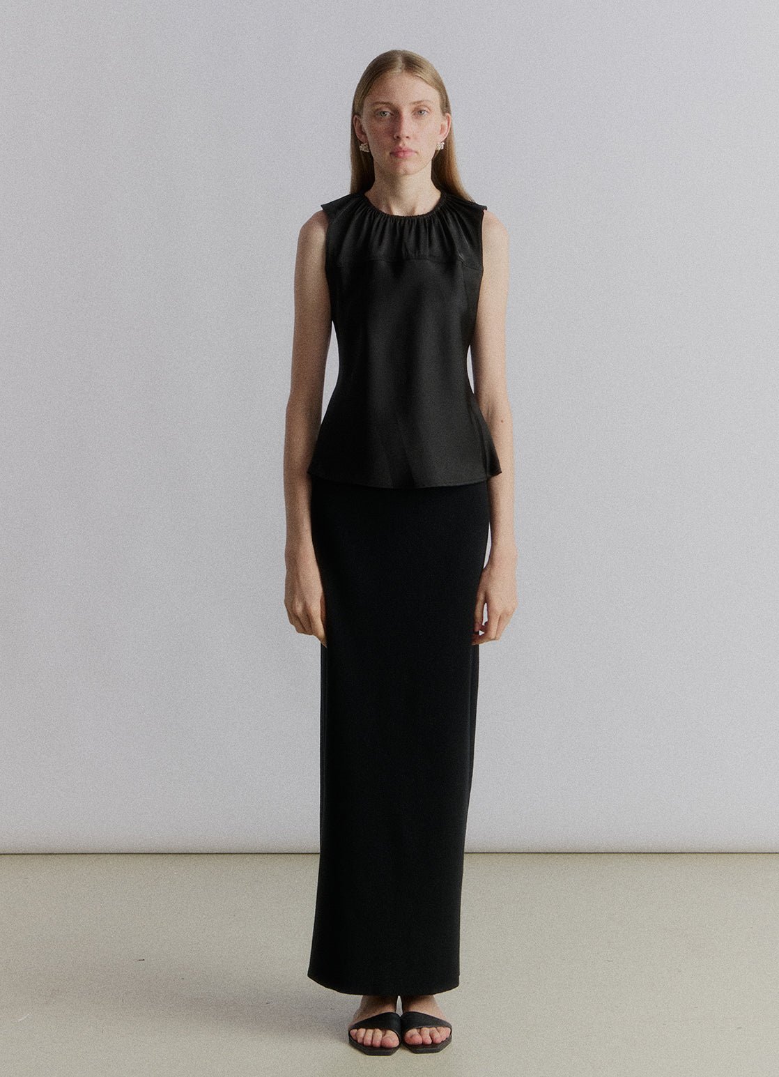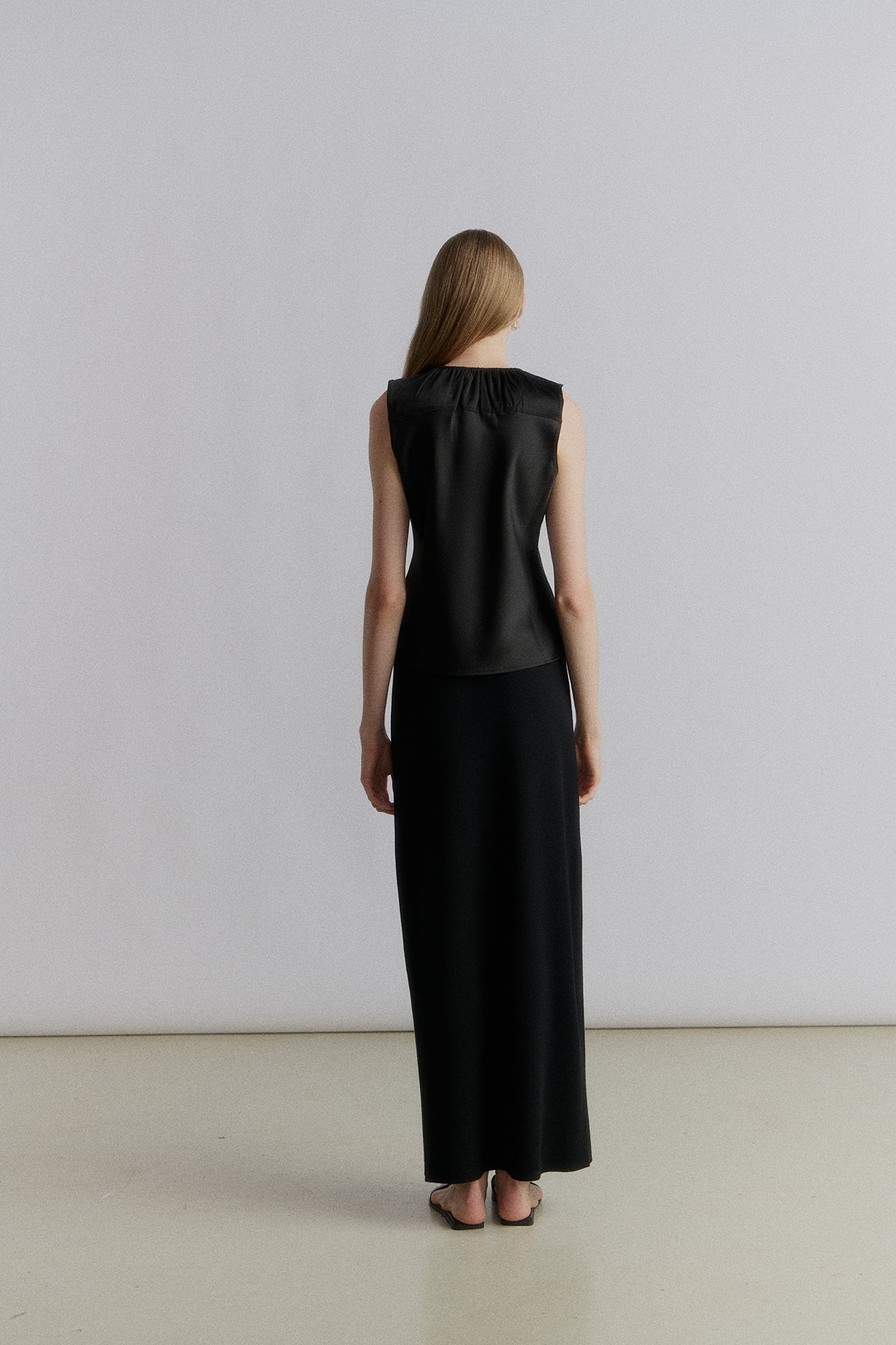 Satin top with elstatic wrinkled neckline and skewed cut body which creates a beautiful subtle waistline. For those who wish to have it bigger in style, choose a bigger size. Style with ...