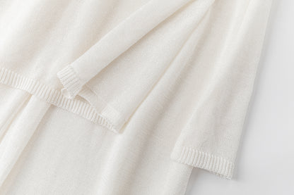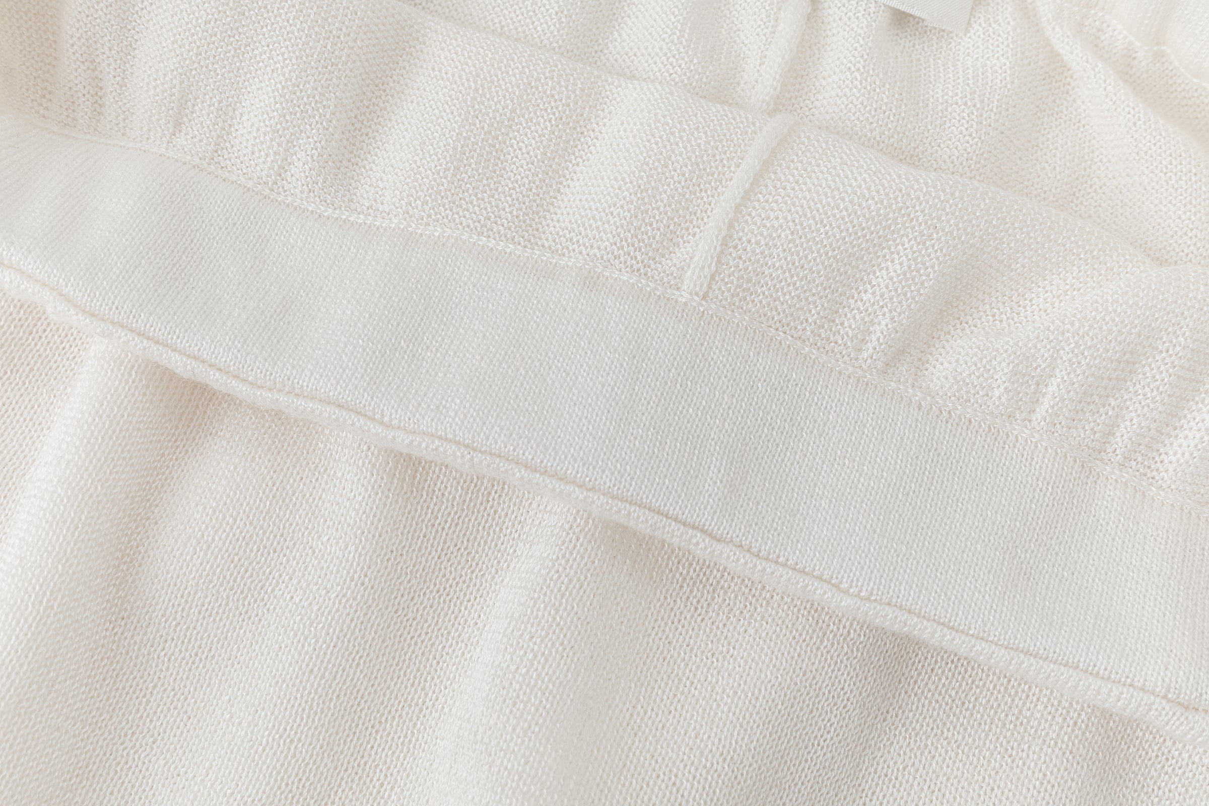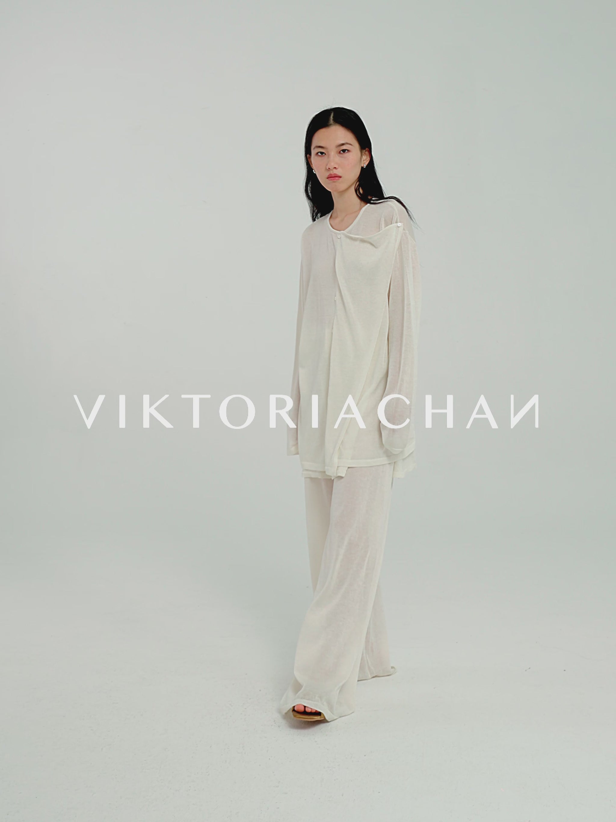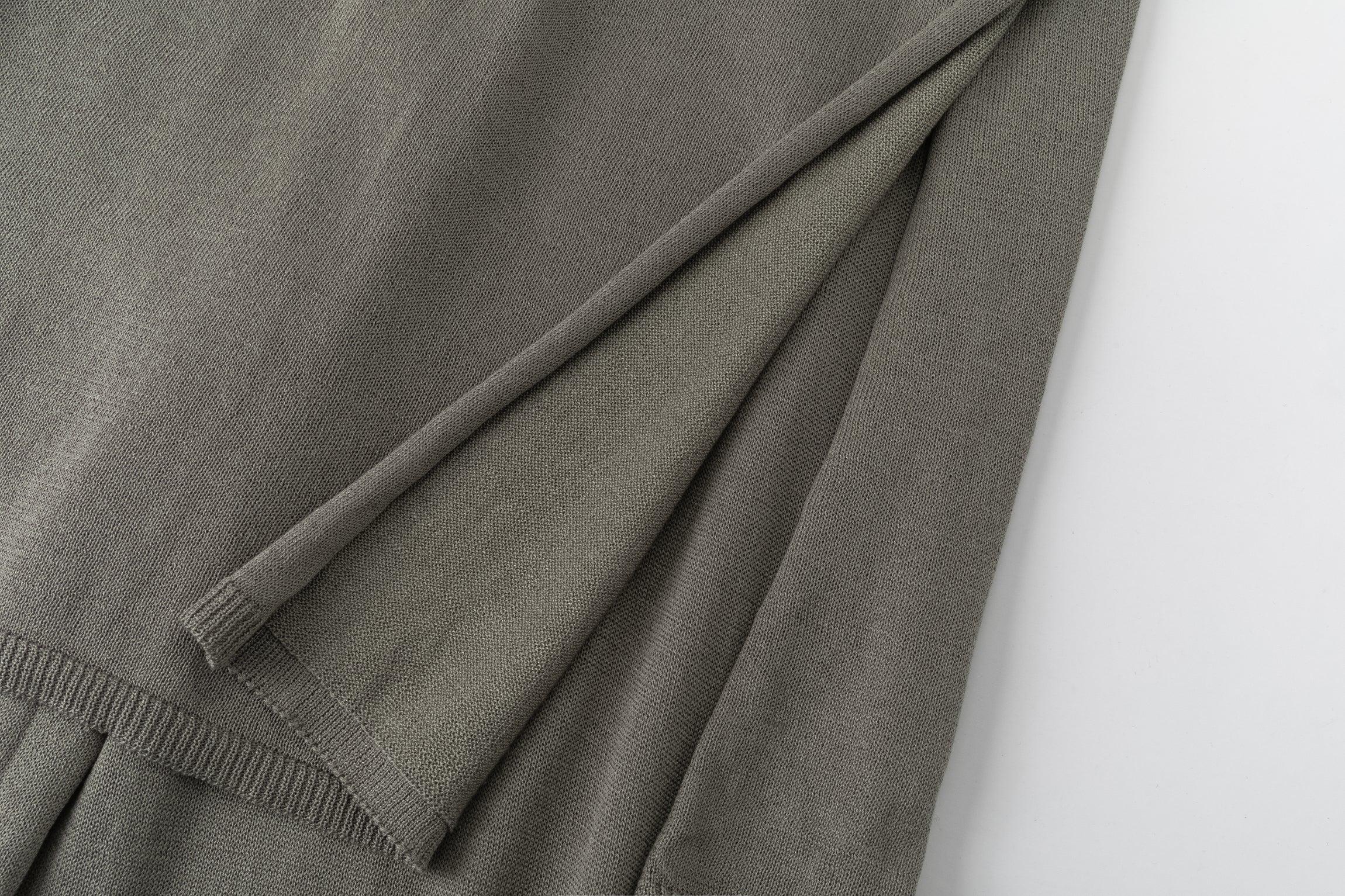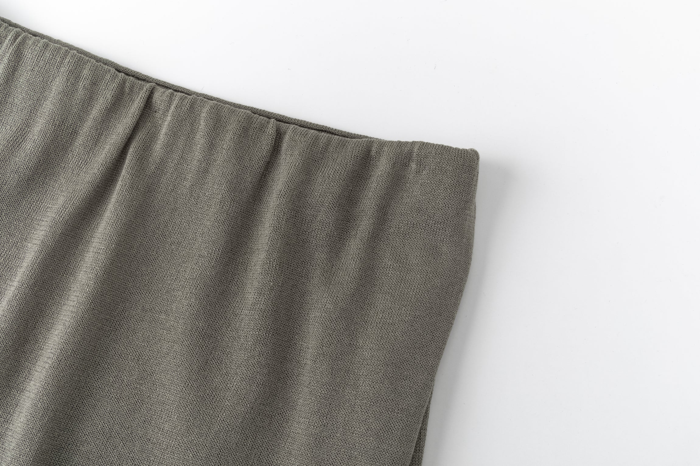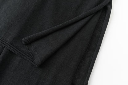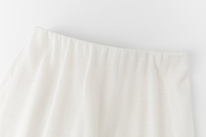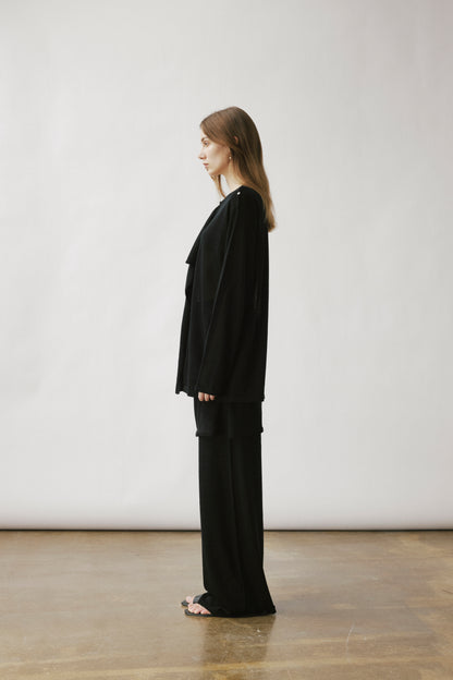 Two-layer knit trousers designed with a clean, pocketless silhouette. The top layer drapes like an outer skirt.