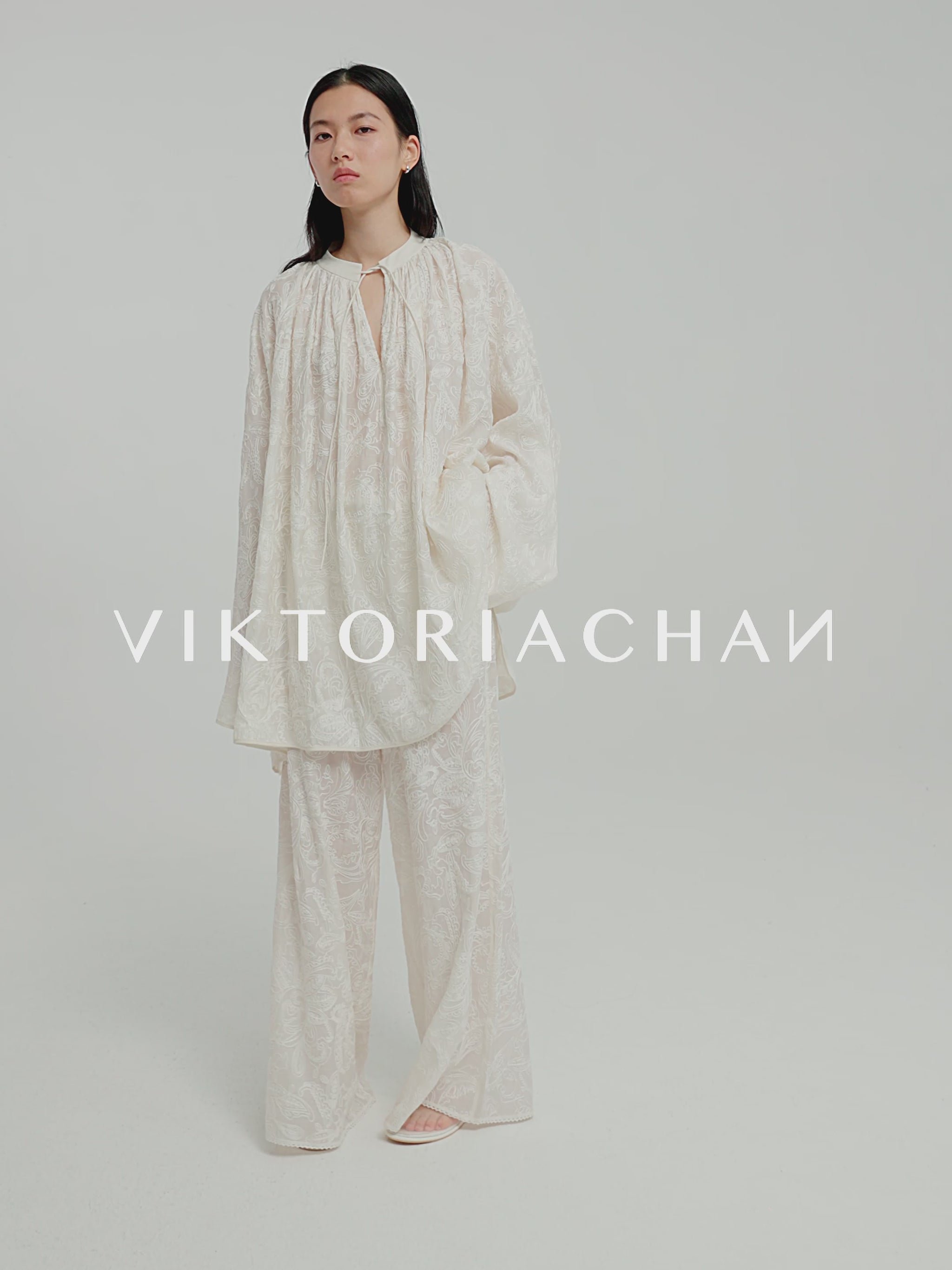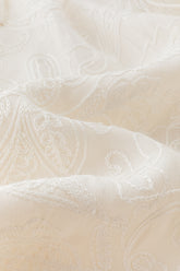 Oversized, flowy blouse with an intricate parsley and floral pattern throughout. Features a neckline that can be tied with a strap for adjustable styling and long, flared sleeves that en...
