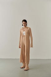 Ribbed knitted trousers with elastic waist. Slimming effect. The light color can be slightly transparent and recommended to wear nude underwear. Style with the matching long cardigan or ...