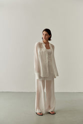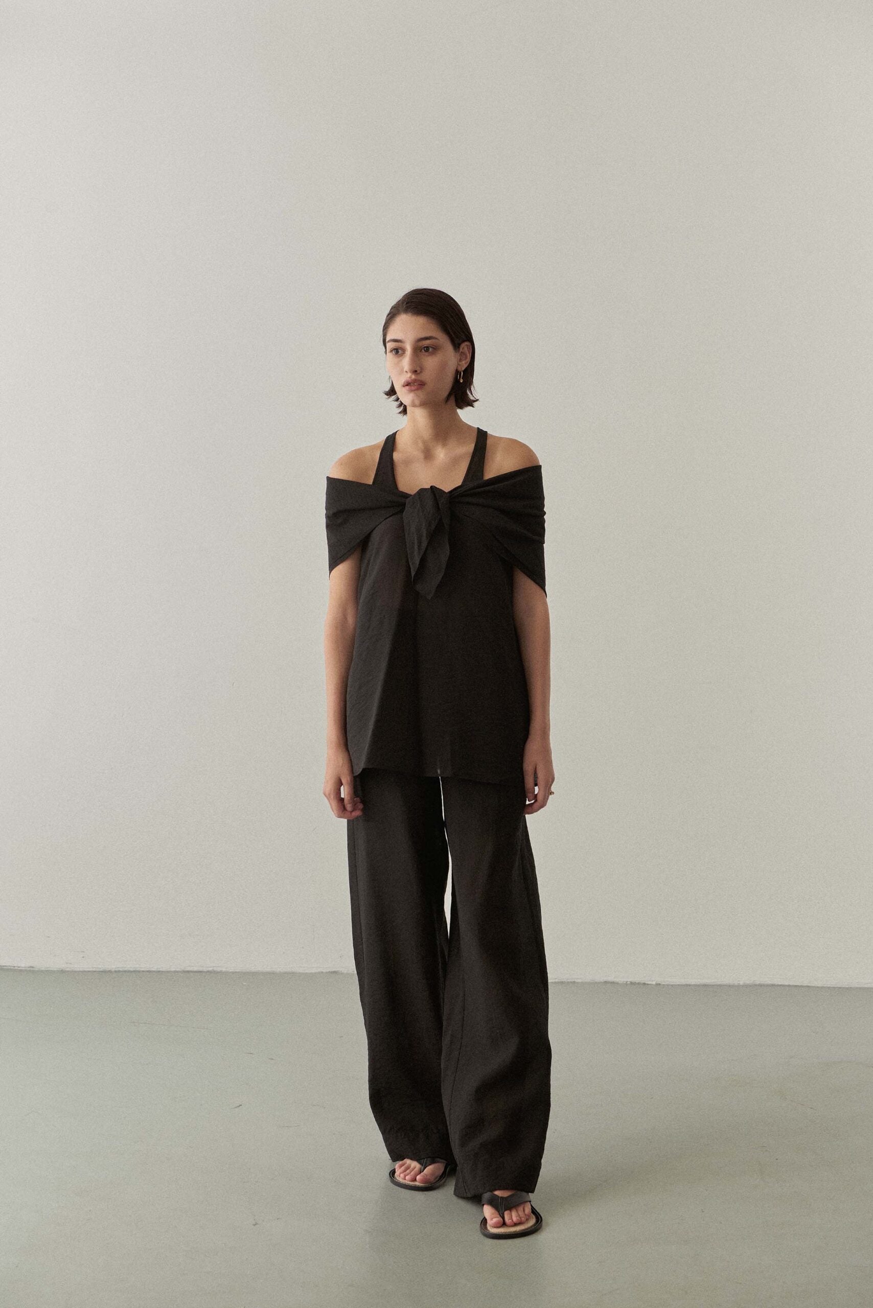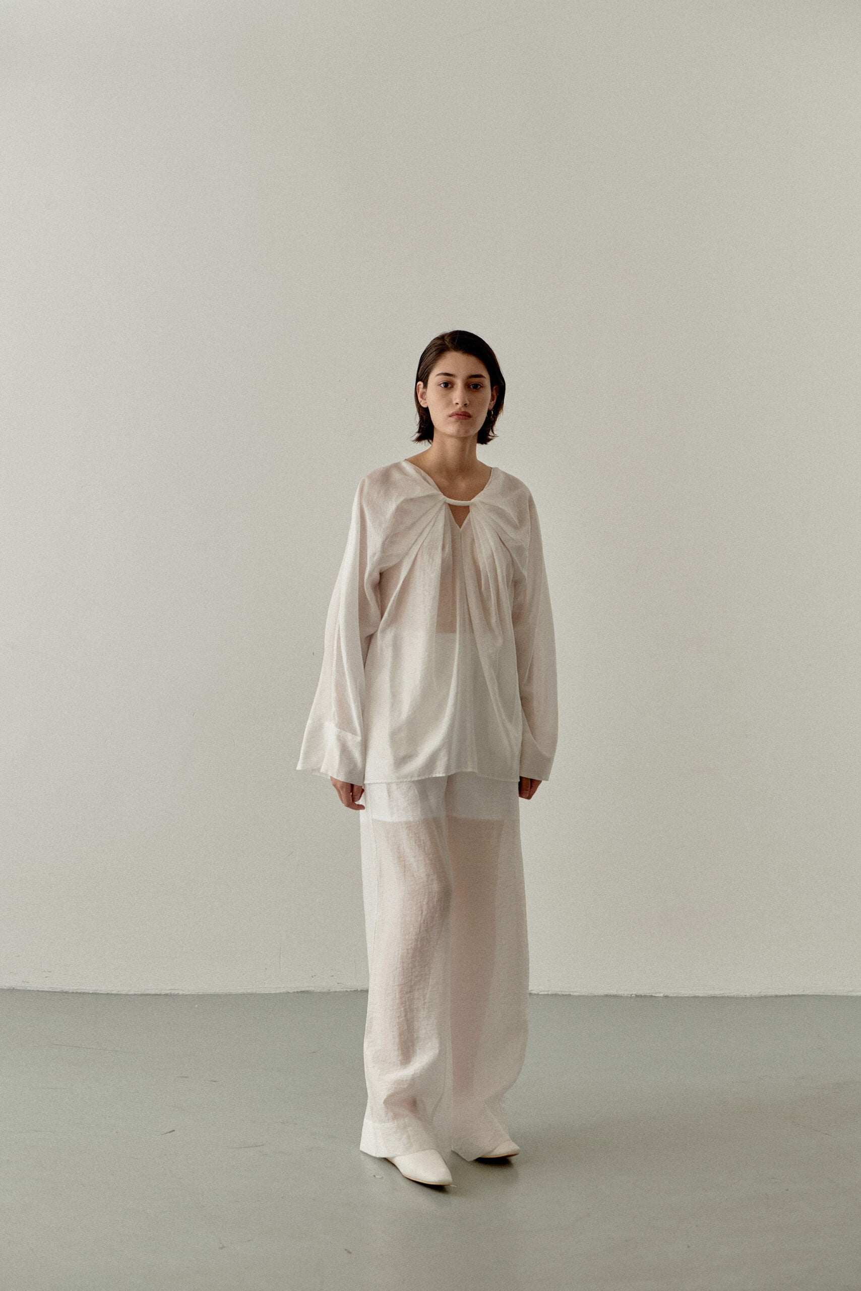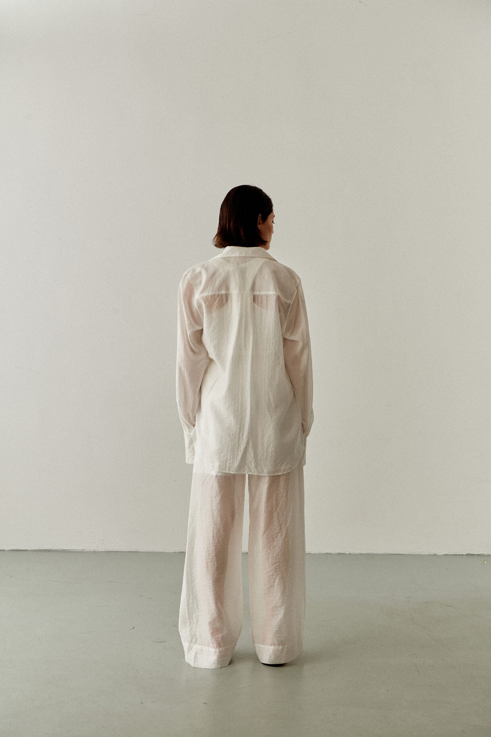 See through trousers with half inner lining. Wide leg with wide folded edge. The perfect summer trousers. Black aren't transparent but the white ones are. Model is 176cm and wears size S...