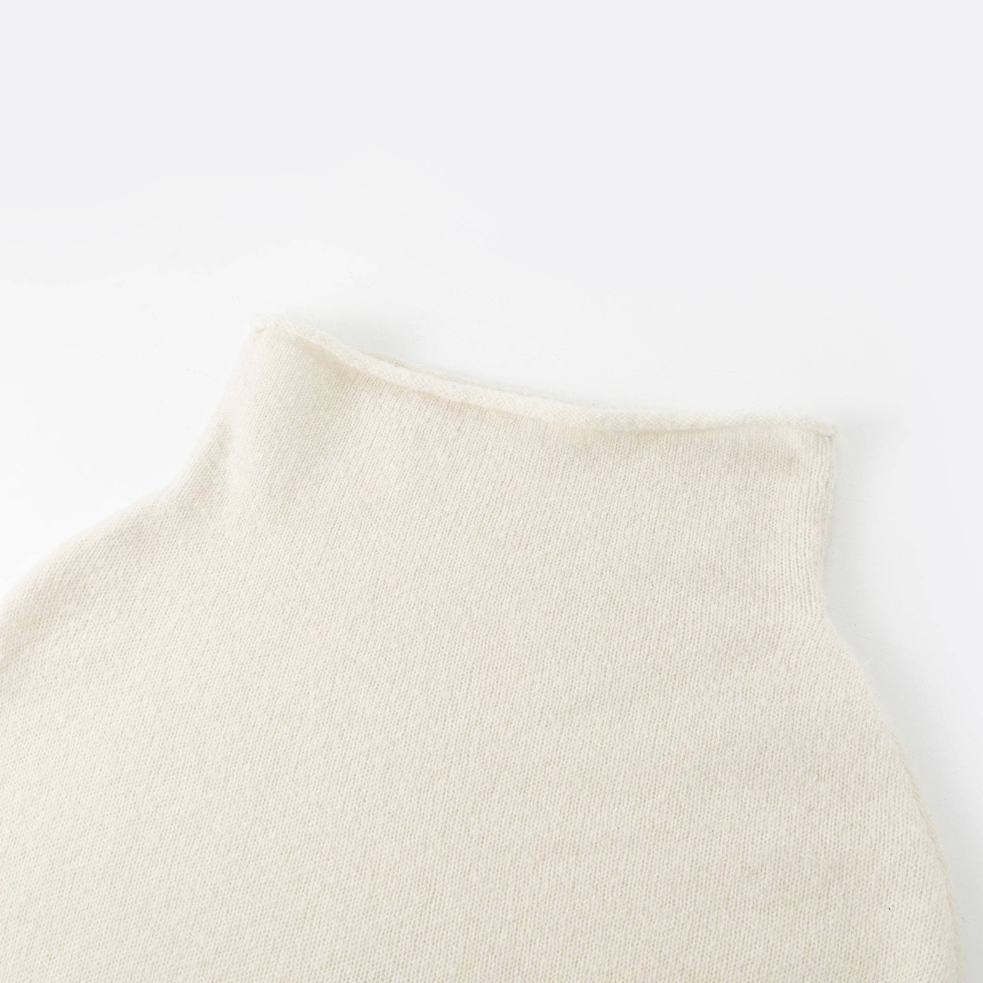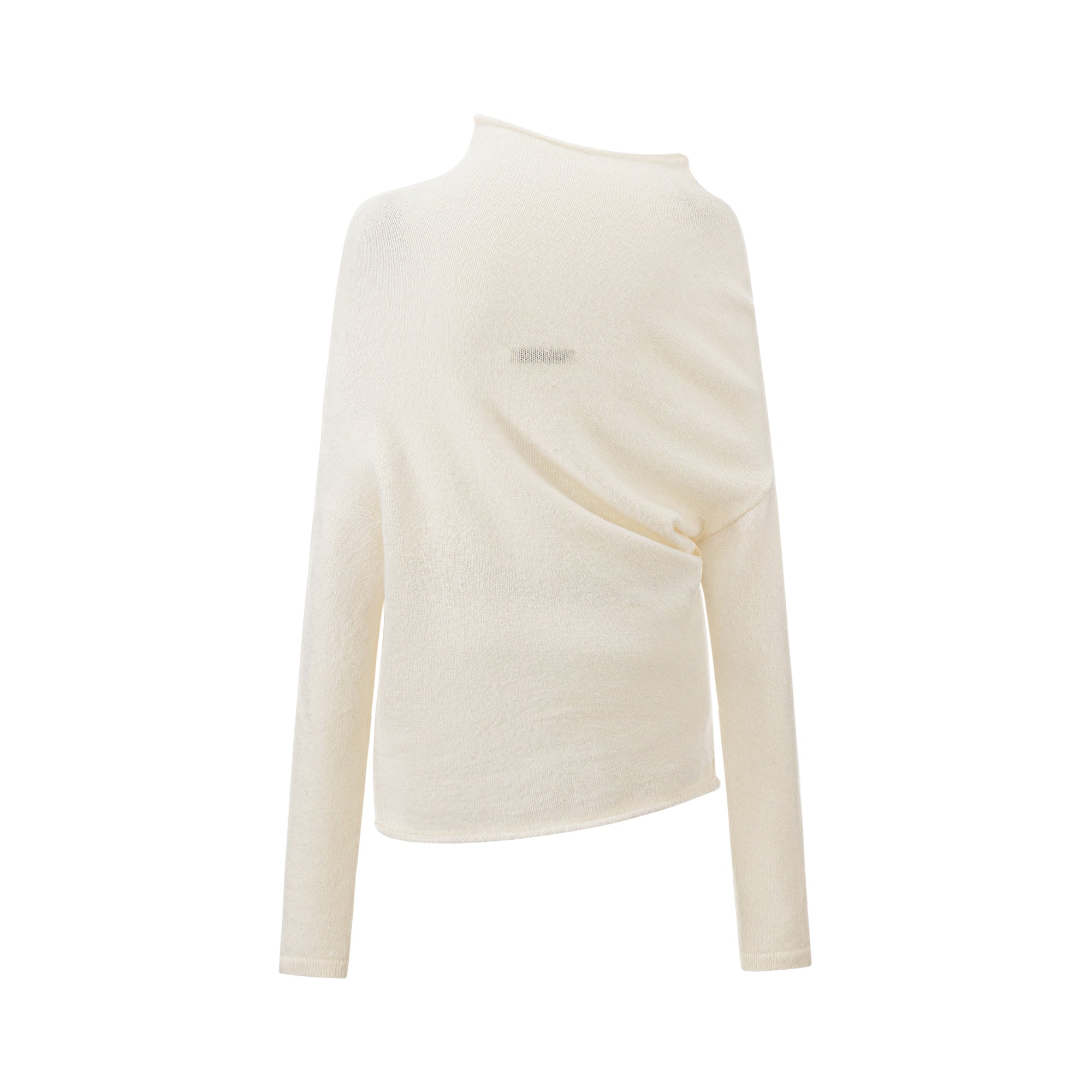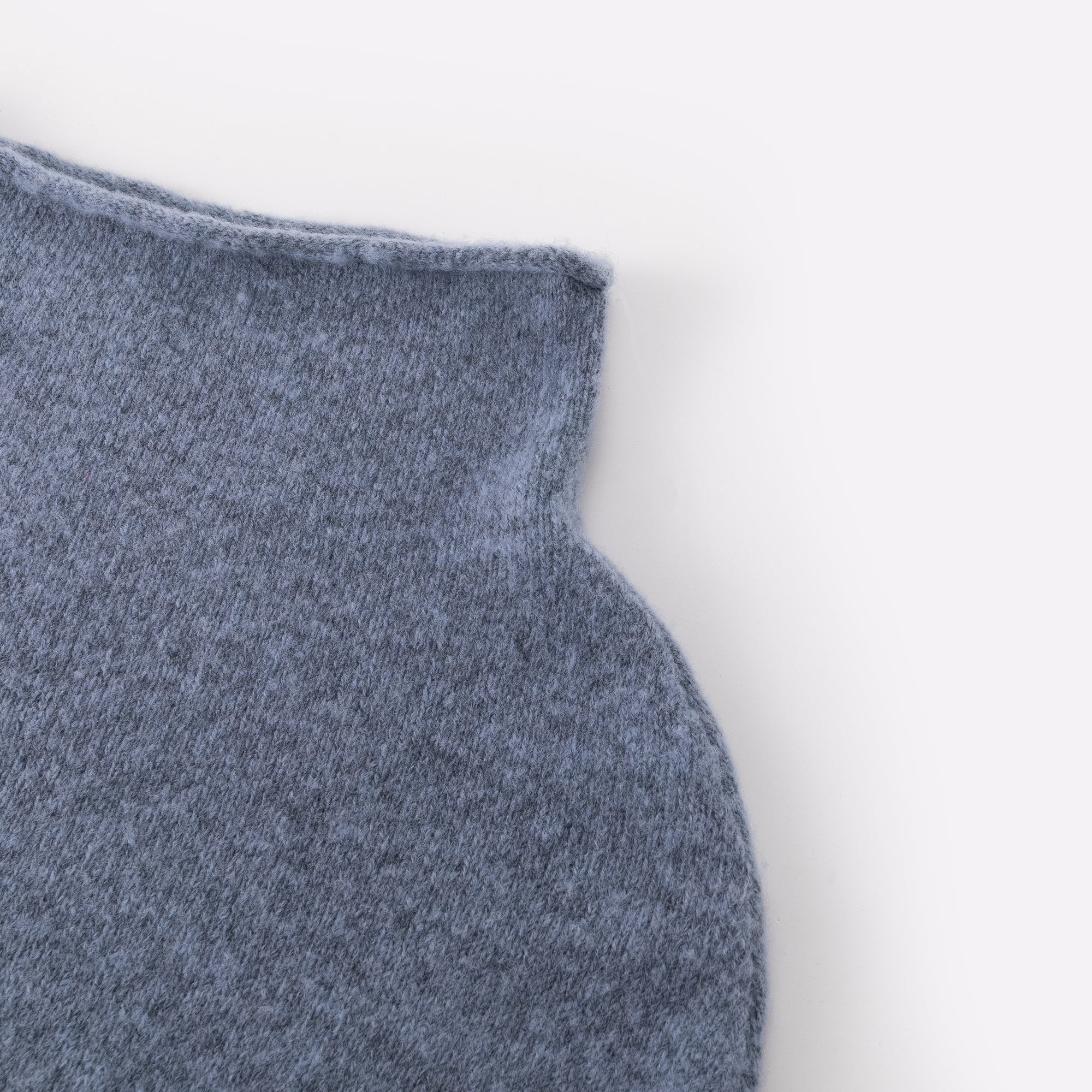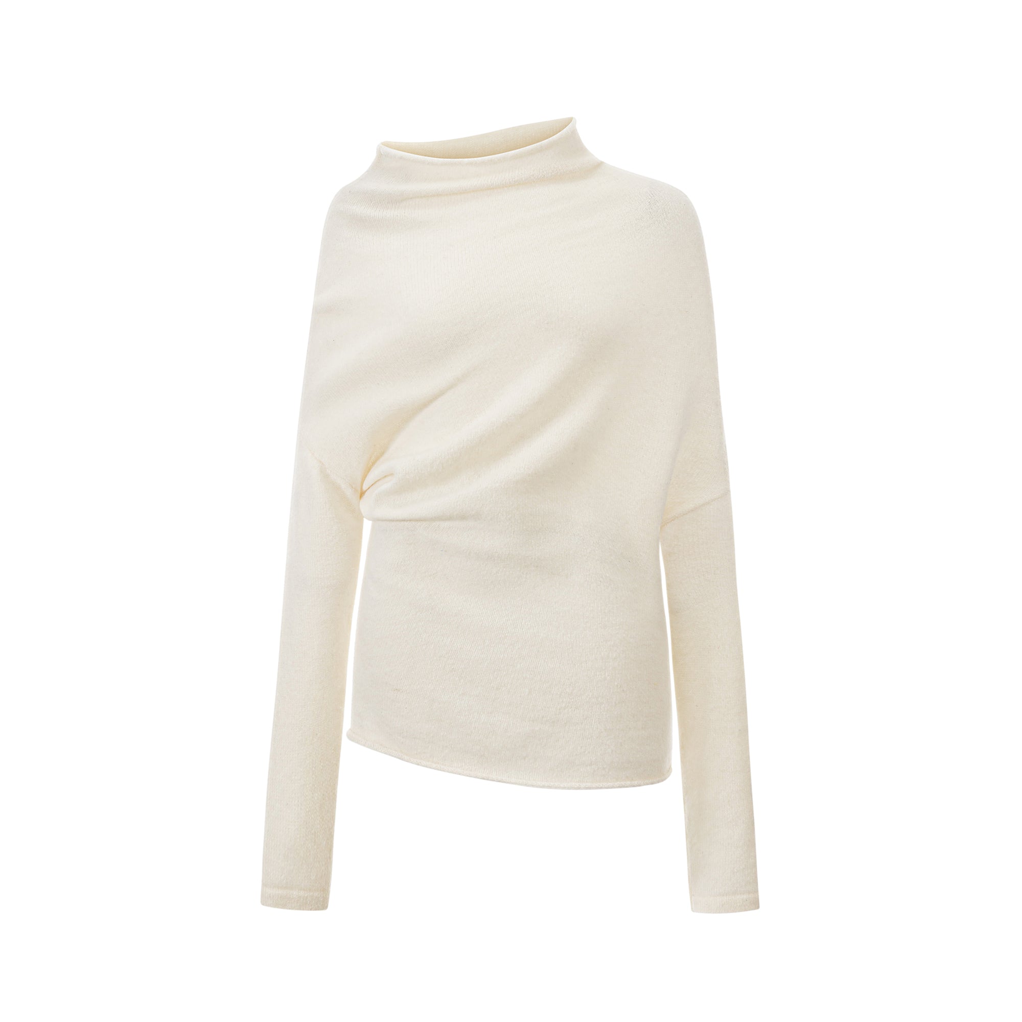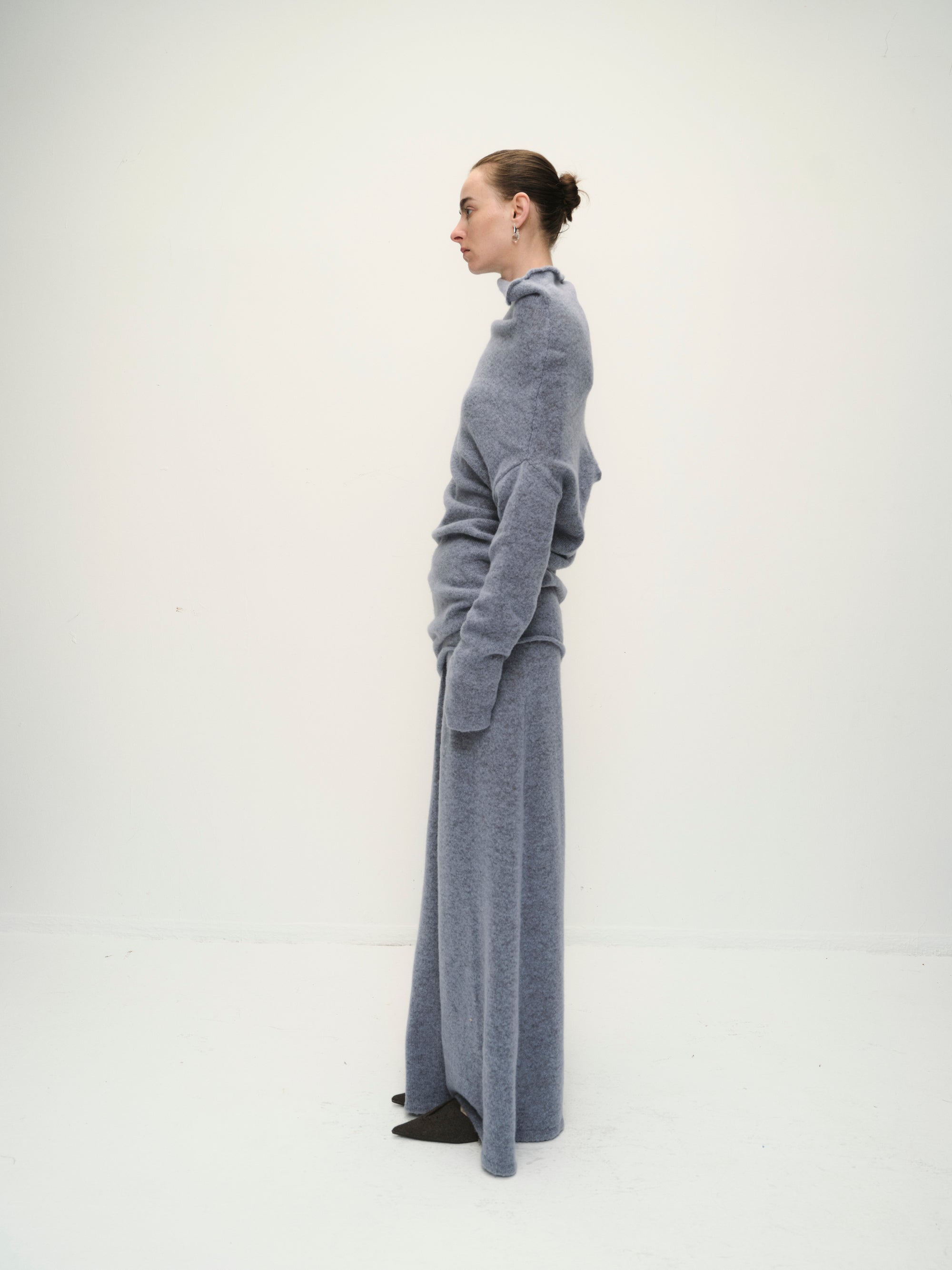 A soft wool knit with a relaxed, flowy silhouette, designed for comfort and elegance. The collar is slightly oversized and is worn skewed, adding subtle structure without losing its refi...