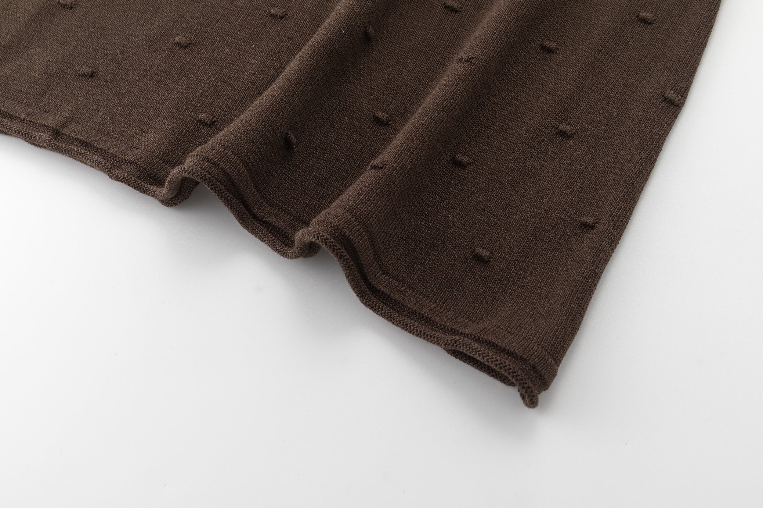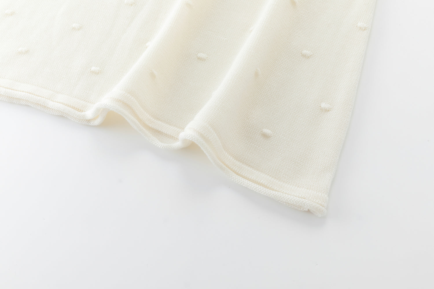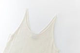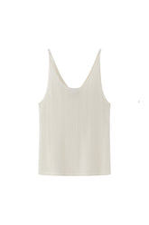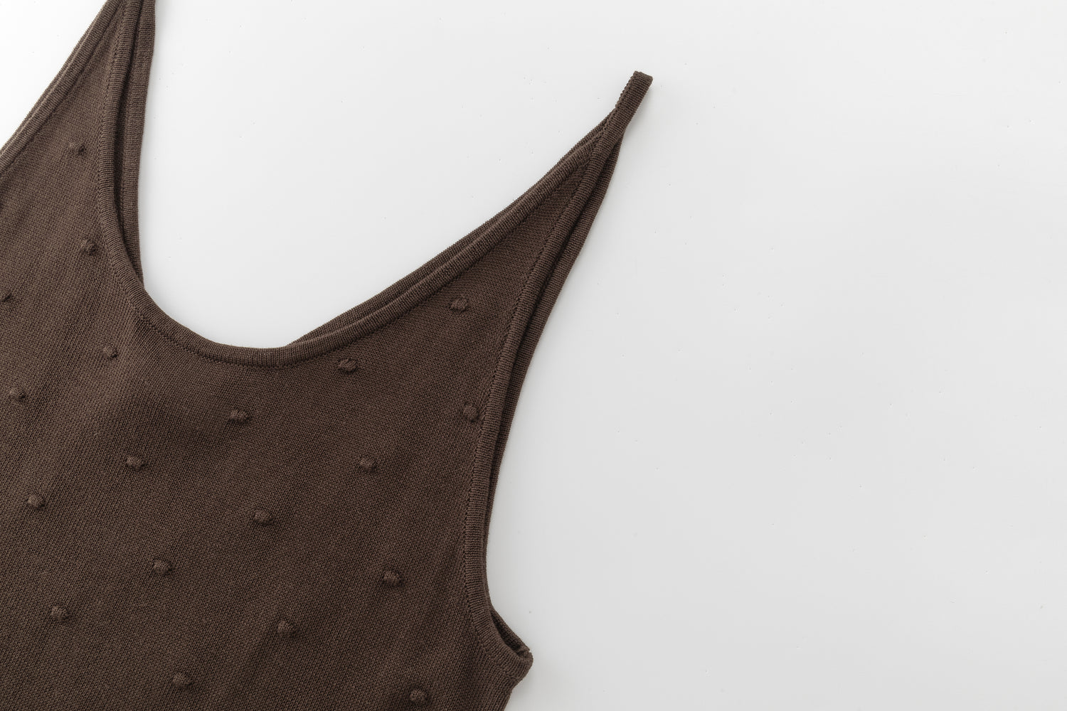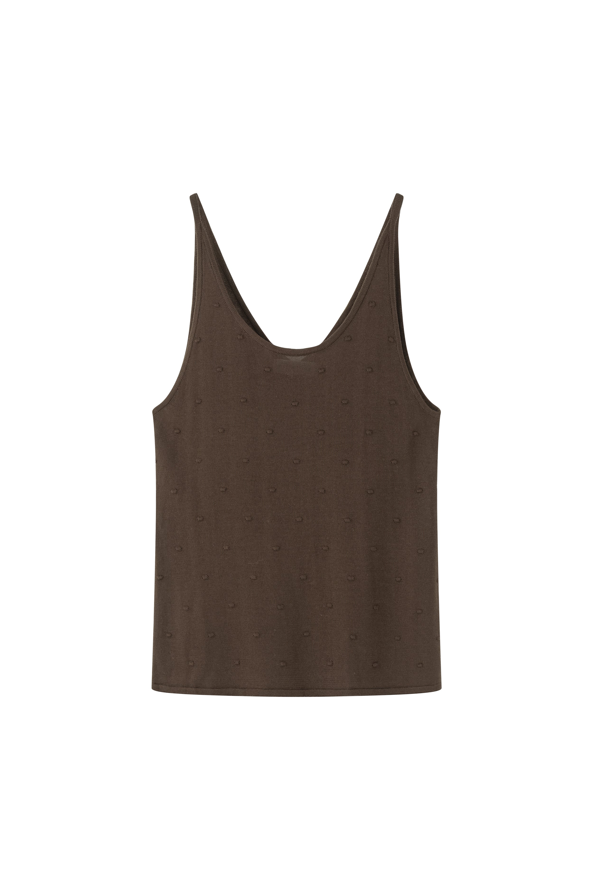 Lightweight knit tank featuring delicate dot details and fine straps. Designed for versatility, it can be worn on either side, offering the choice between a V-neck or a U-neck front.