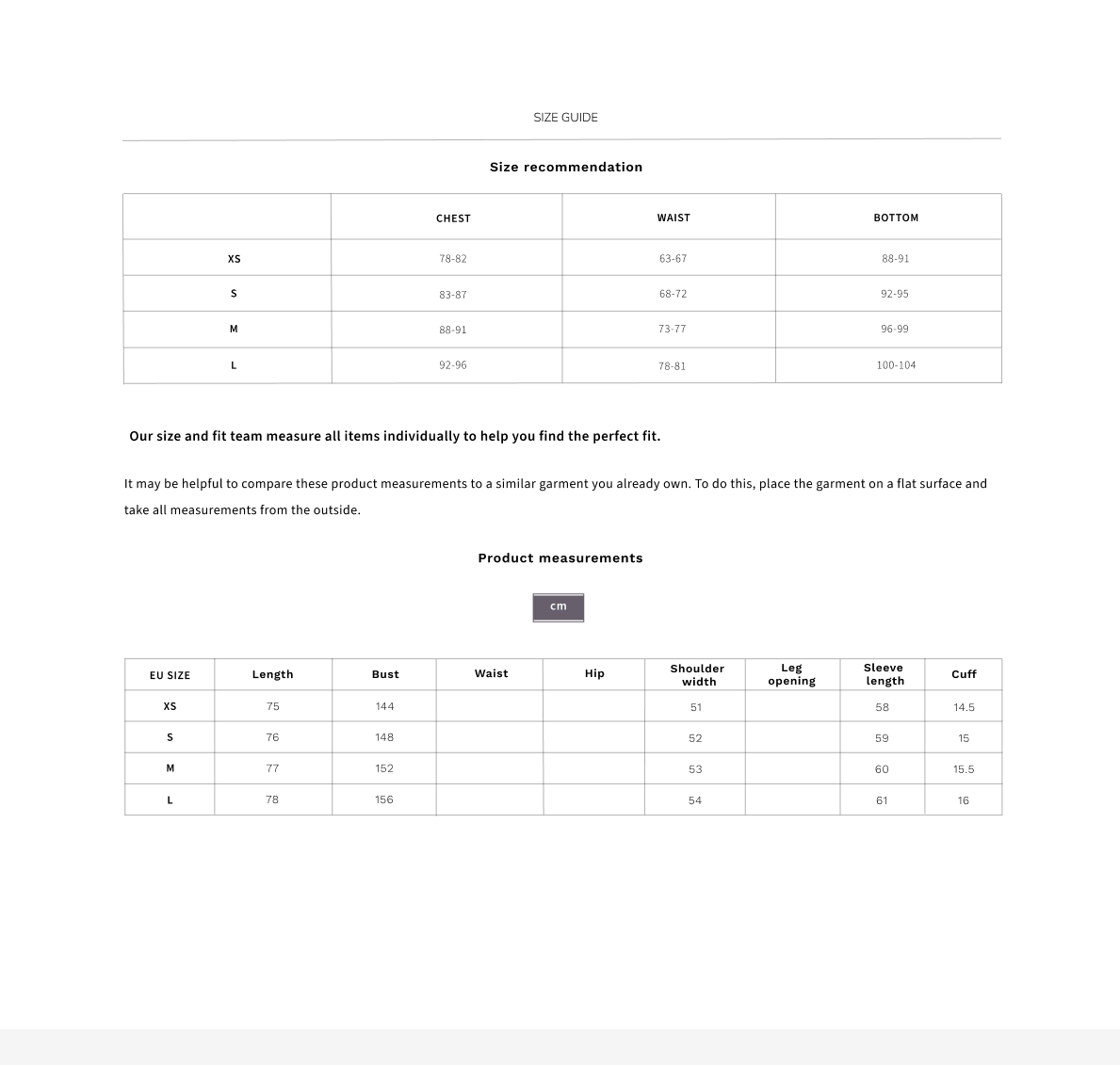 The model is 1.76 m tall and wears a size S. For more detailed sizing information, please consult our size charts.