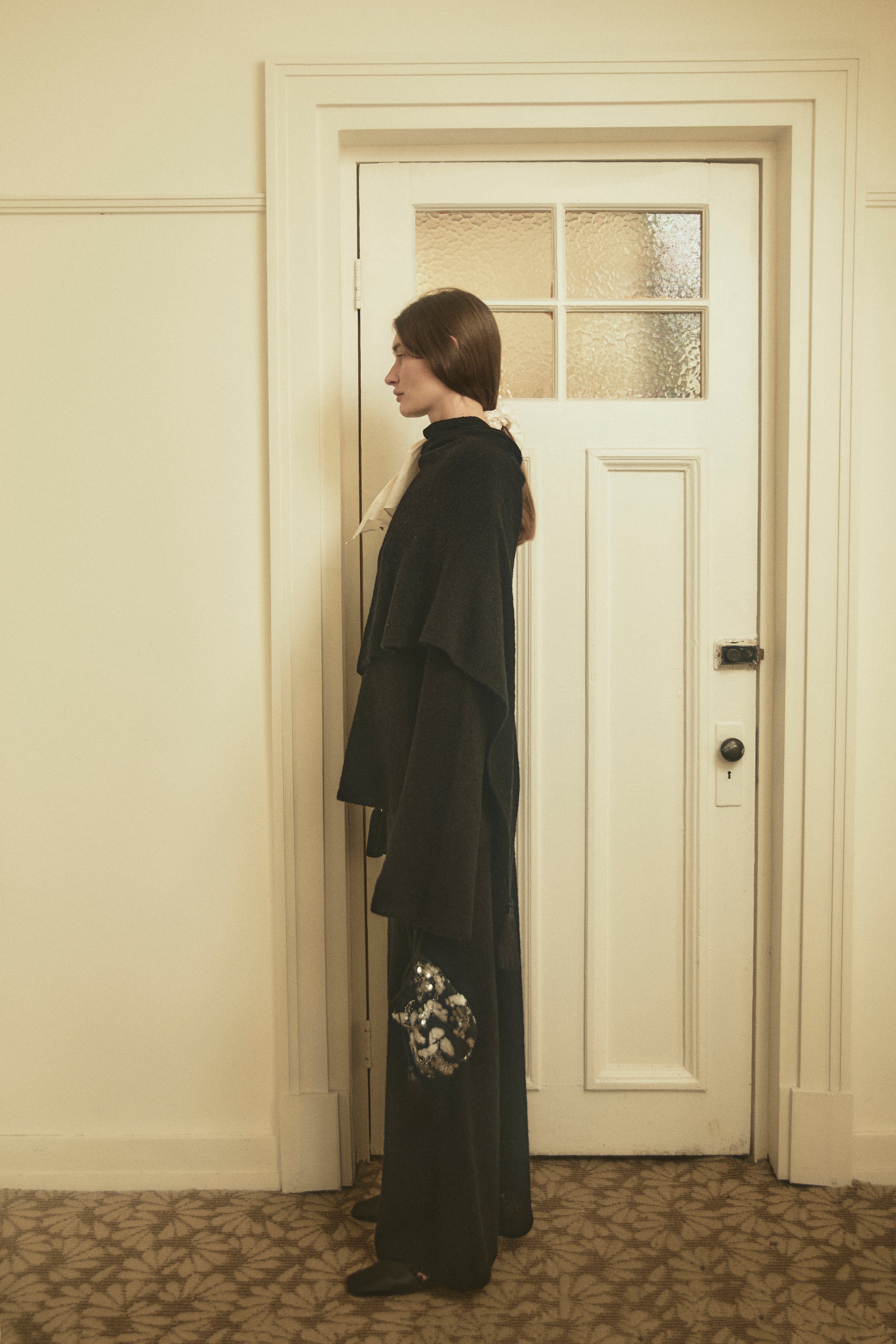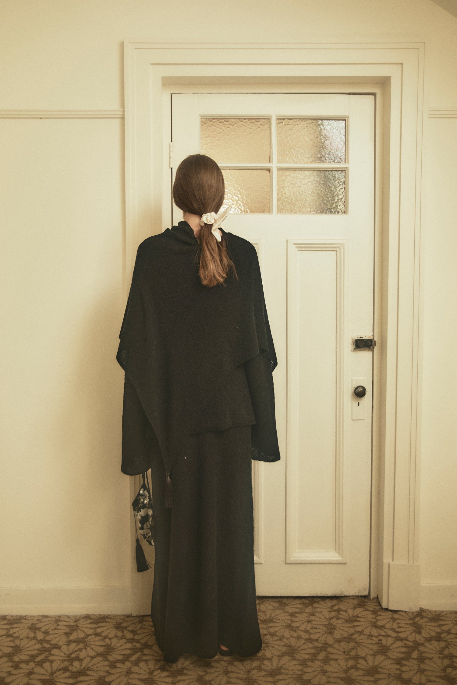 Matching floor-length wool skirt crafted to complement the oversized pullover. Features a straight silhouette, creating a cohesive look when worn as a set