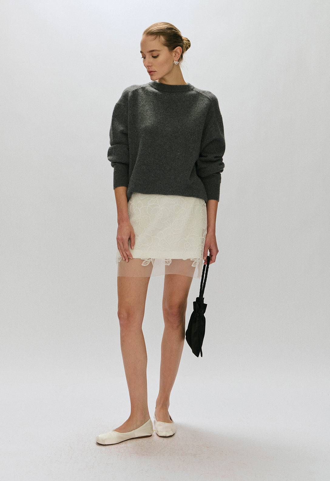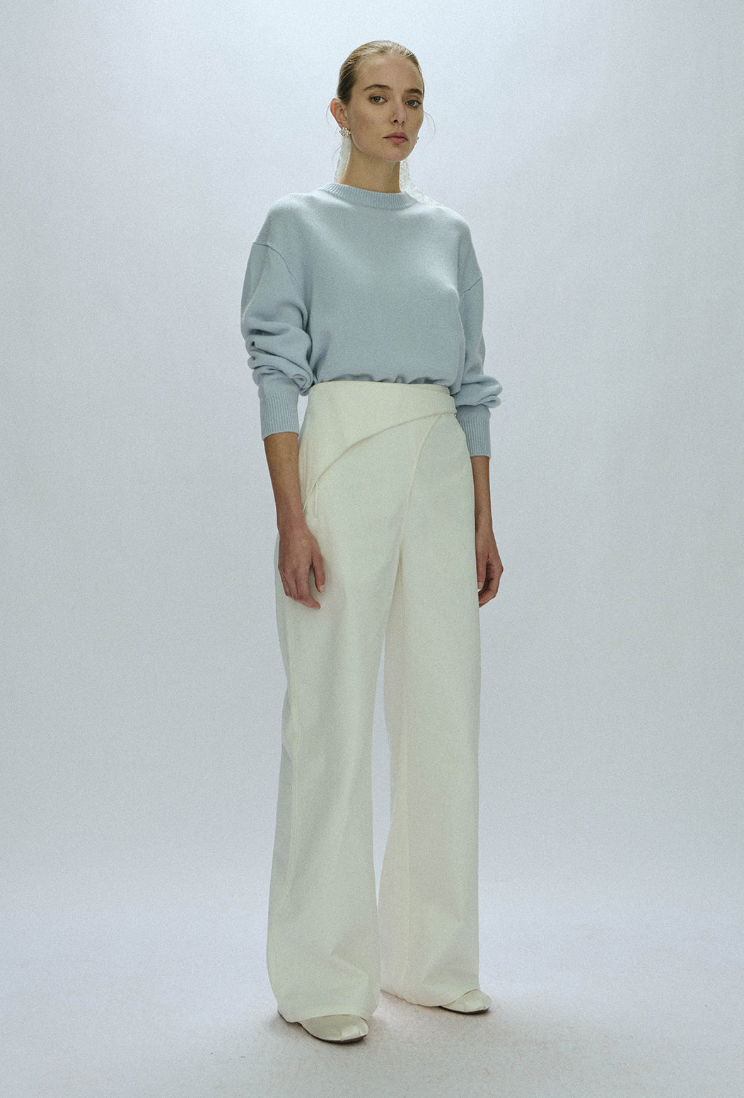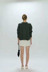 Cashmere sweater that's minimal and super comfortable. Oversized in style and goes with all bottoms. A must have piece in the winter wardrobe. Model is 176cm tall and wears size S.