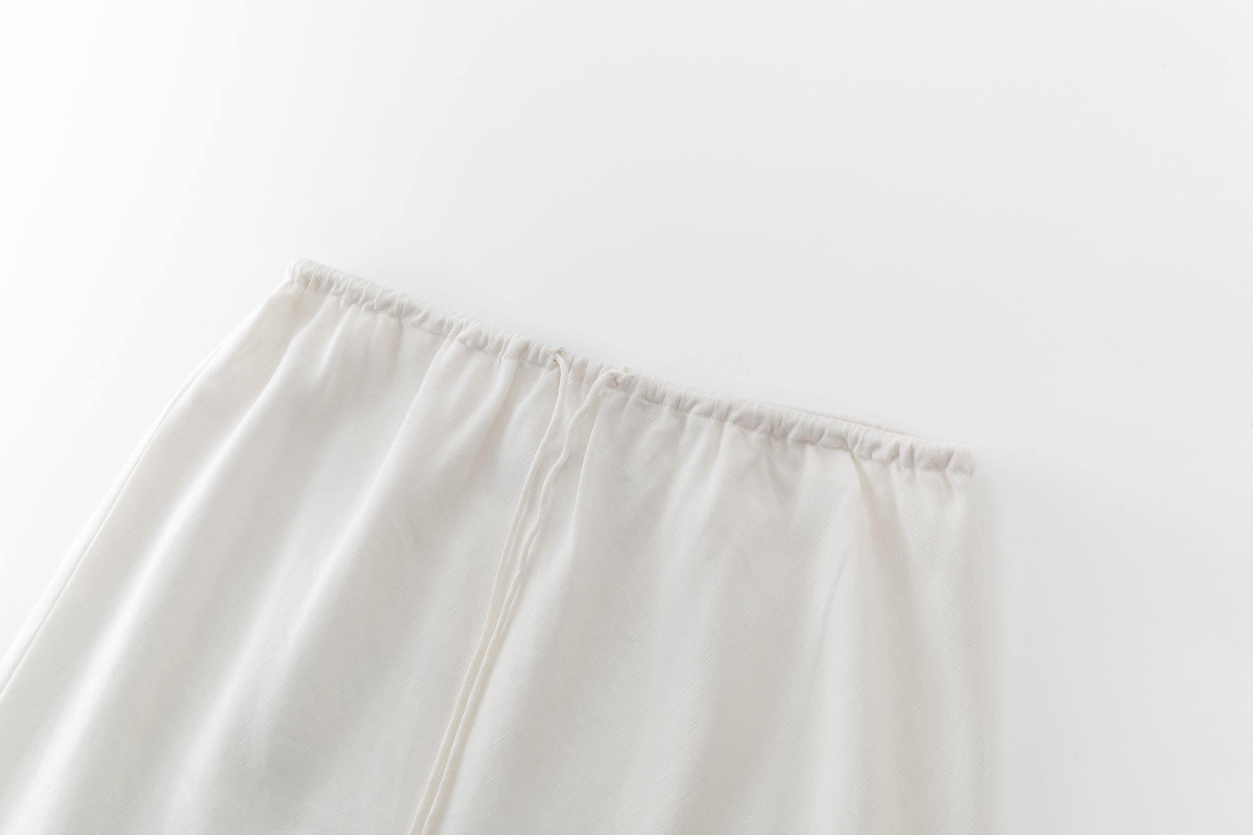 Floor-length skirt made from breathable linen. Designed with a drawstring waist for an adjustable fit.