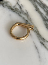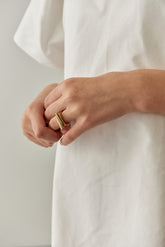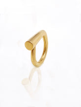 Deformed ring designed like a rounded pistol. In 18k plated gold over stainless steel. For a cool effect, where it doubled up! Graved logo on the inside.