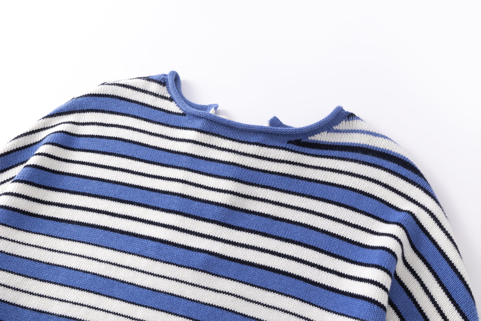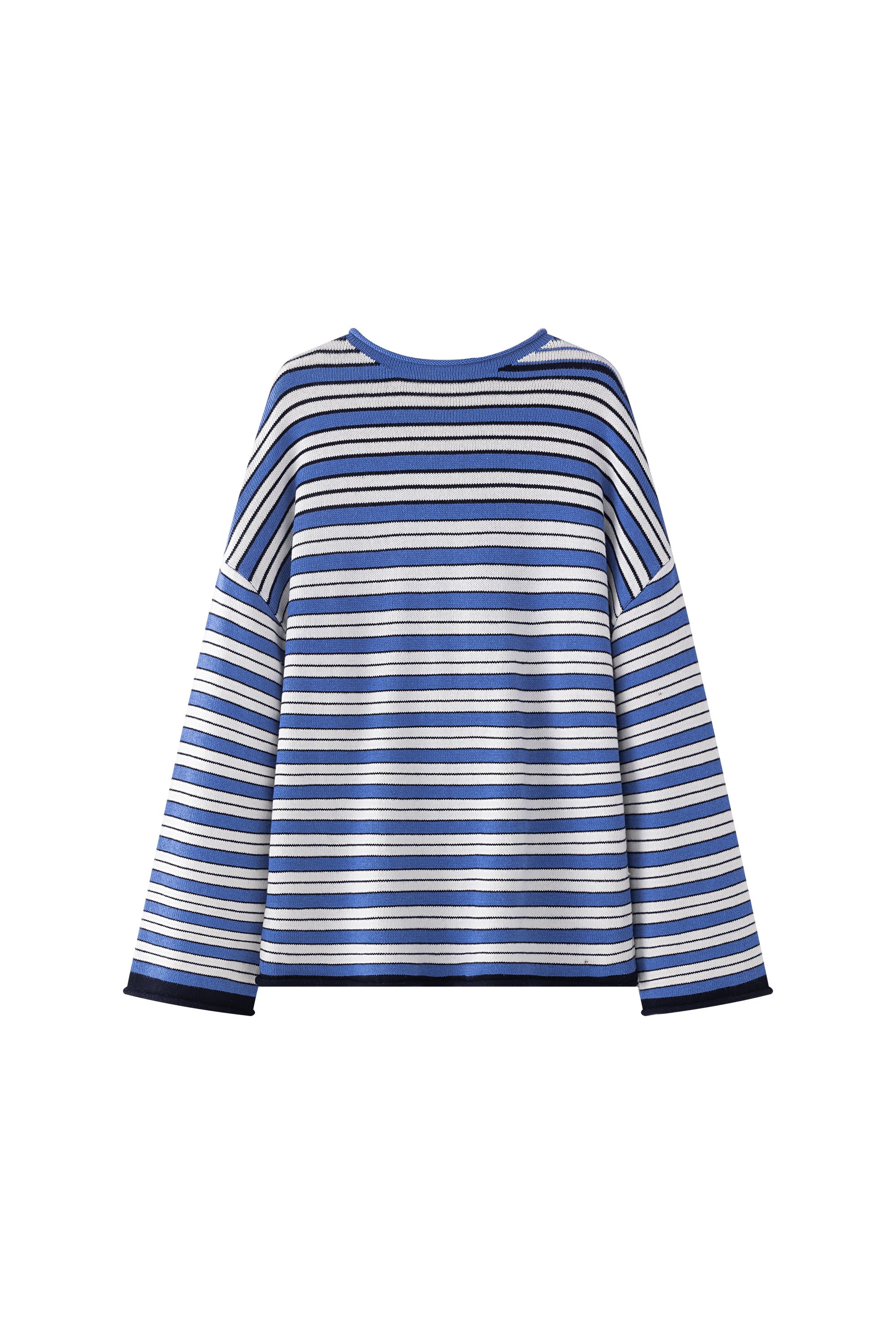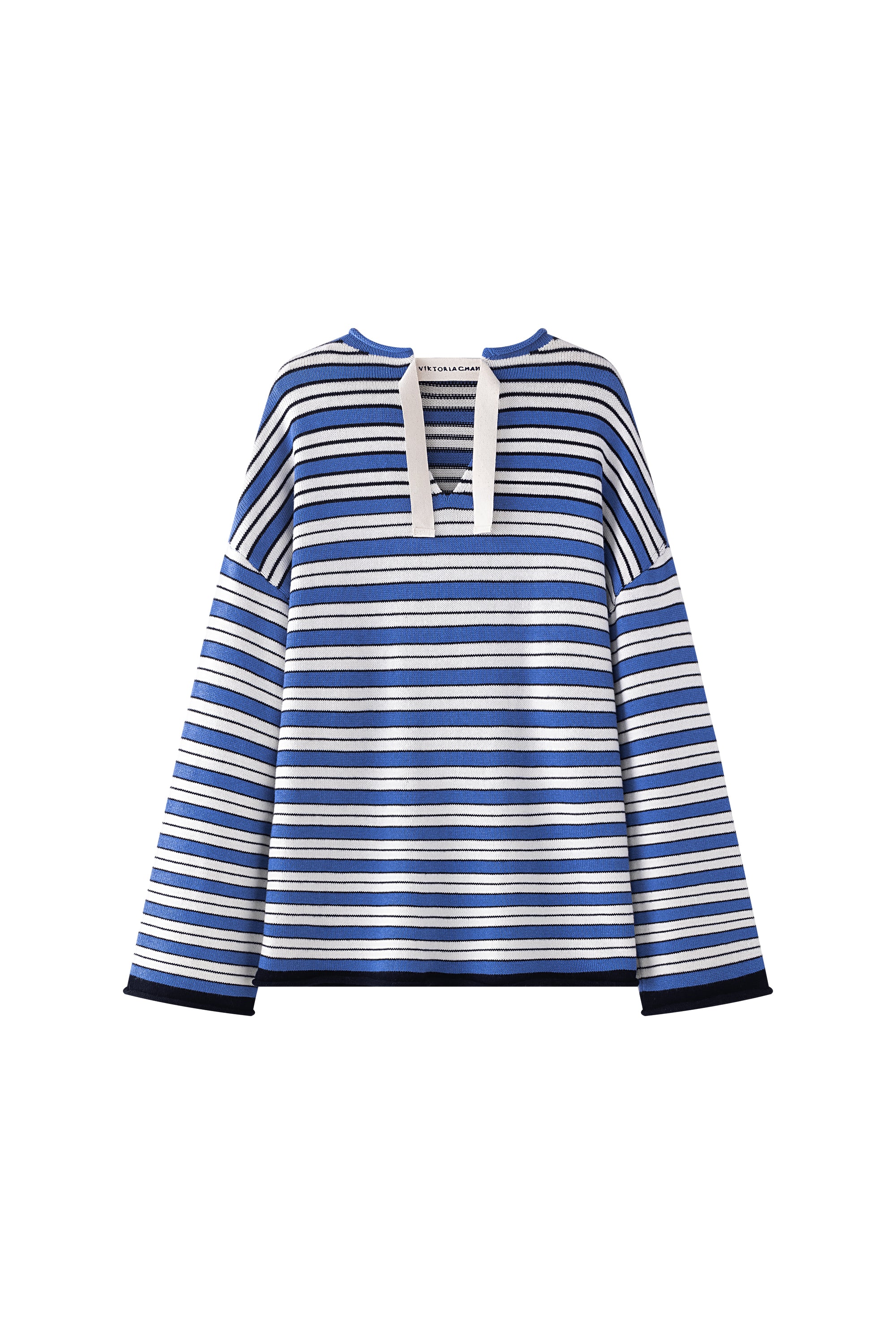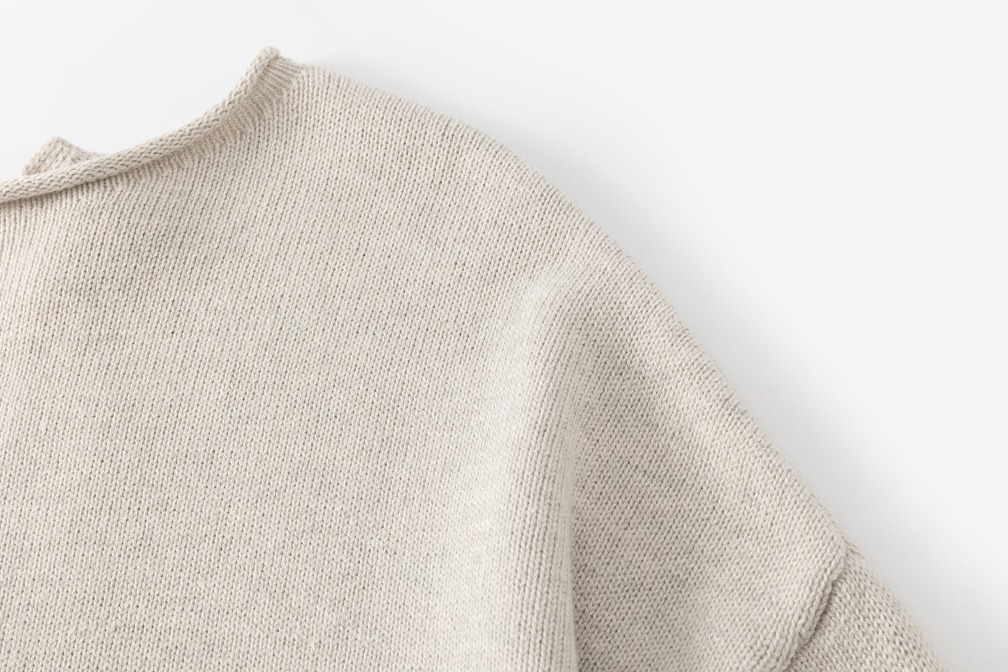 A contemporary knit sweater featuring relaxed dropped shoulders and softly rolled hems for an effortless finish. The standout detail is the open back cut, secured by a sleek strip showca...