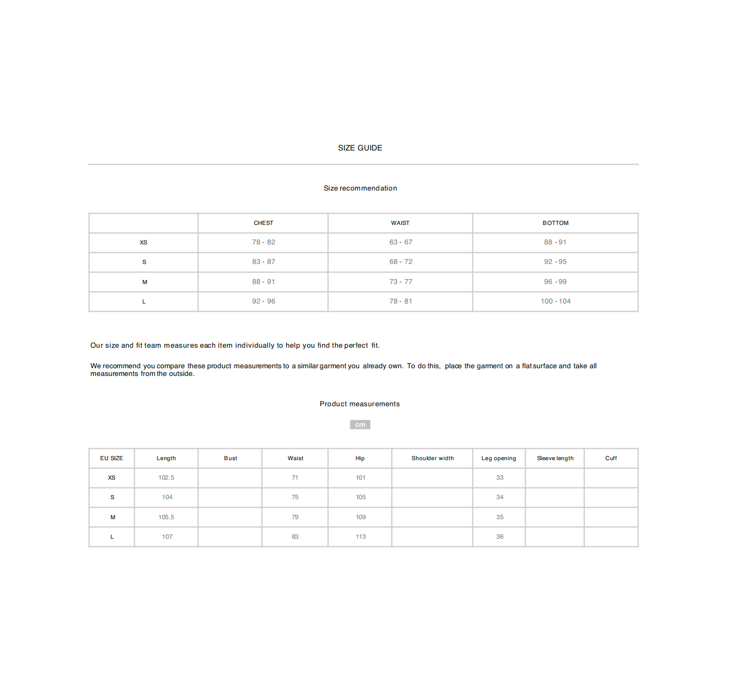 The model is 1.76 m tall and wears a size S. For more detailed sizing information, please consult our size charts.