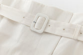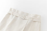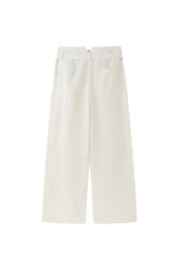 High-waisted cotton-linen trousers with front flap and tonal belt. Creates the illusion of an oblique skirt, adding a sculptural element to the silhouette. Finished with a tone-on-tone s...