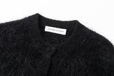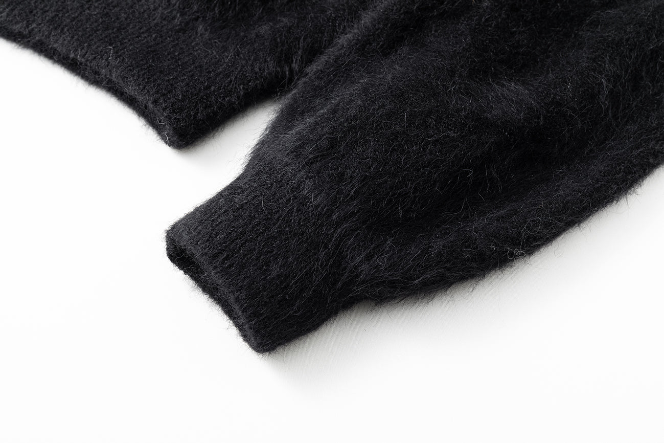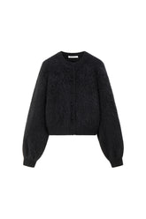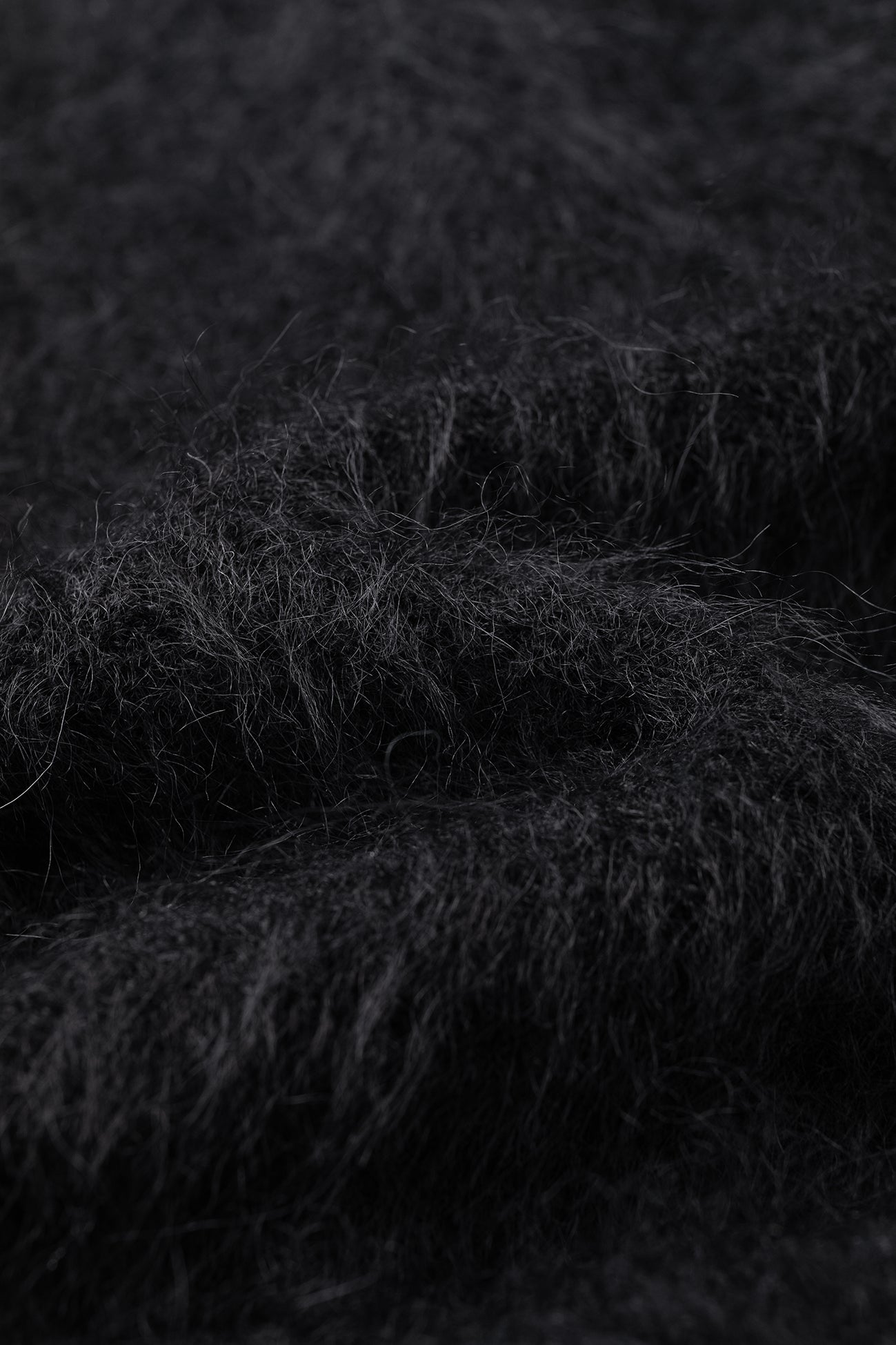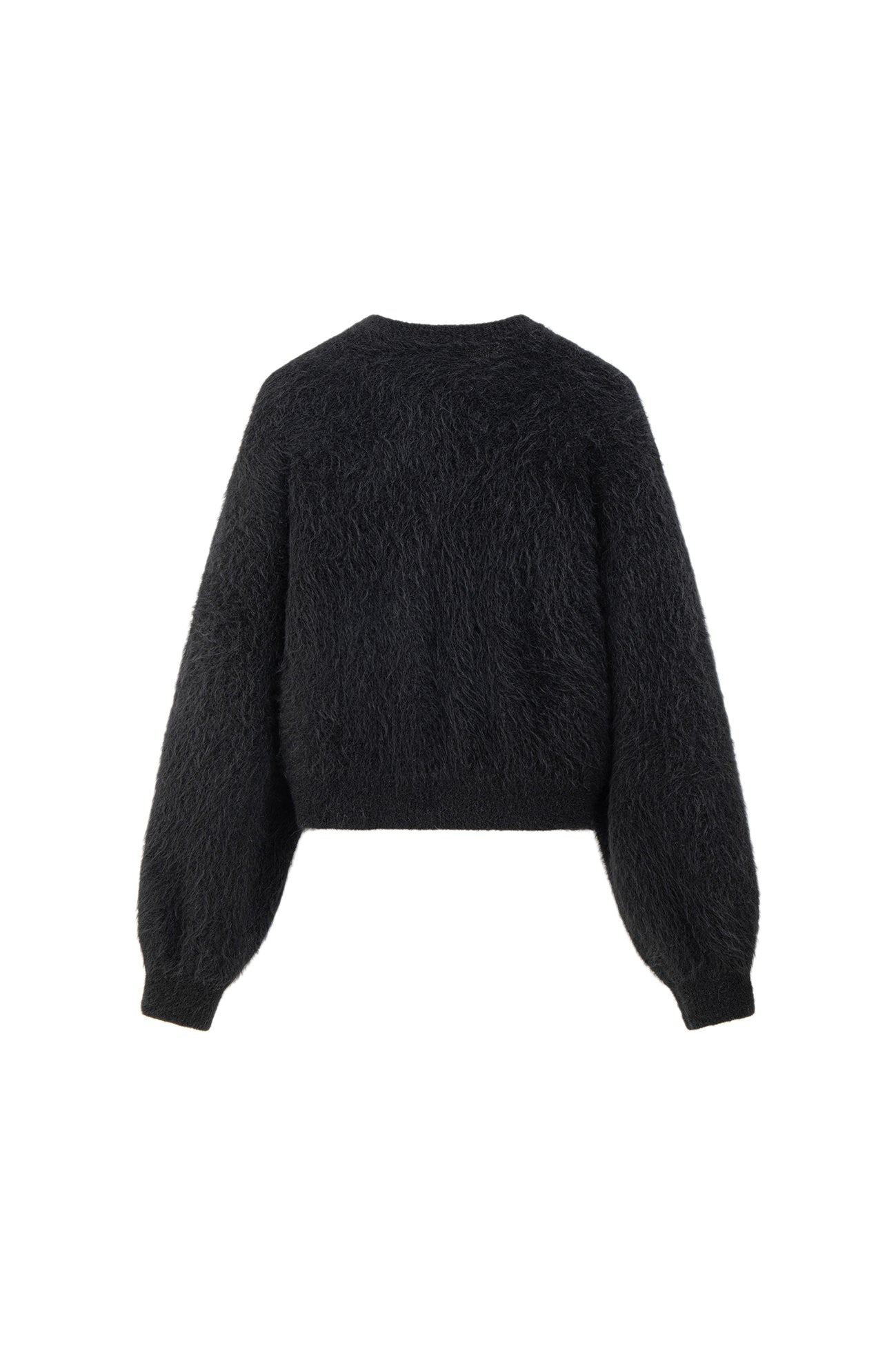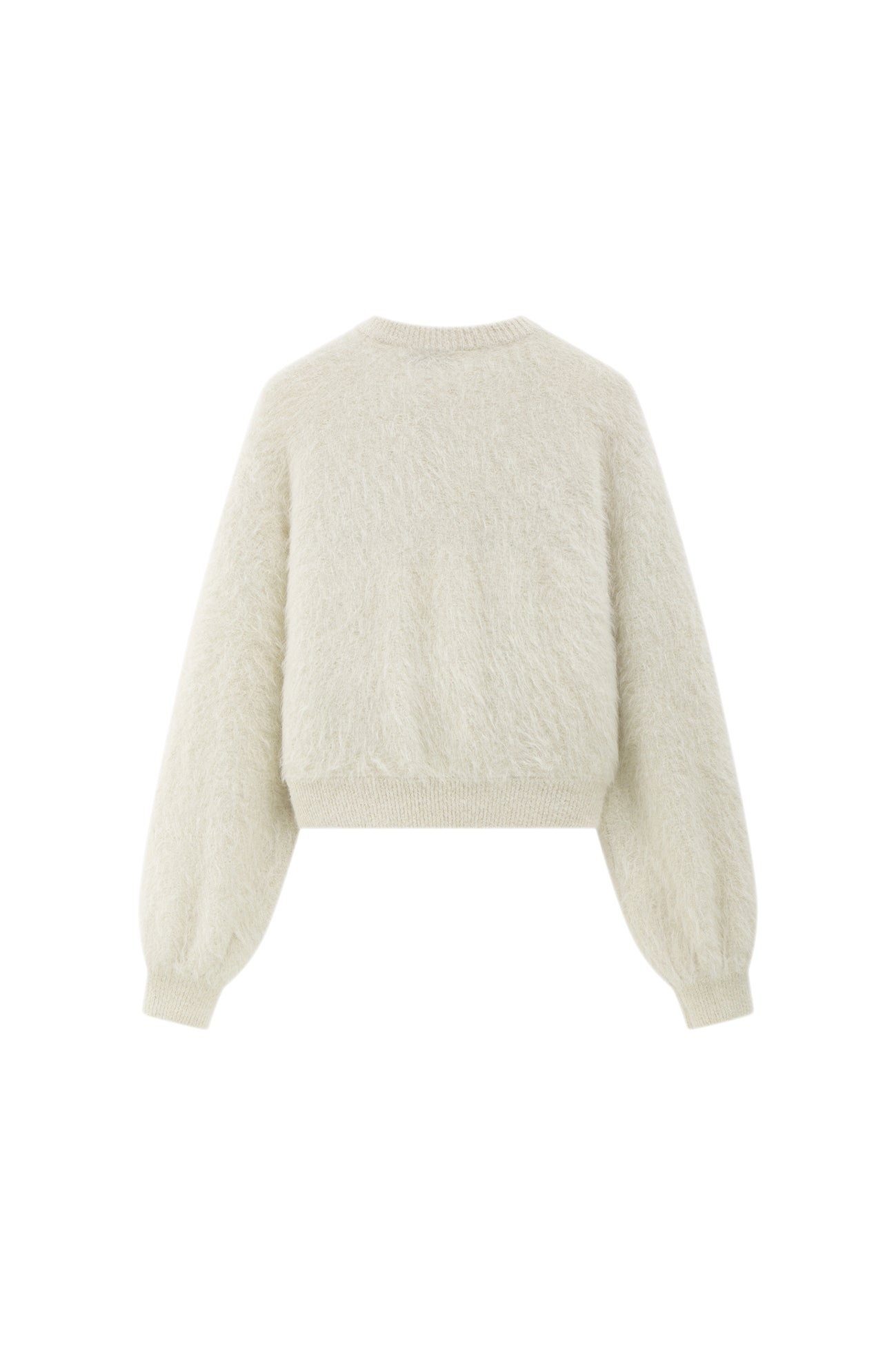 Furry knit with small cuff and bold sleeves. Short in style with long sleeves and fitted bottom. Wear with something simple below for a classic and warm look. Model is 176cm tall and wea...