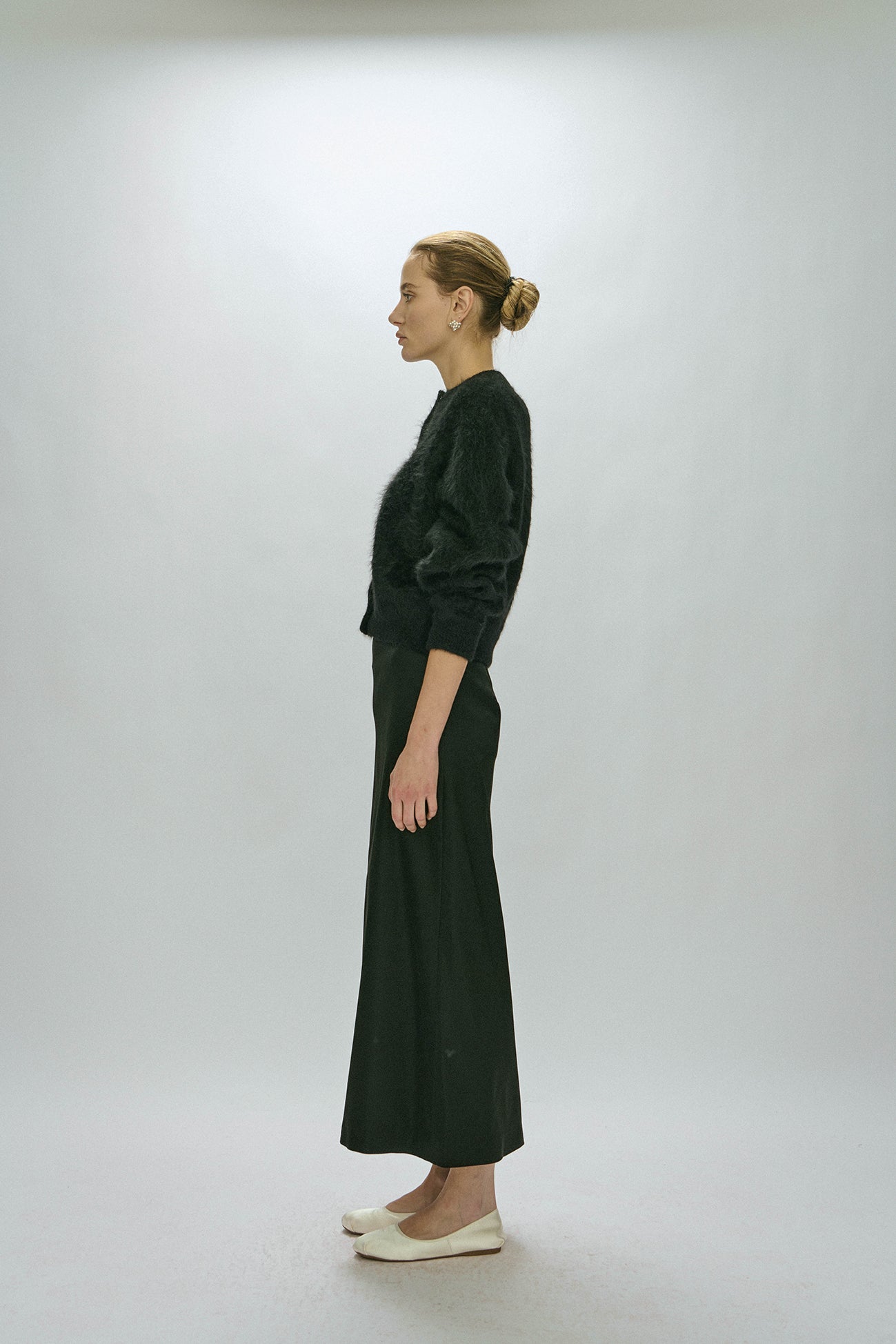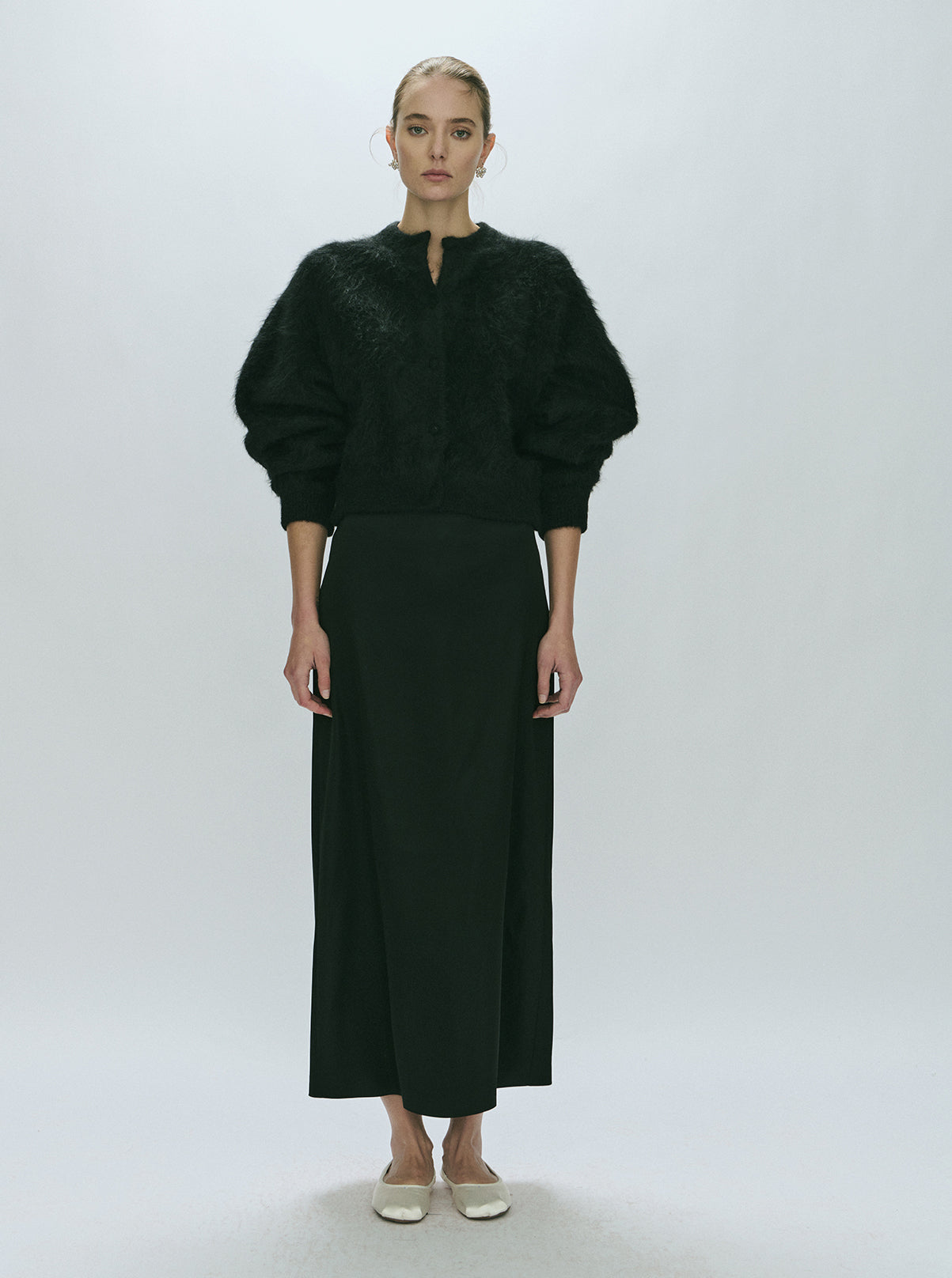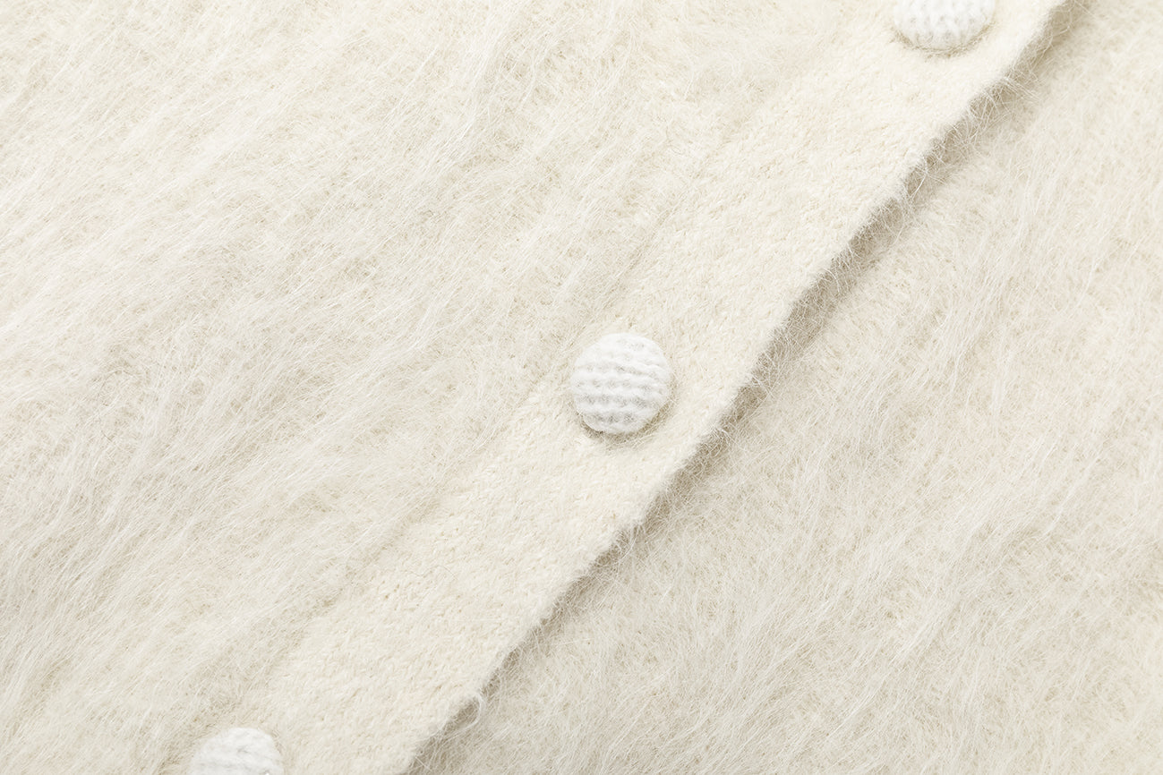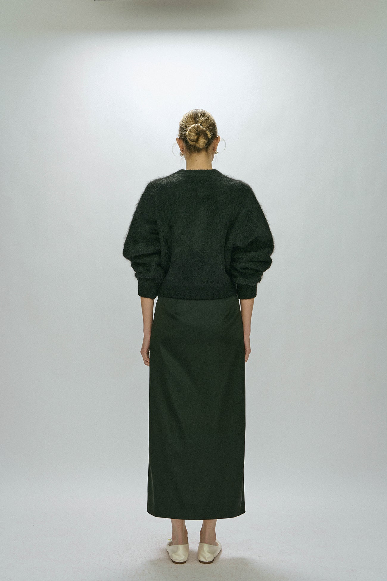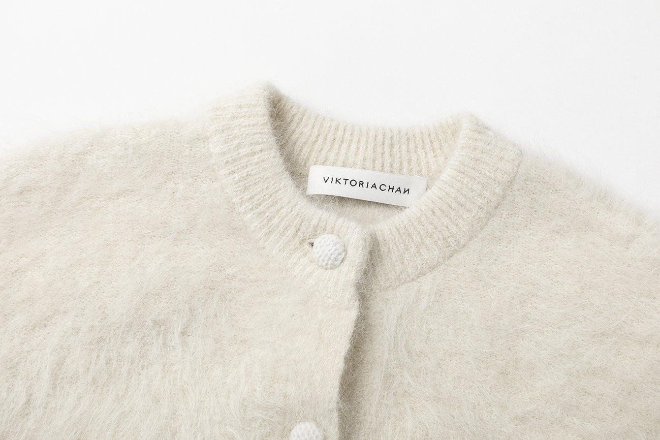 Furry knit with small cuff and bold sleeves. Short in style with long sleeves and fitted bottom. Wear with something simple below for a classic and warm look. Model is 176cm tall and wea...