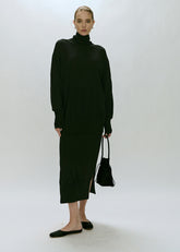 Oversized knitted pullover with wide patch in the bottom and slit in side. Longer sleeves and longer in style. Go for the matching skirt. Not too thick and great for the early autumn. Mi...