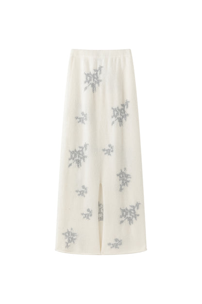 Matching skirt with a glittery snowflake pattern throughout. Features a ribbed hem and elastic waistline for a comfortable, flattering fit. Part of the coordinated set for a complete fes...