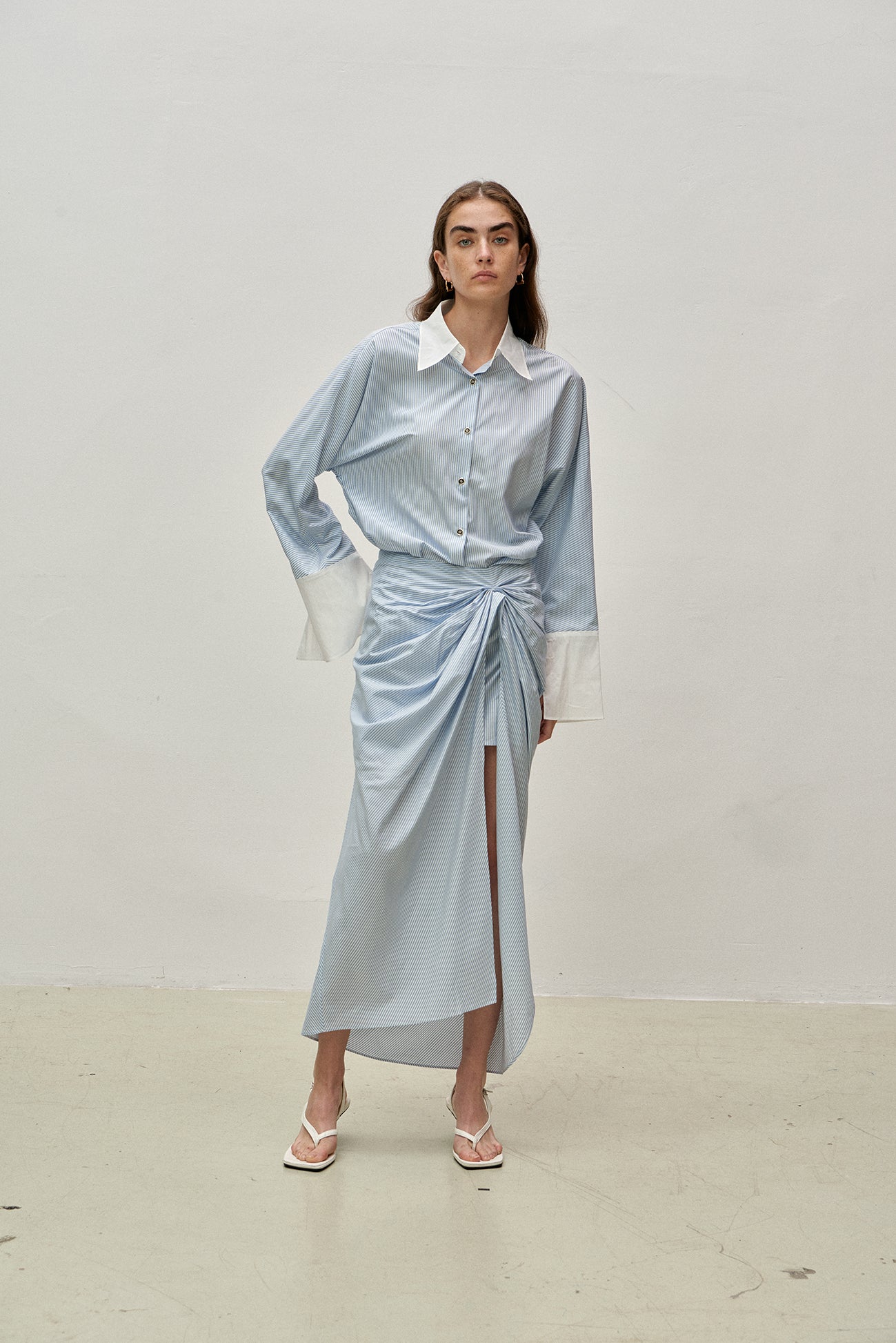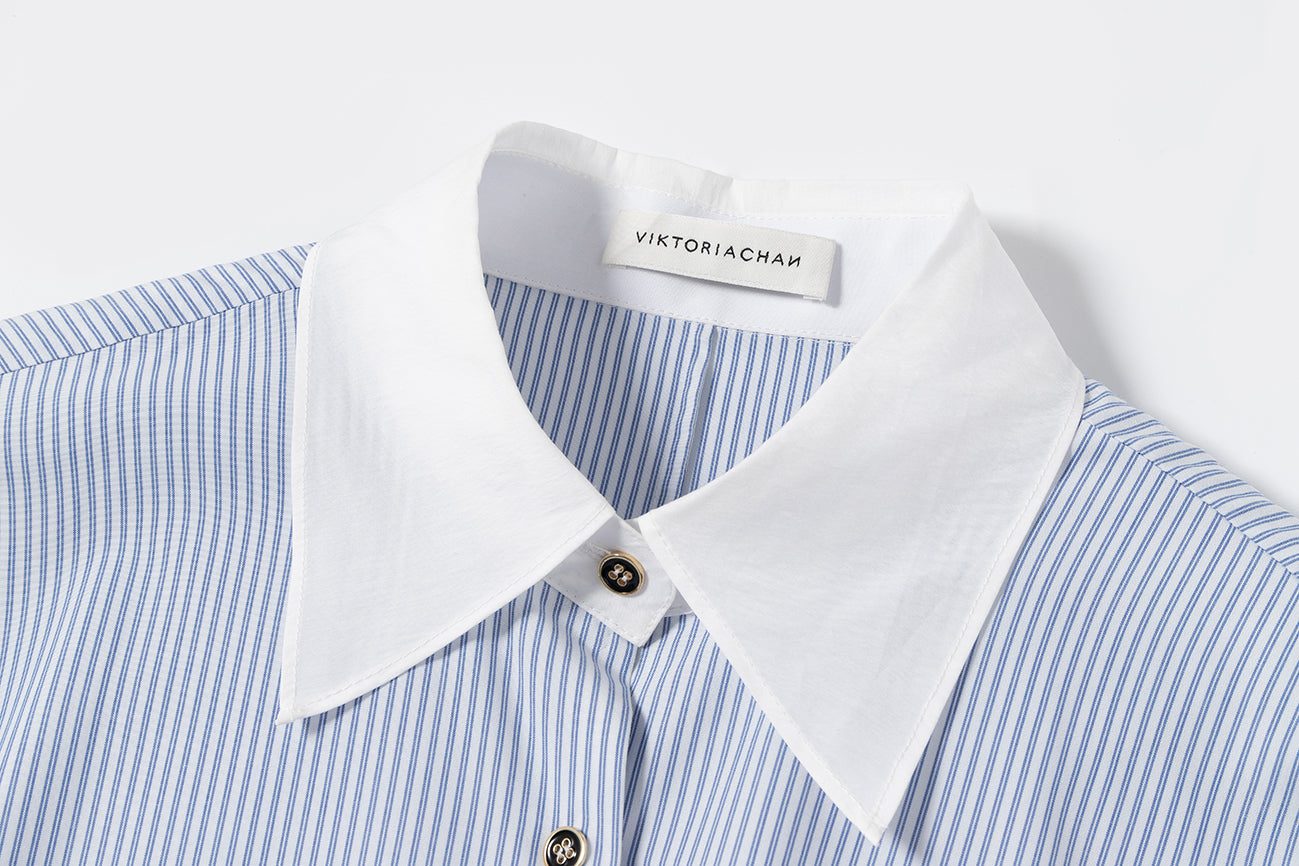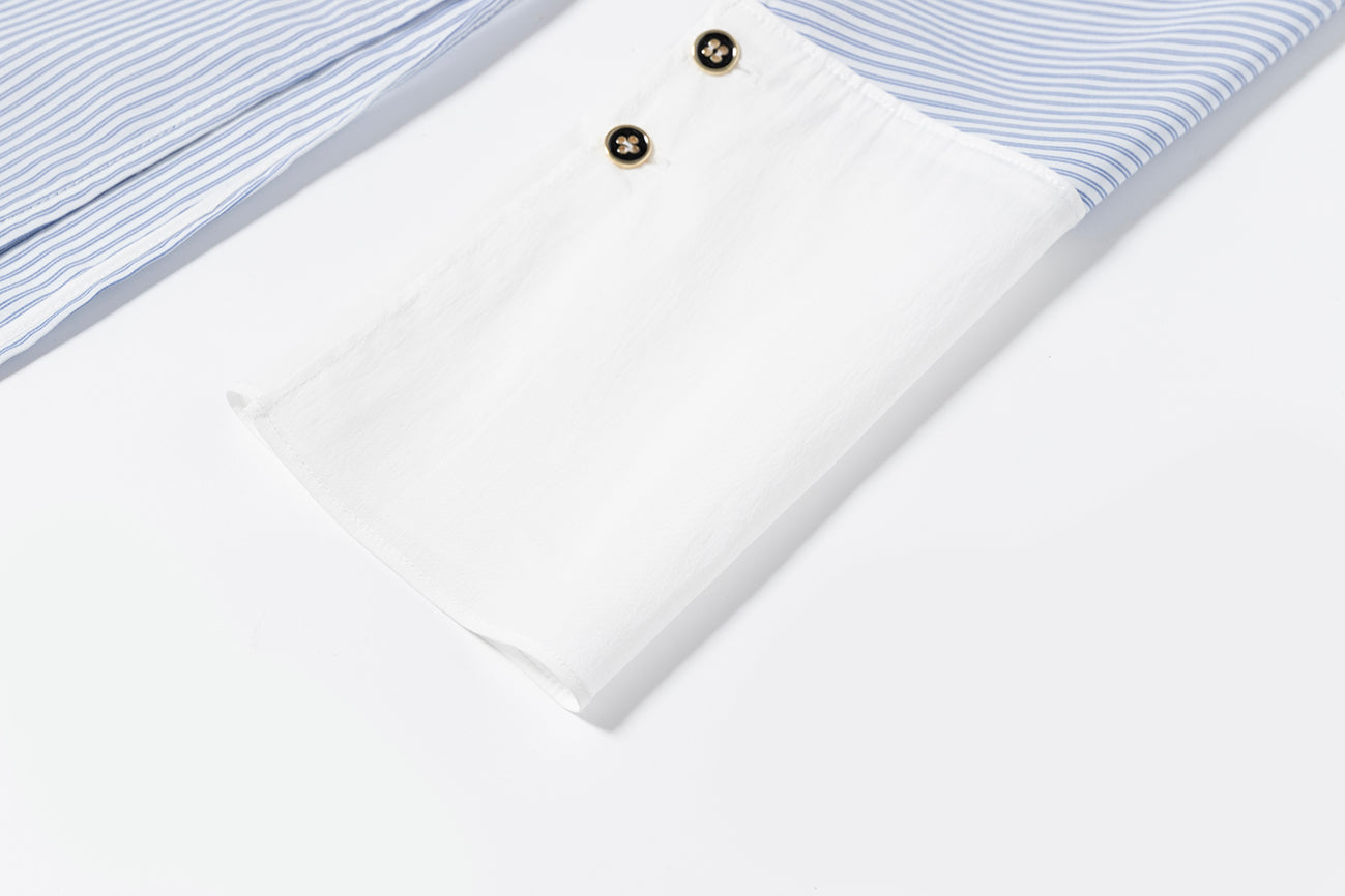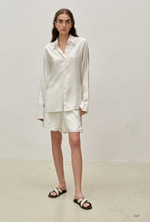 Flowy shirt with rounded cut cuffs. Poplin material in the cuff and collar that creates a great mix of effortless coolness. Small shell buttons and dropping shoulder in style. Oversized ...