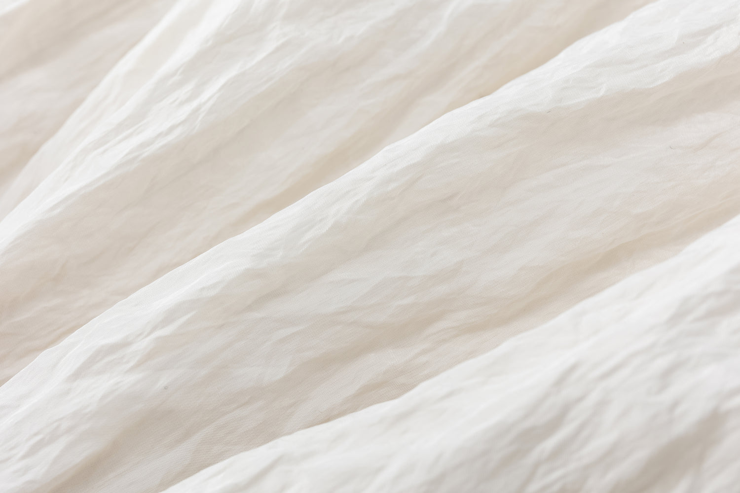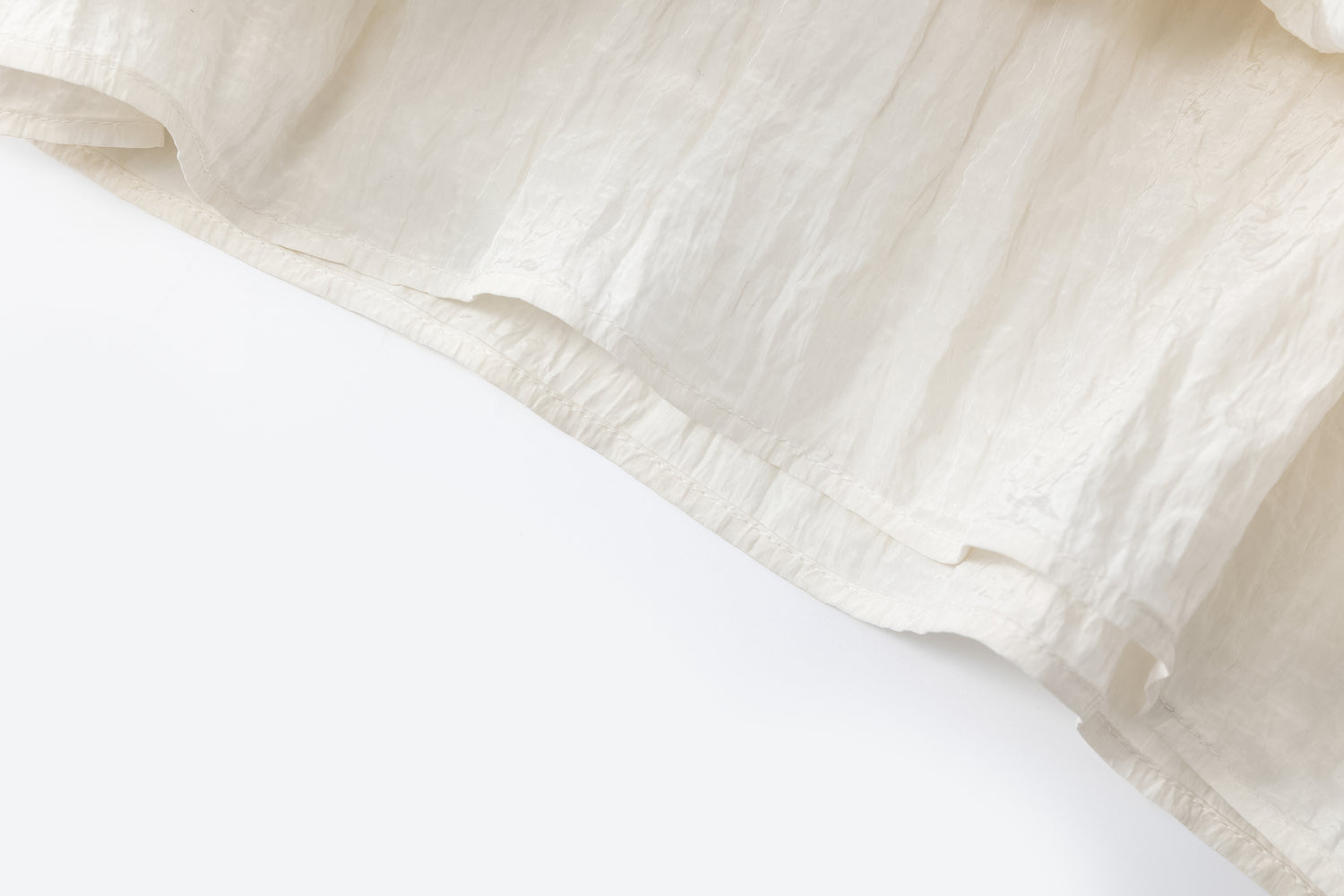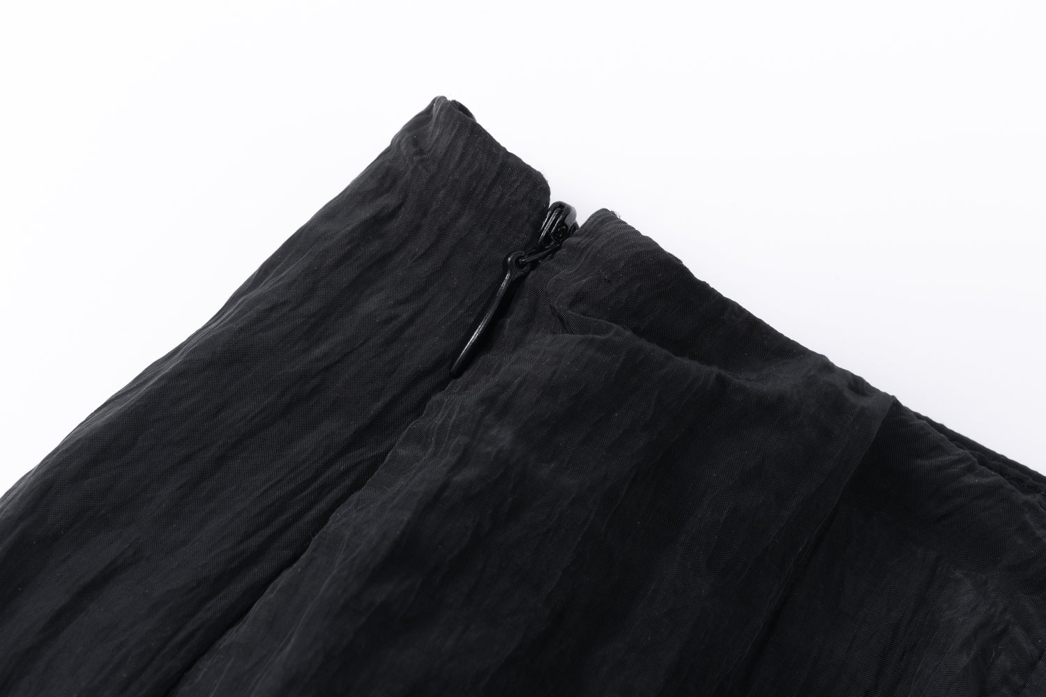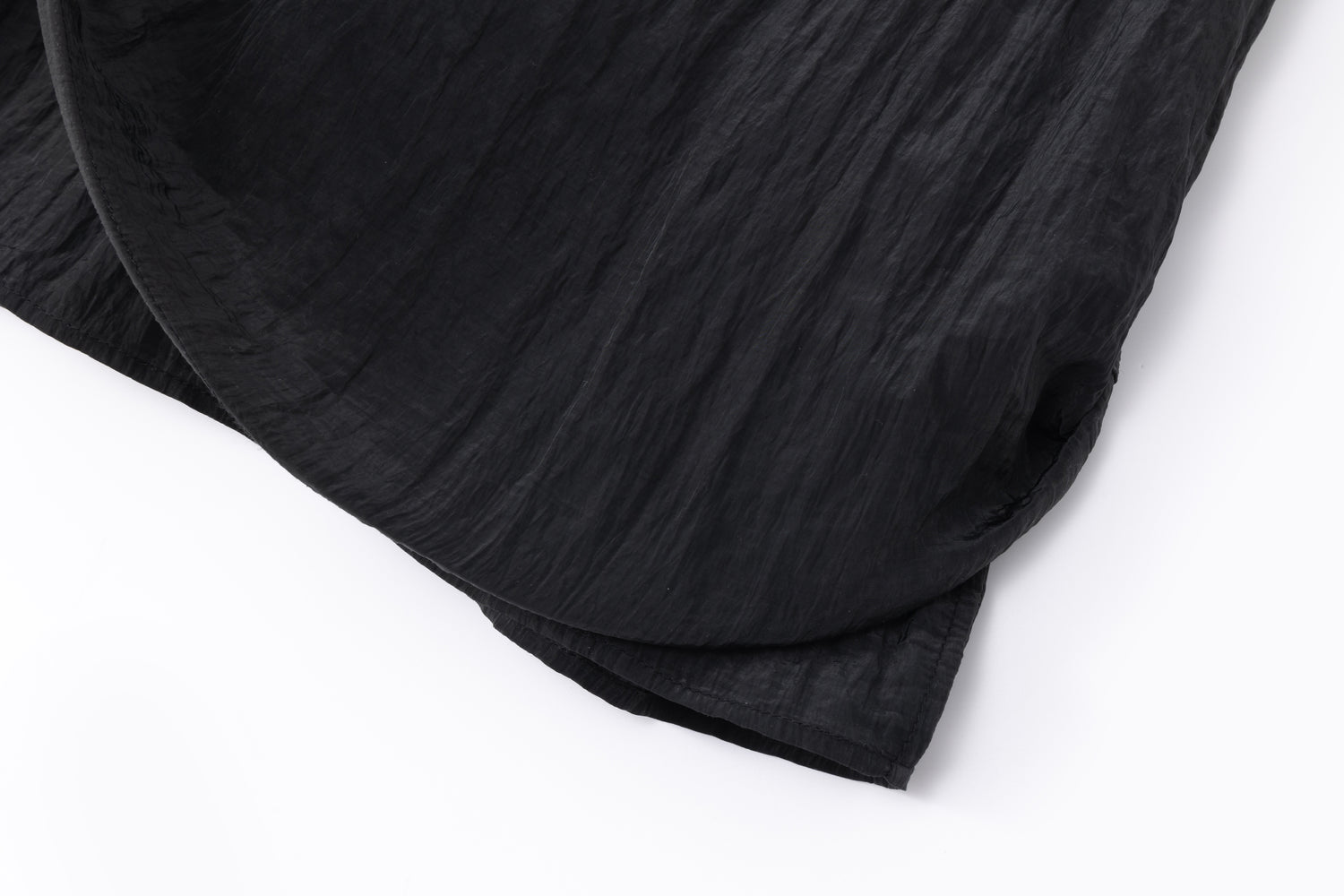 Crinkled short skirt with an asymmetrical stiff hemline creating a gentle twirling effect. To be paired with the matching Uni short sleeve top.