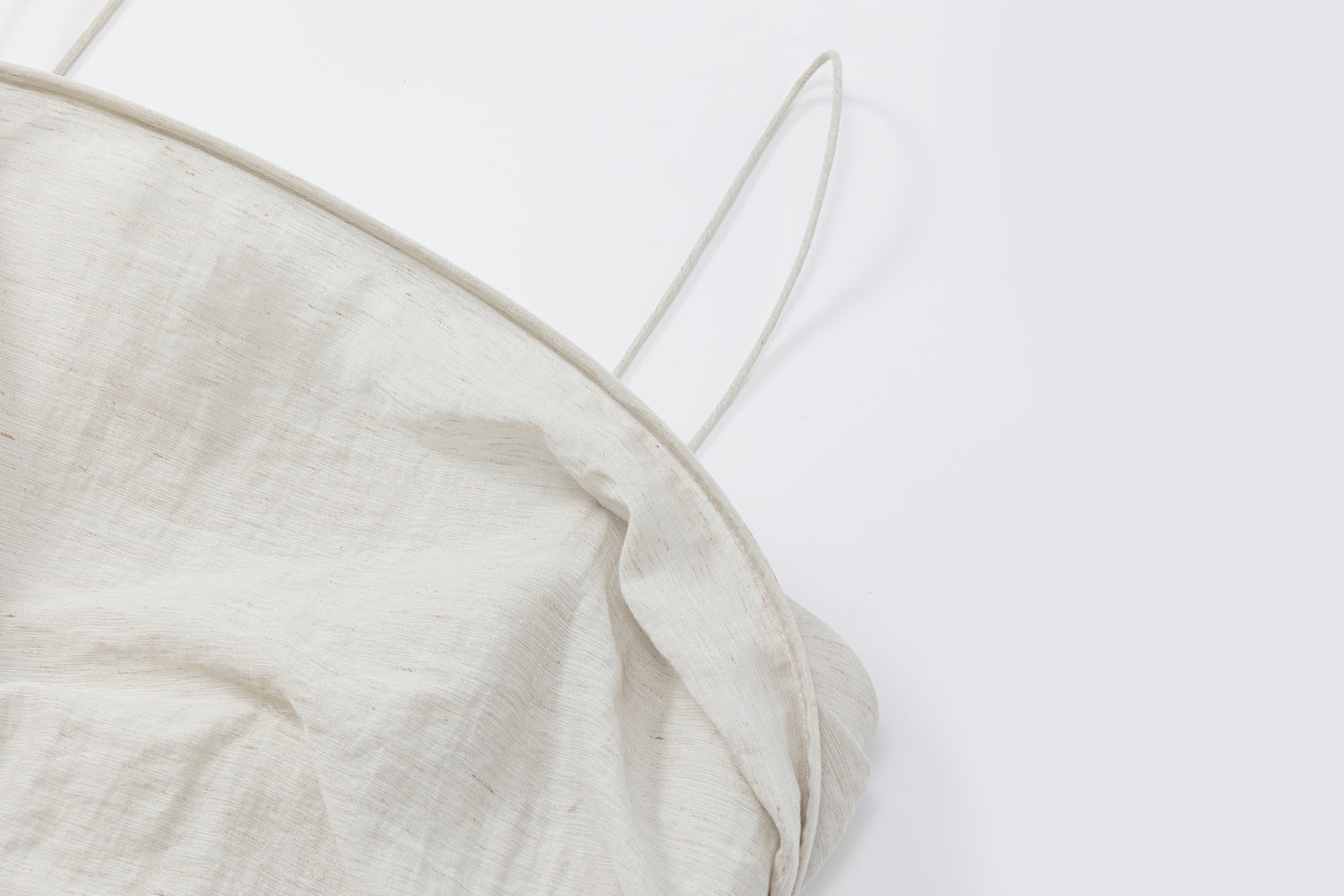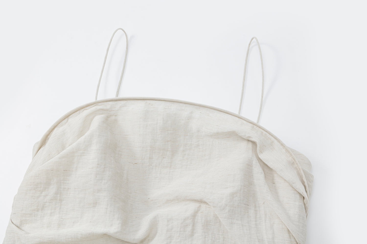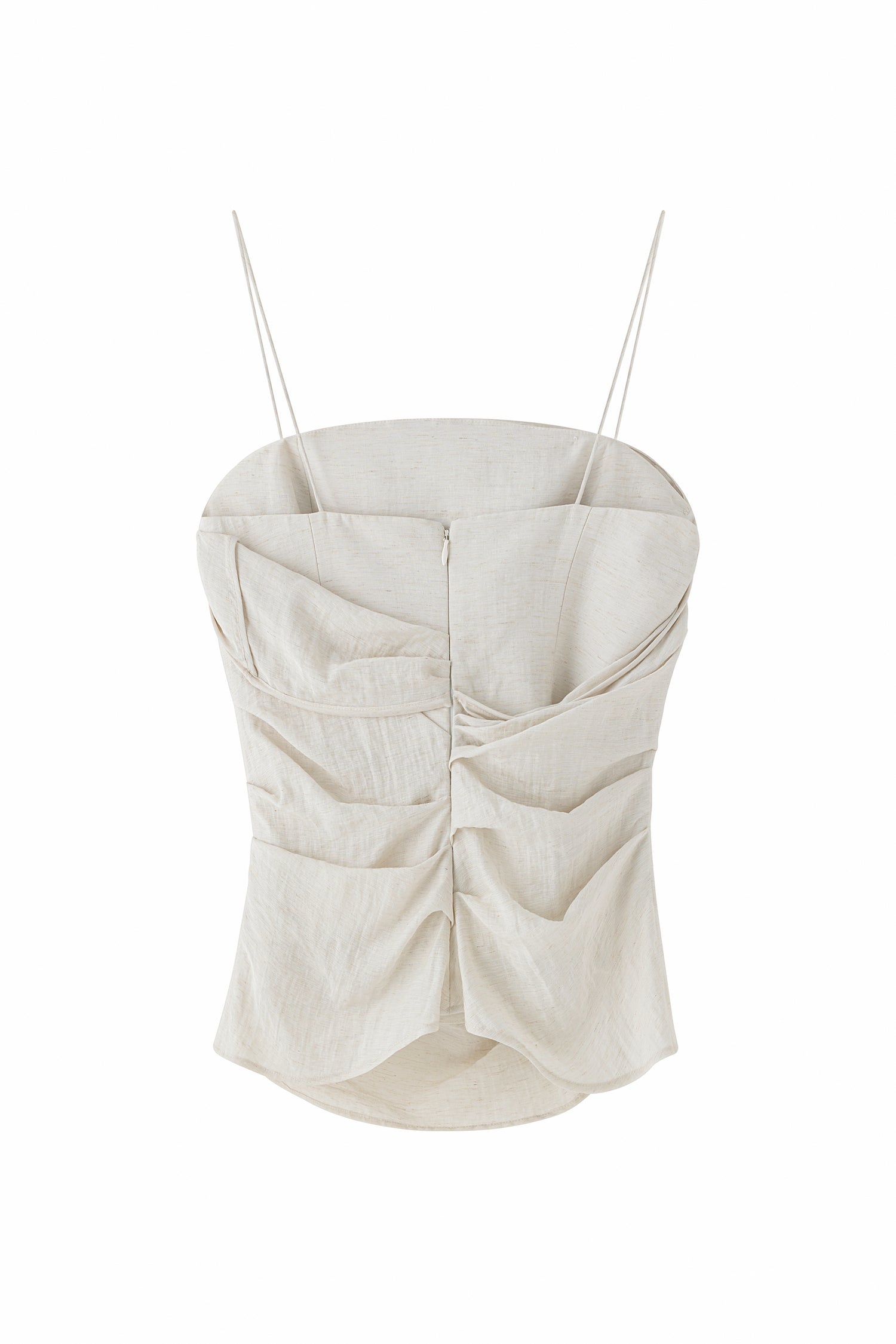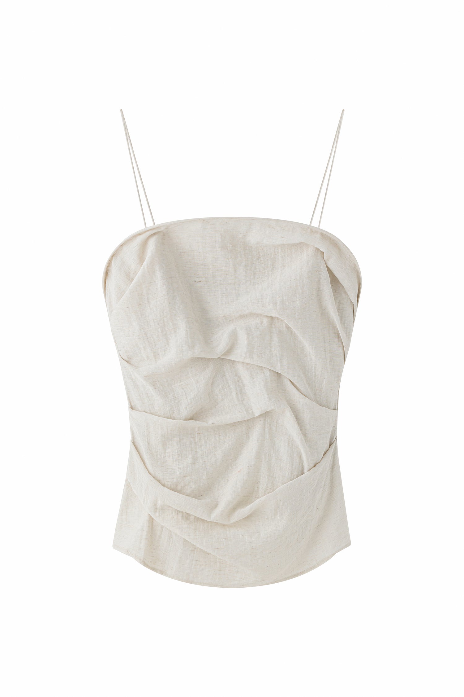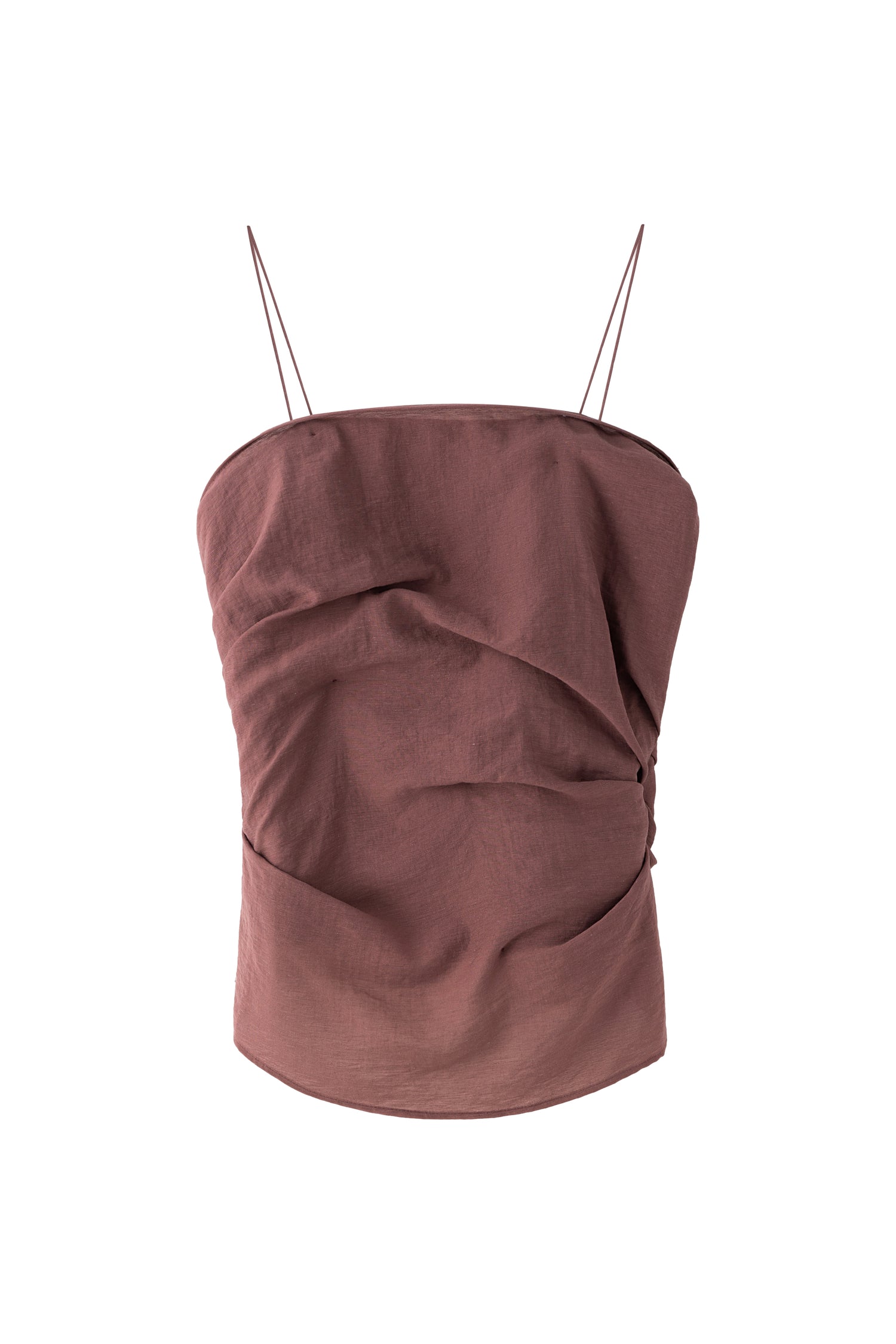 Spaghetti strap top featuring a horizontal gathered swirl detail that wraps around the bodice. Designed to be worn with the matching Uni Twirl skirt for a cohesive, sculptural look.
